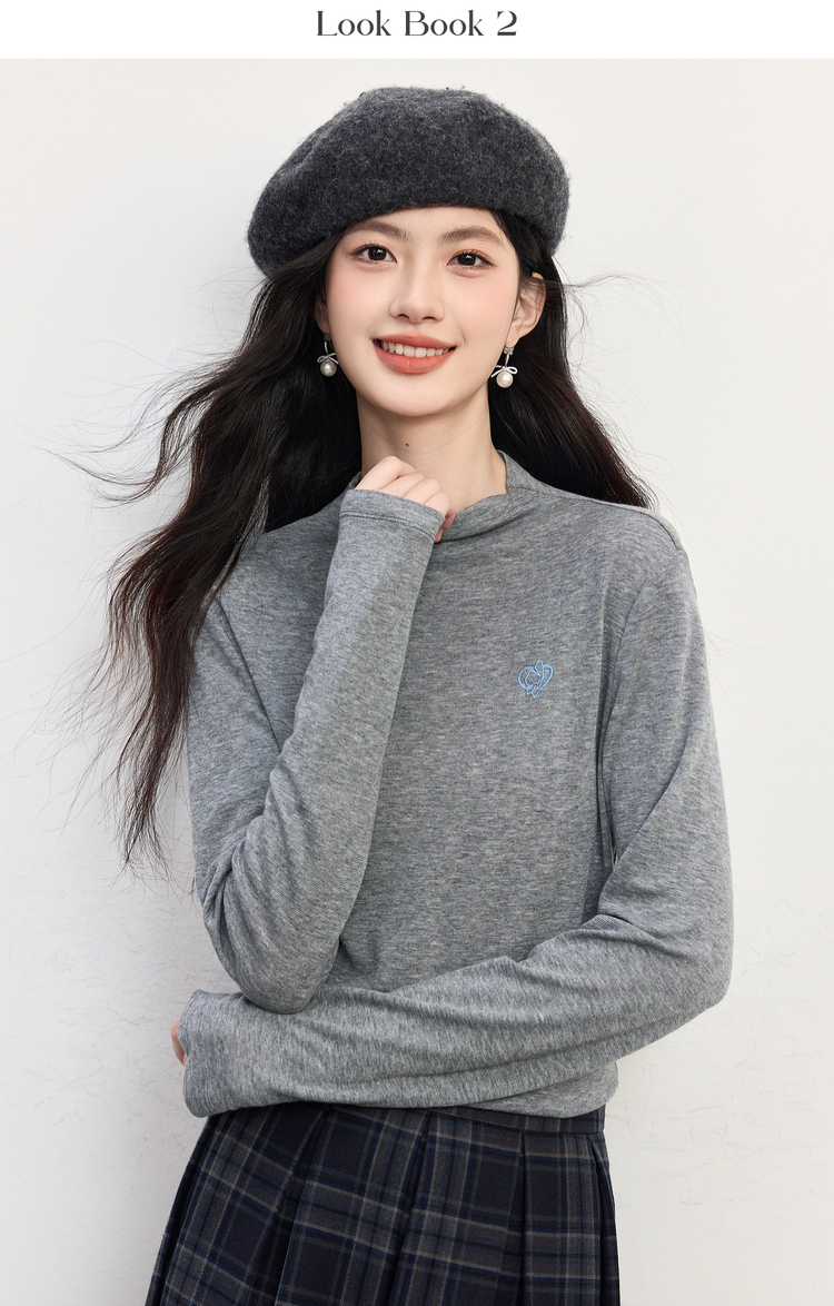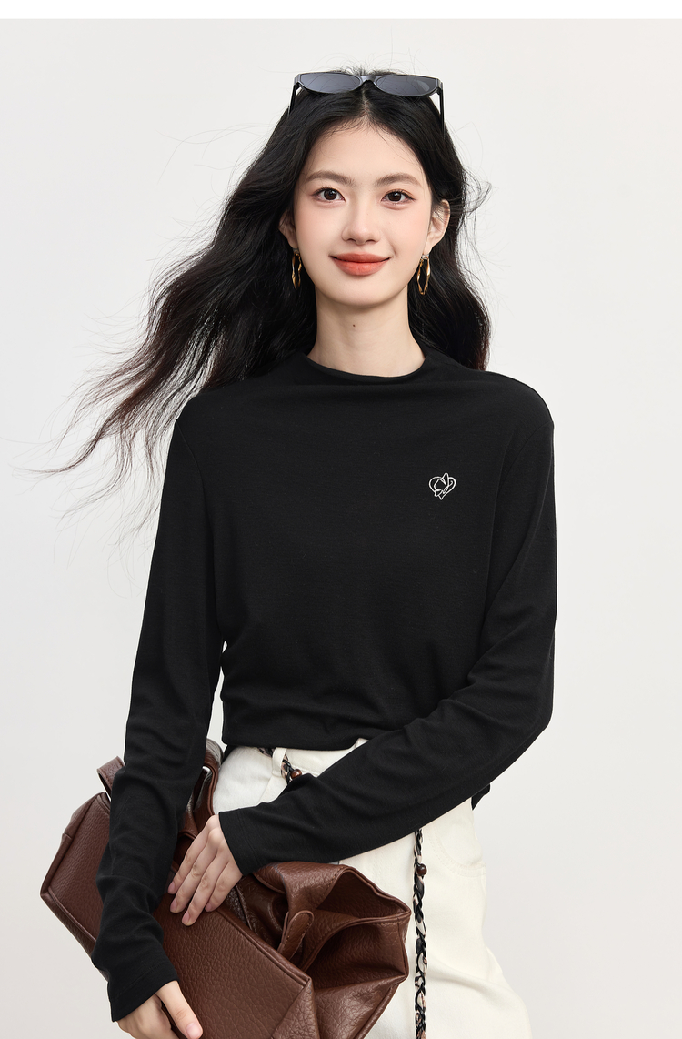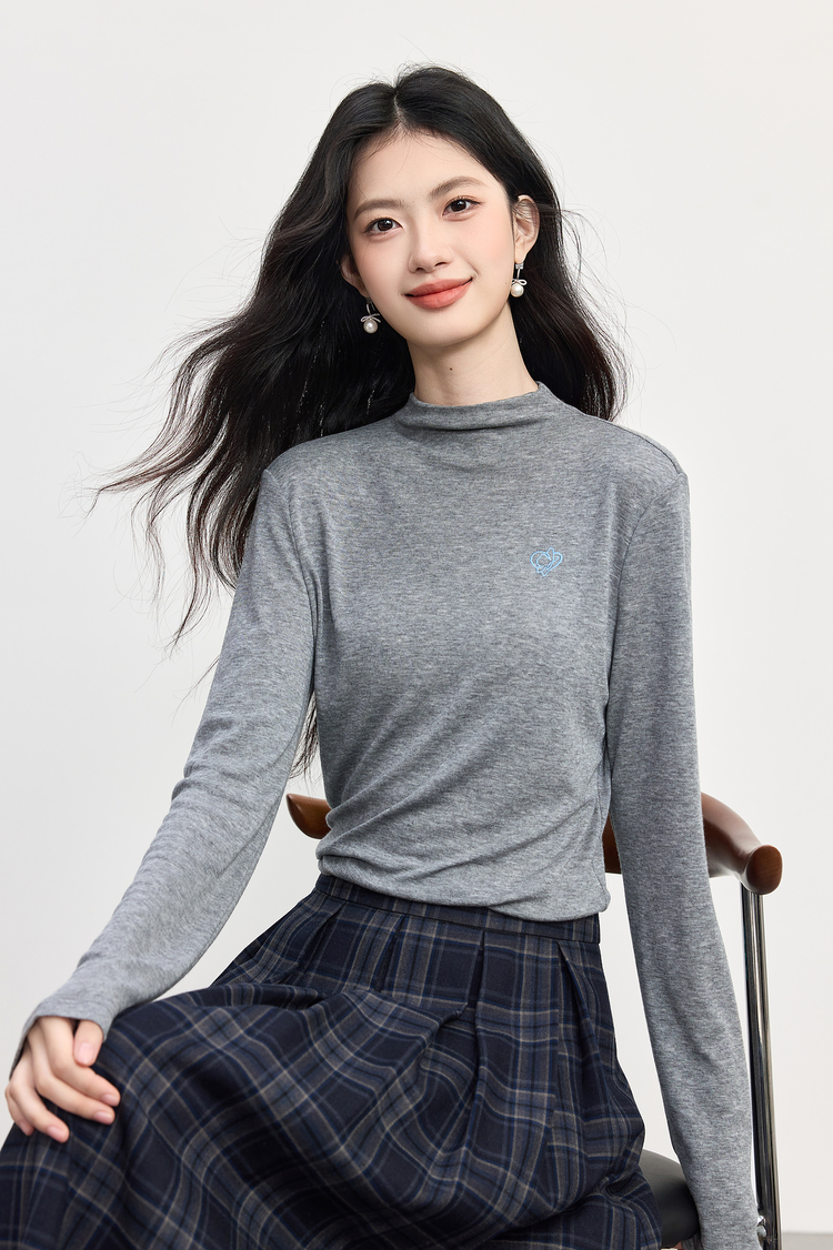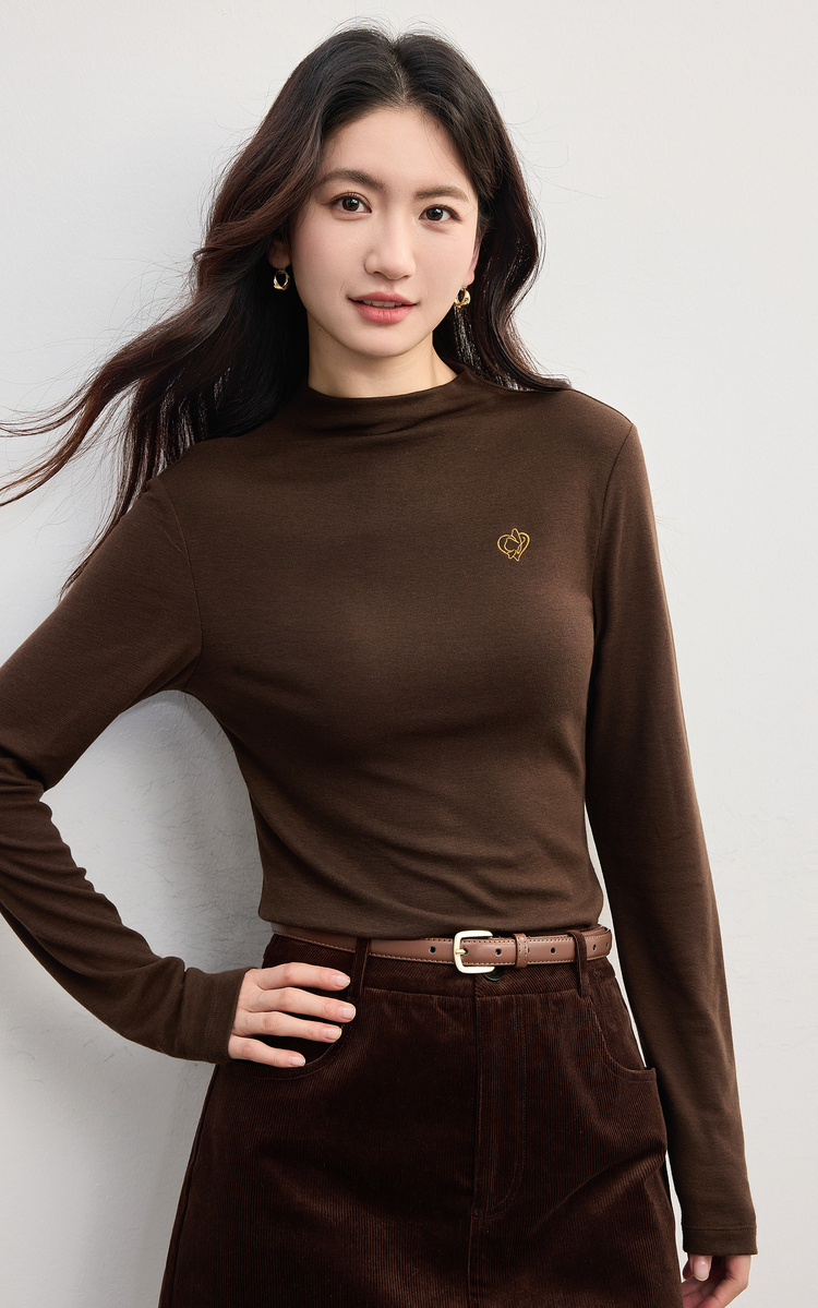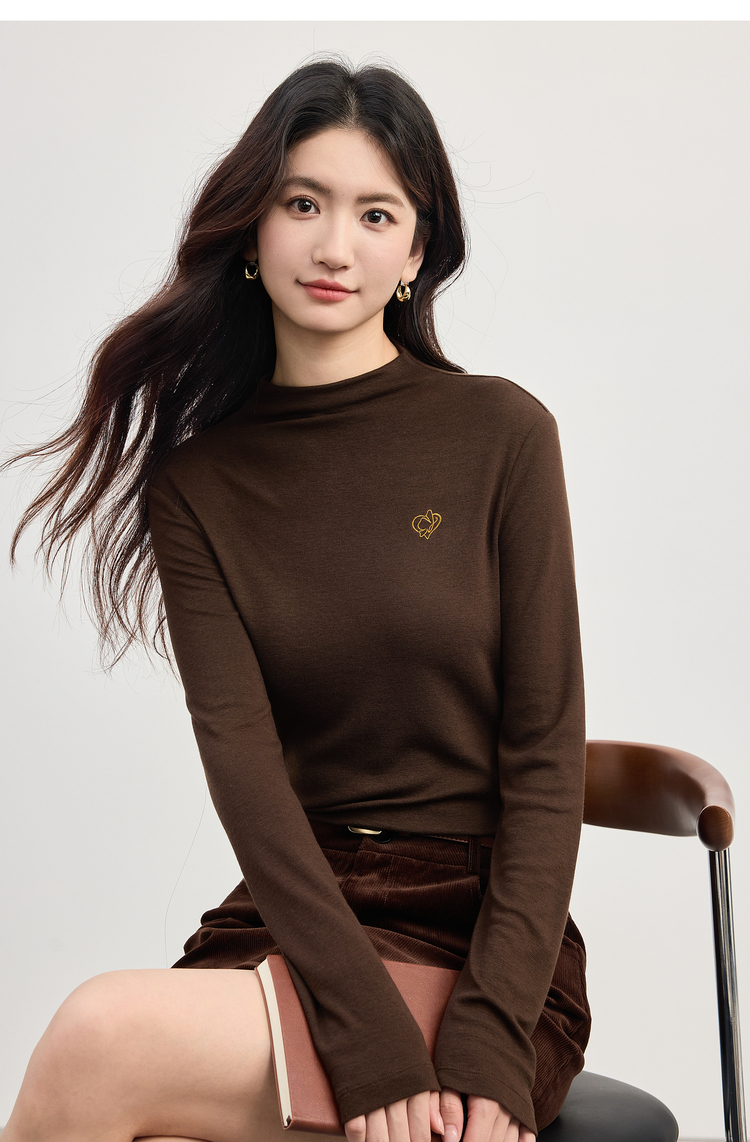 【周末秒杀】熙世界天丝羊毛混纺半高领T恤女秋冬长袖正肩打底衫内搭显瘦上衣
