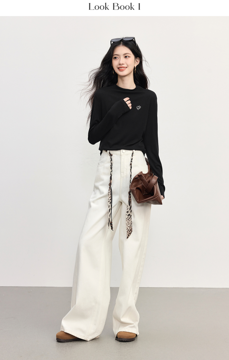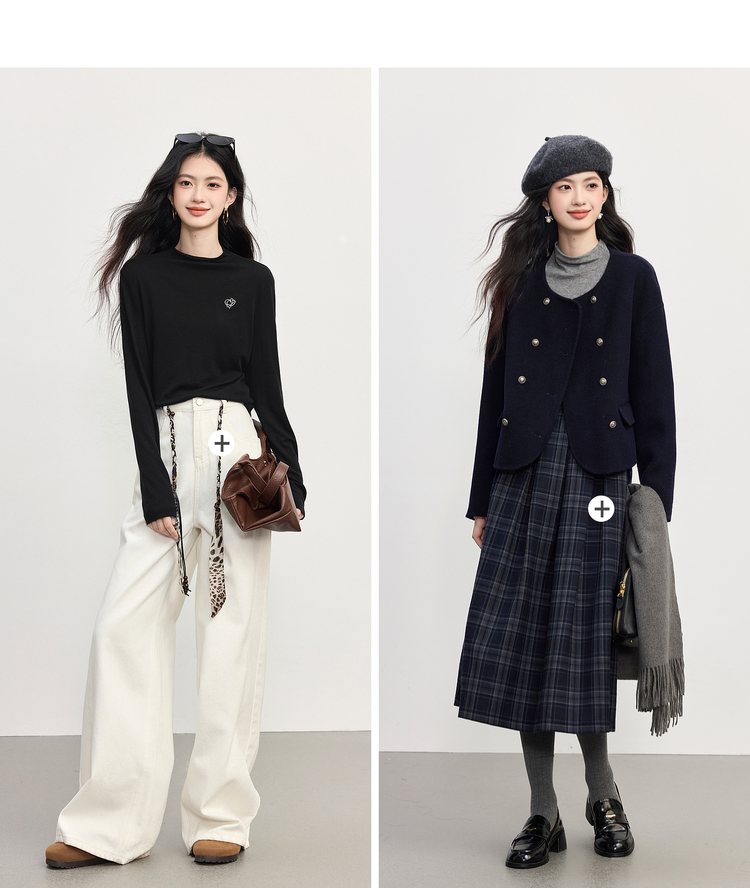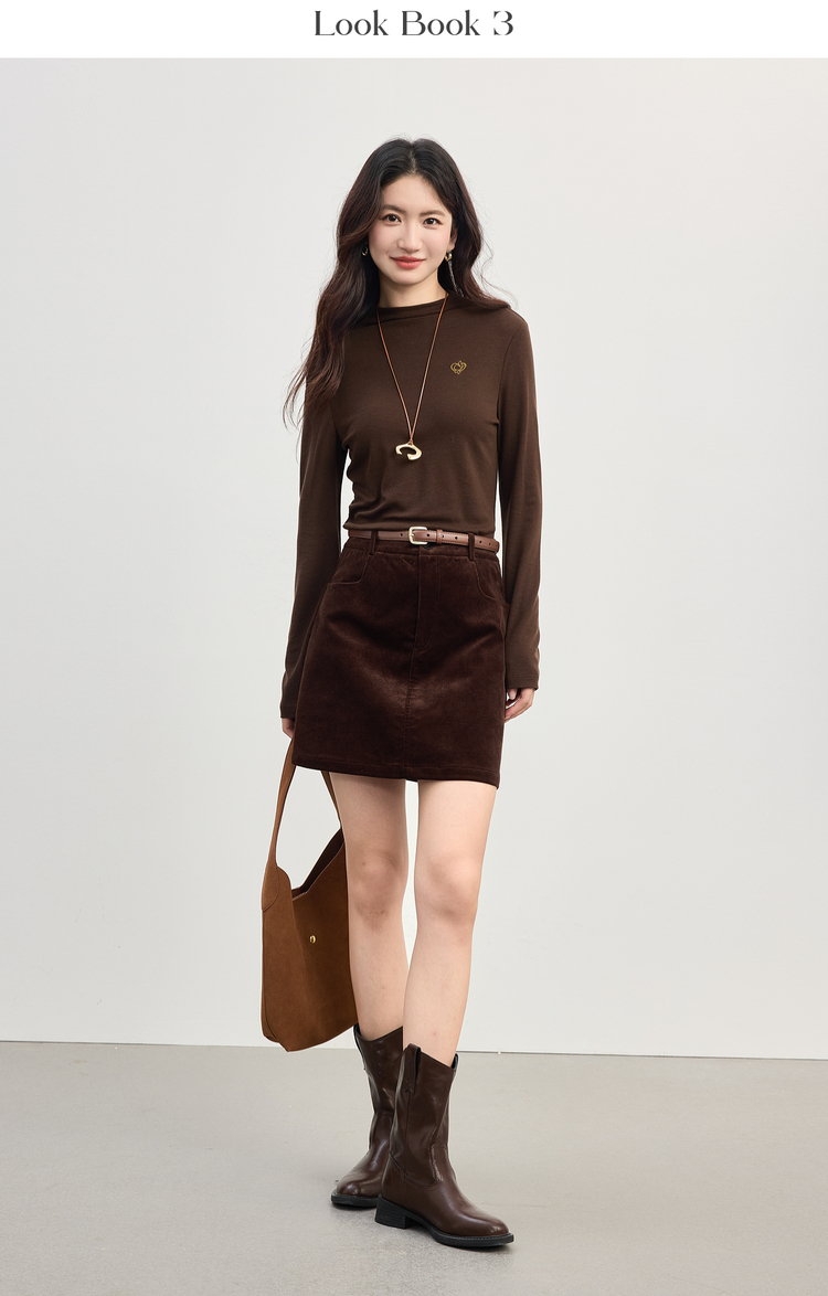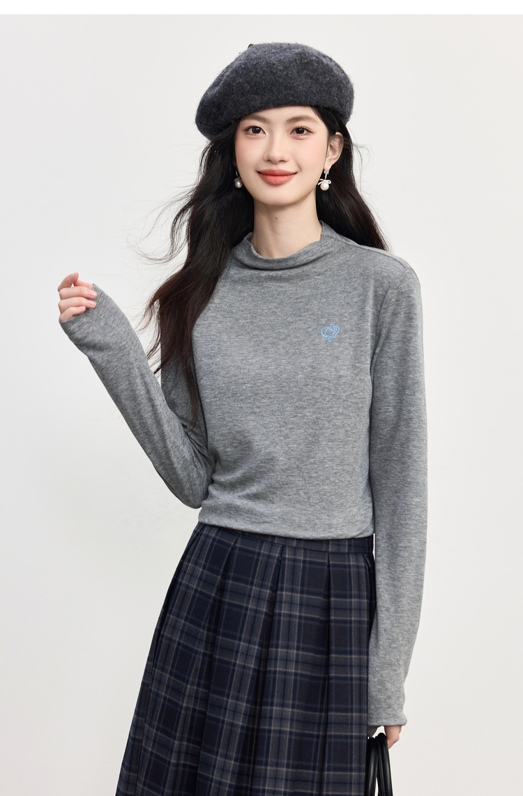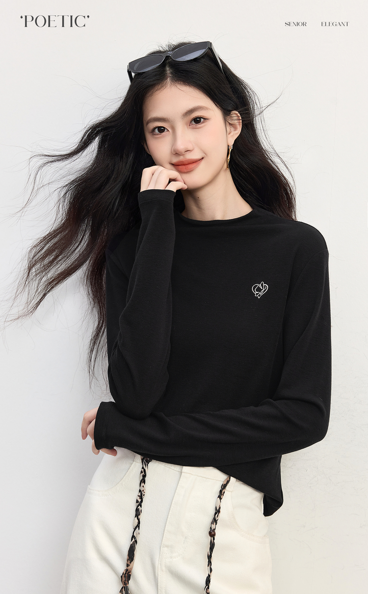 【周末秒杀】熙世界天丝羊毛混纺半高领T恤女秋冬长袖正肩打底衫内搭显瘦上衣
