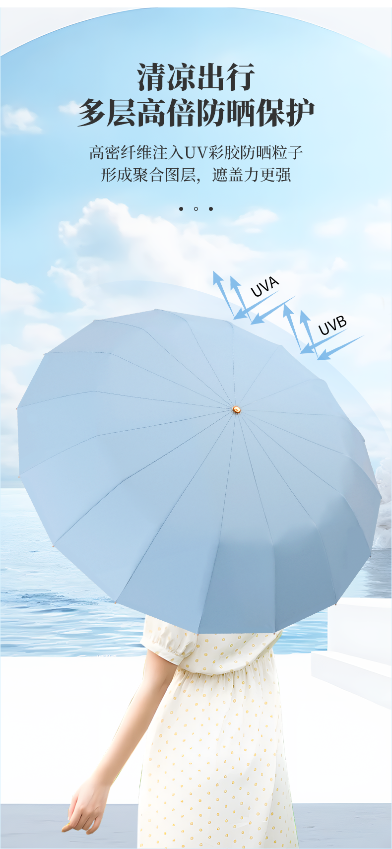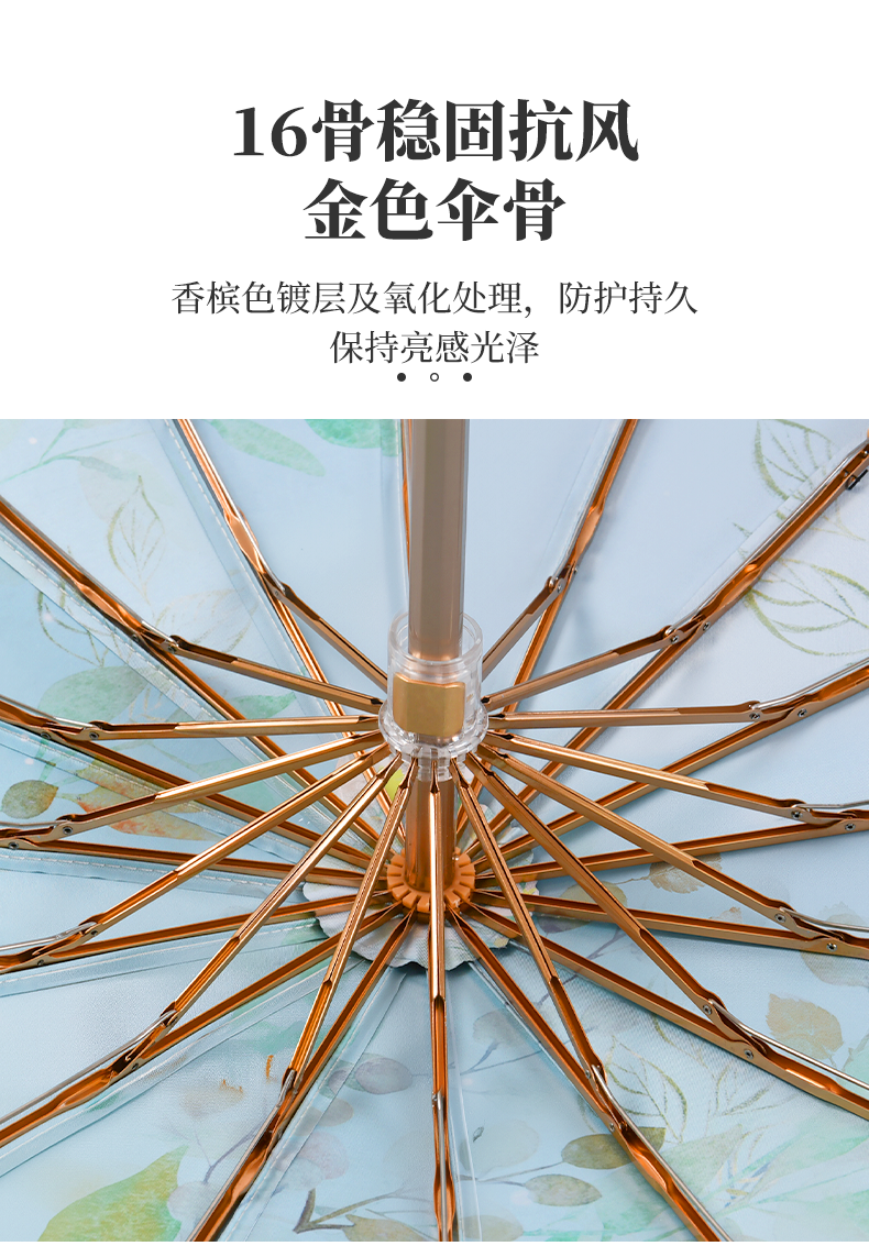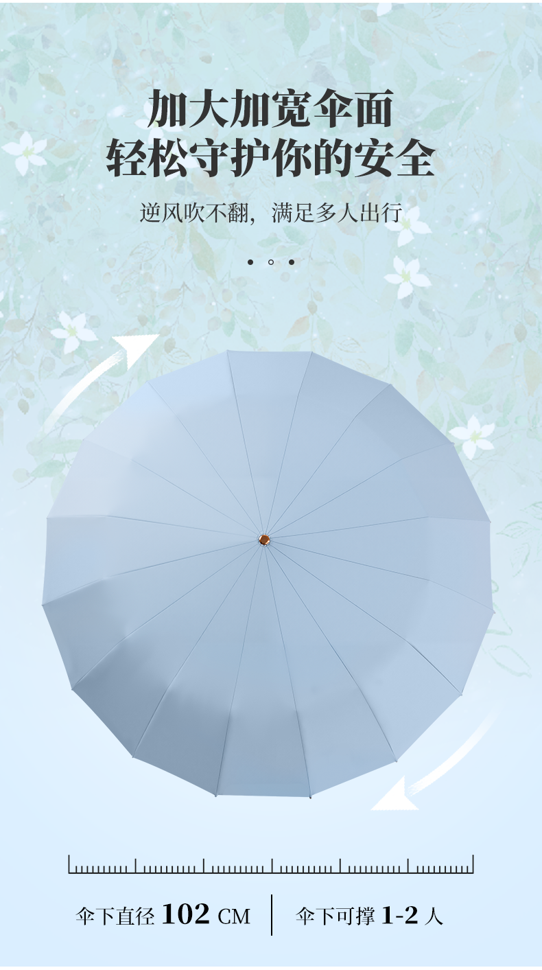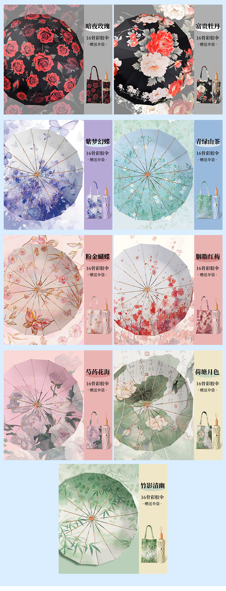【赠送同色系伞袋】国风彩胶晴雨两用伞 UPF50+防晒值 多层高倍防晒保护 体感降温 加大加宽伞面 16骨稳固抗风 多种花型可选