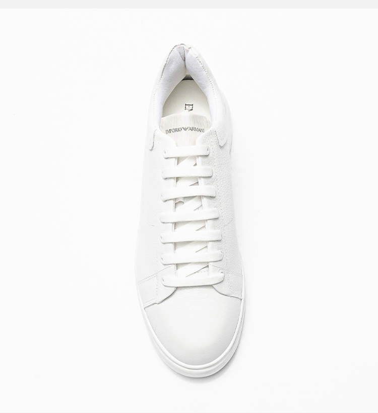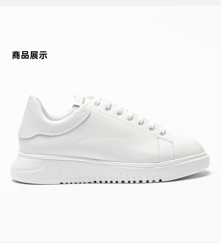 EMPORIO ARMANI 阿玛尼 男士皮革徽标压花系带休闲运动鞋 白色 X4X264 XF532 00001