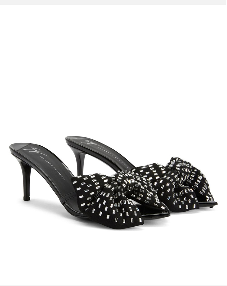 Giuseppe Zanotti 女士蝴蝶结贴花露趾穆勒鞋 黑色 E400039002