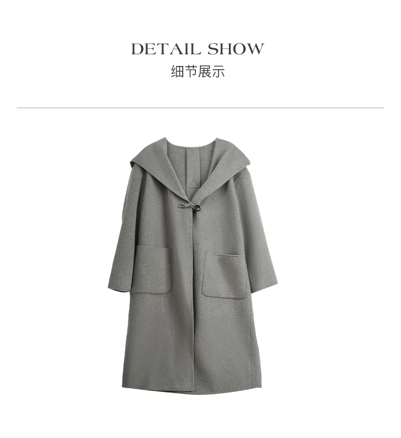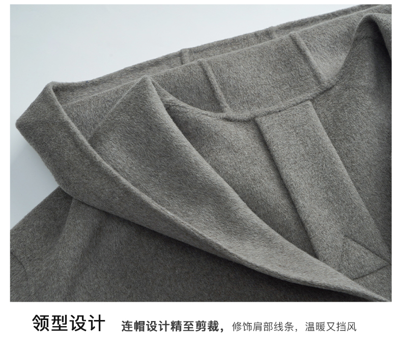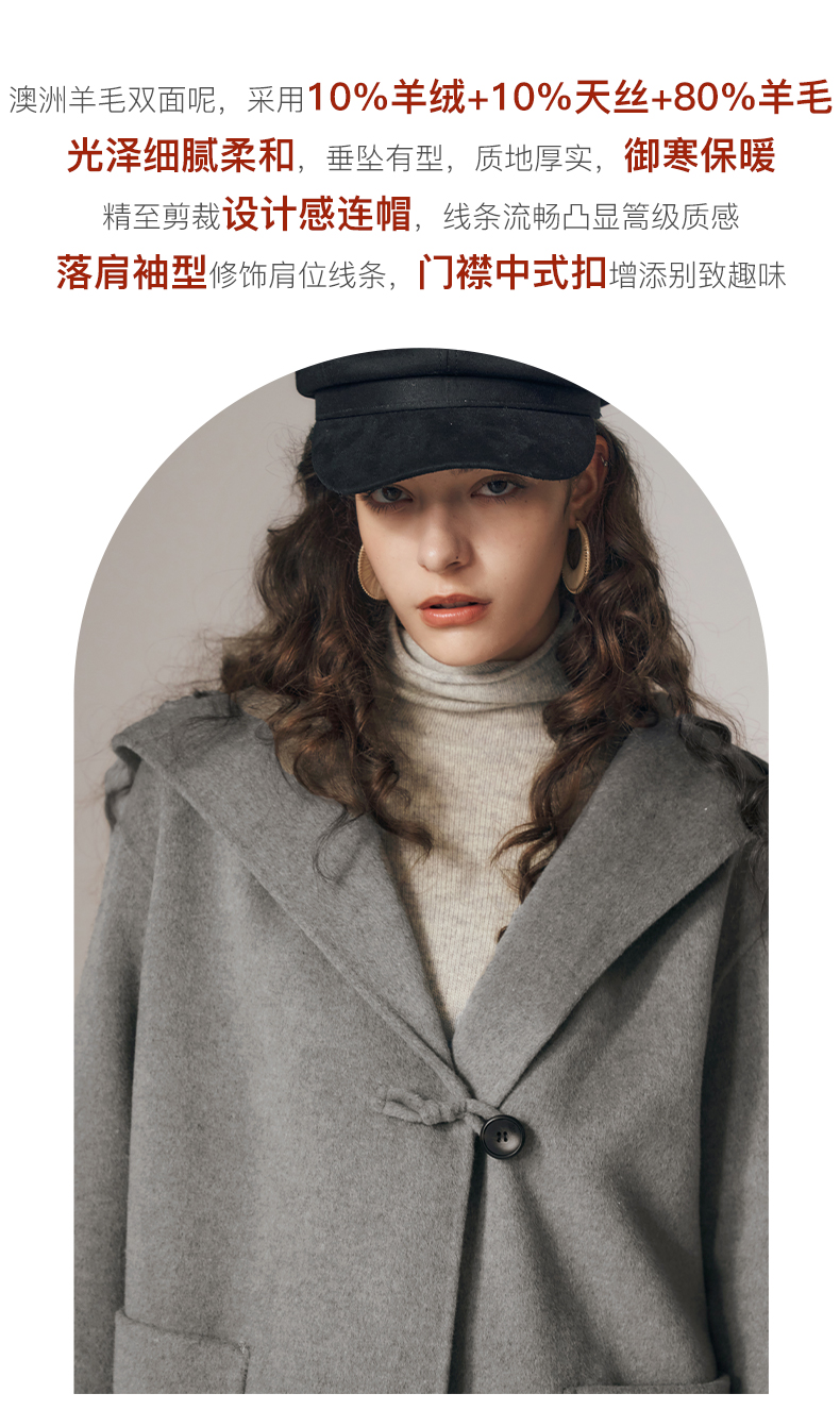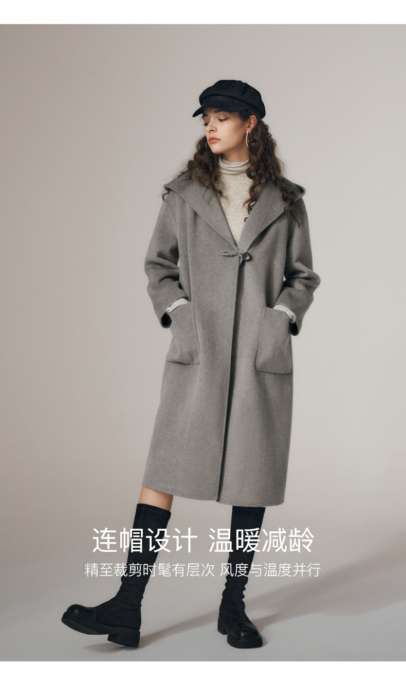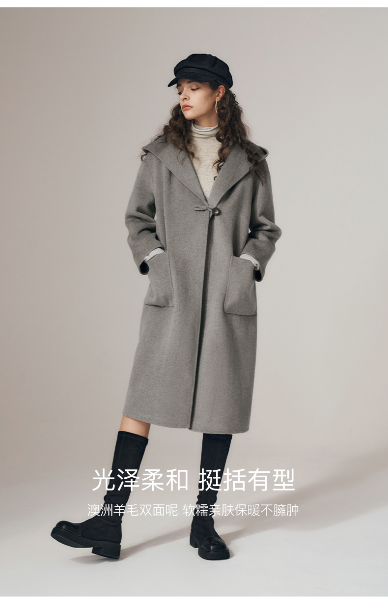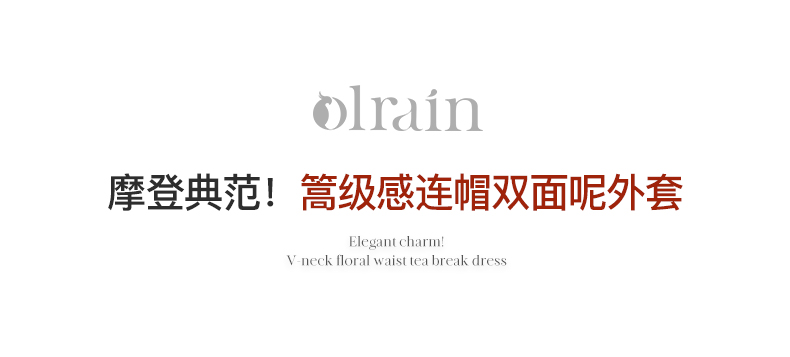 OLrain欧芮儿连帽双面毛呢外套女初秋2023新款高级感收腰长款大衣