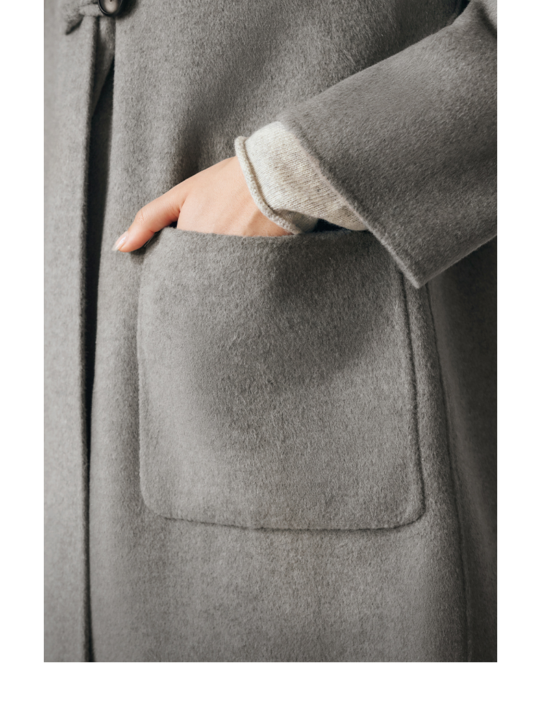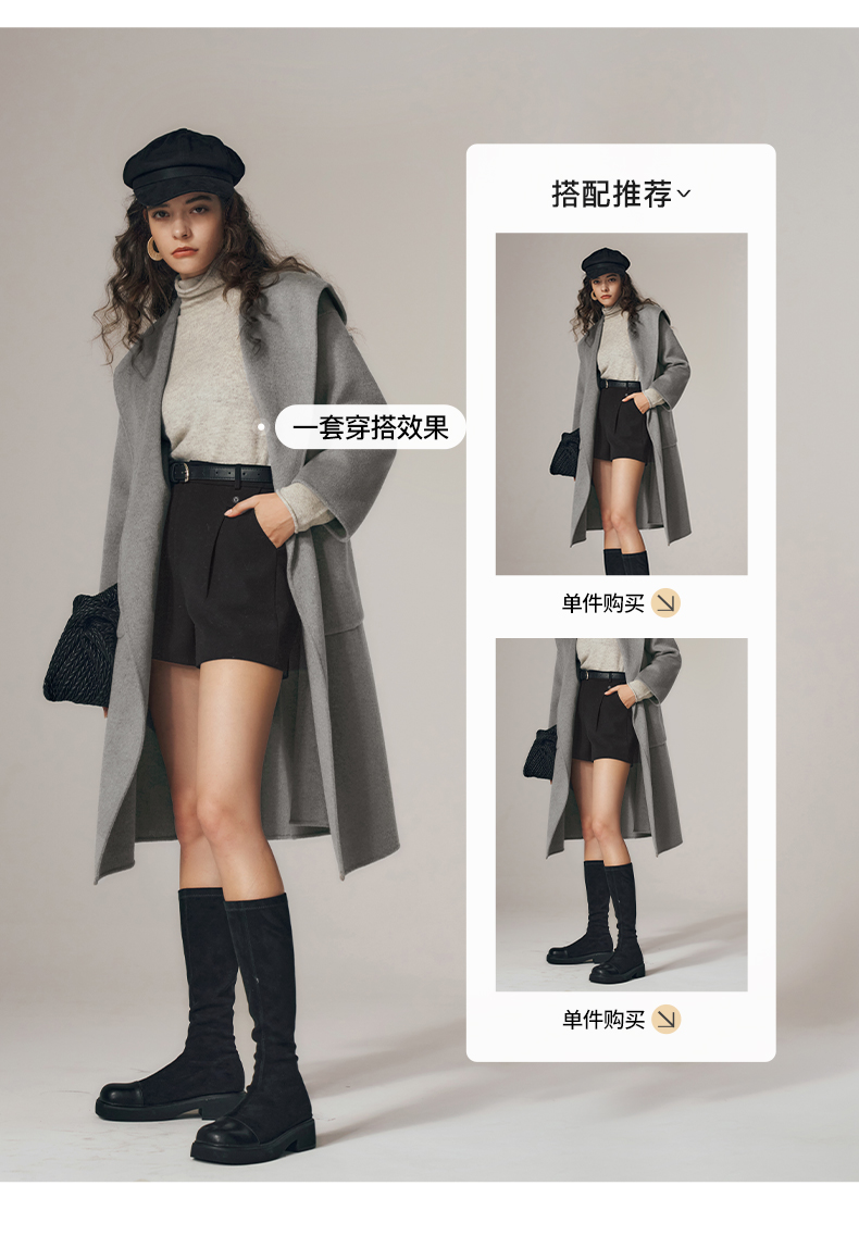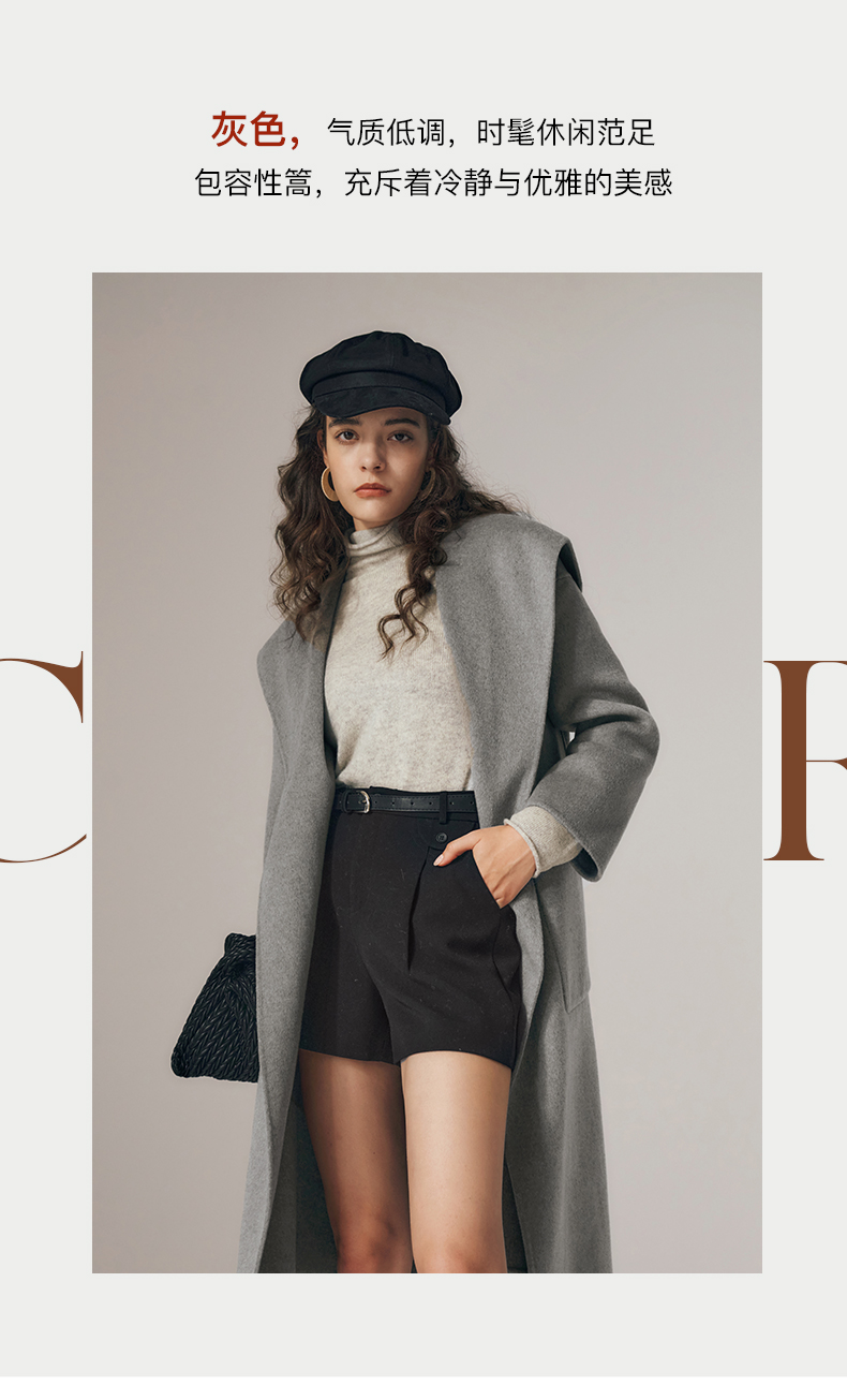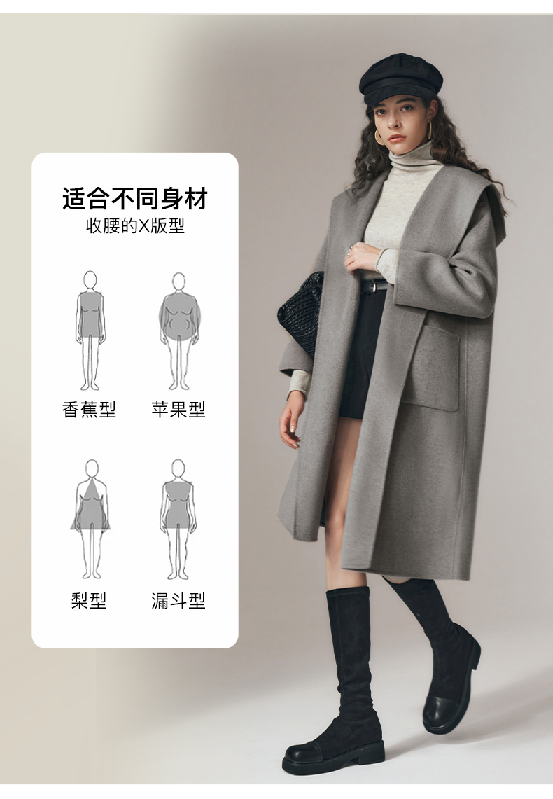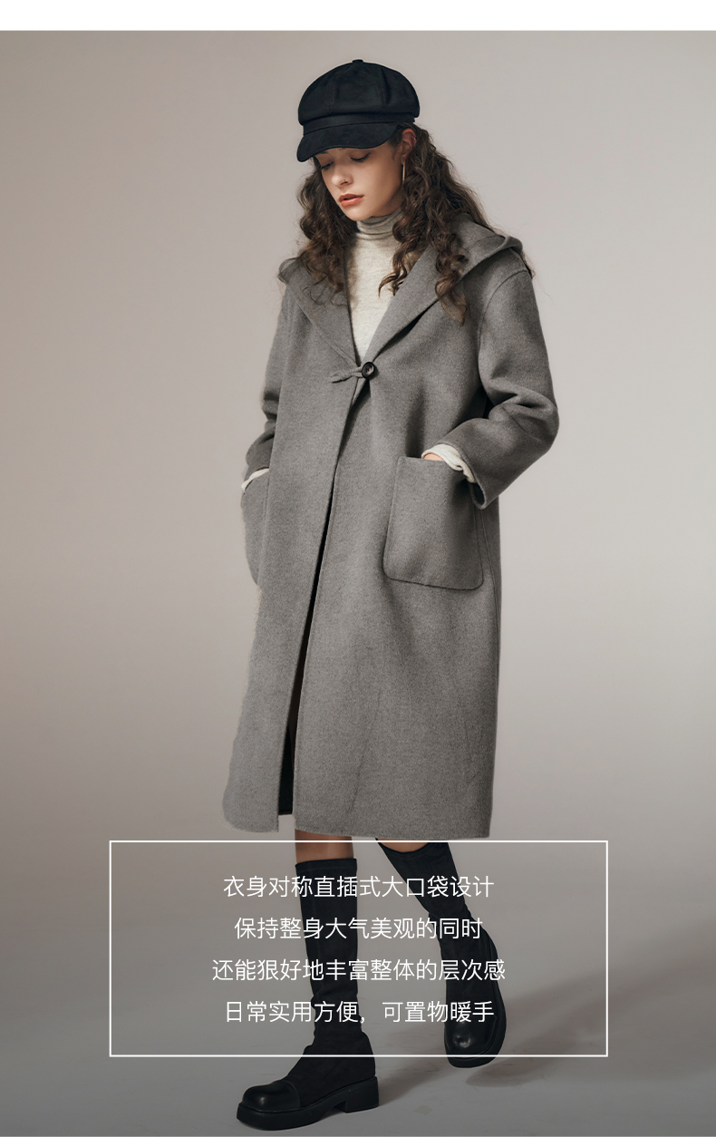 OLrain欧芮儿连帽双面毛呢外套女初秋2023新款高级感收腰长款大衣