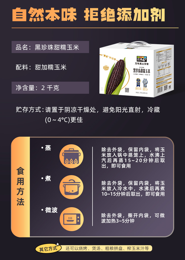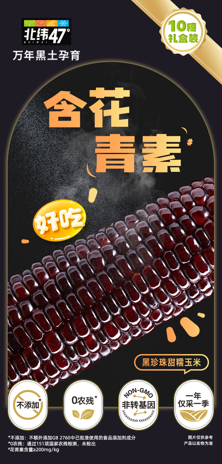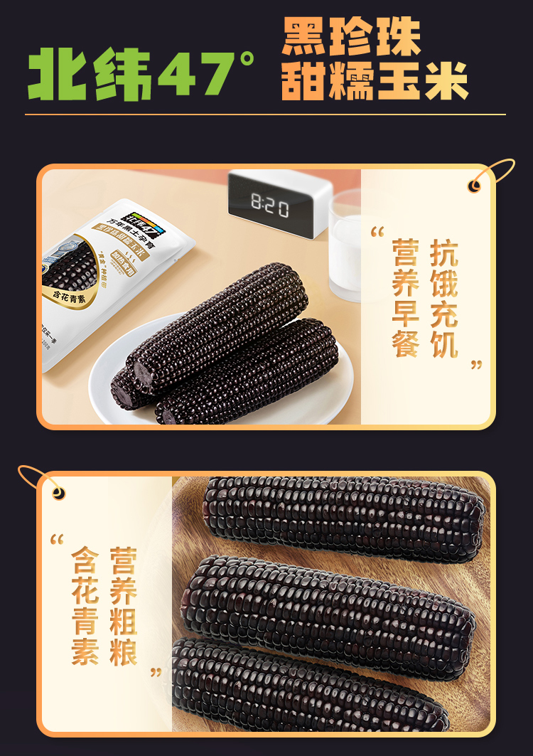 北纬47°黑珍珠甜糯玉米200克*6穗