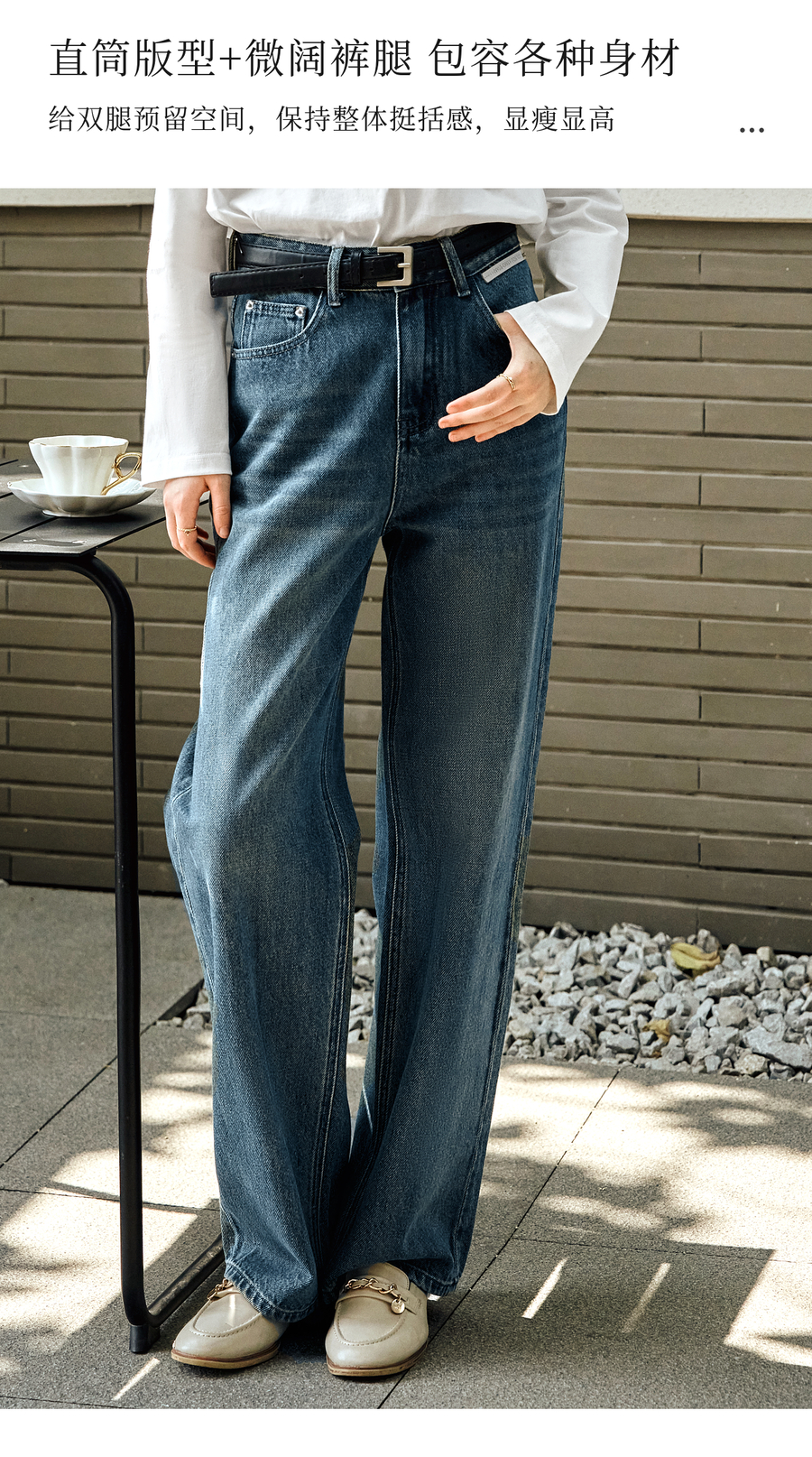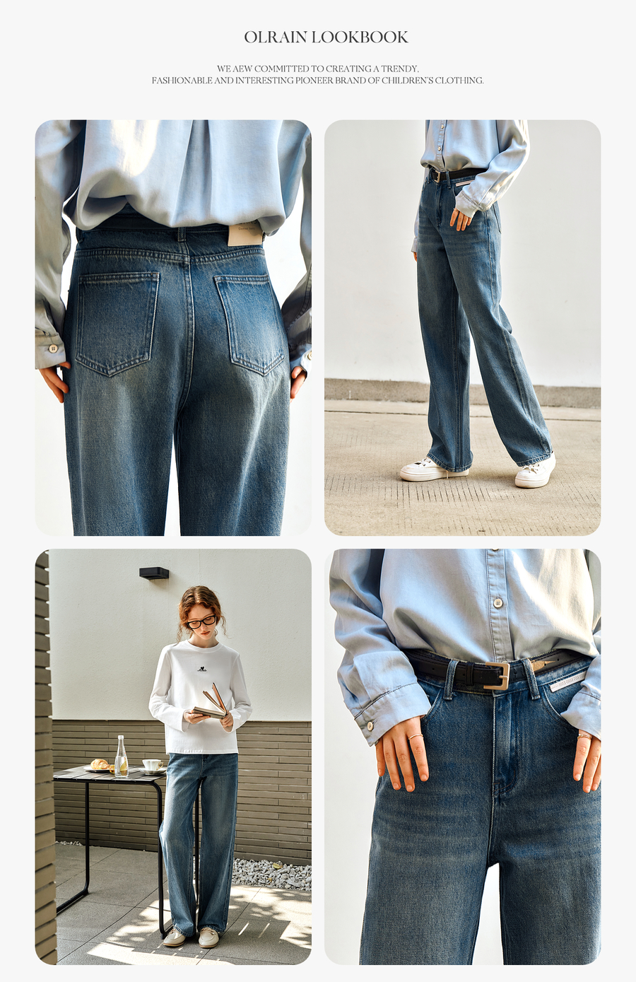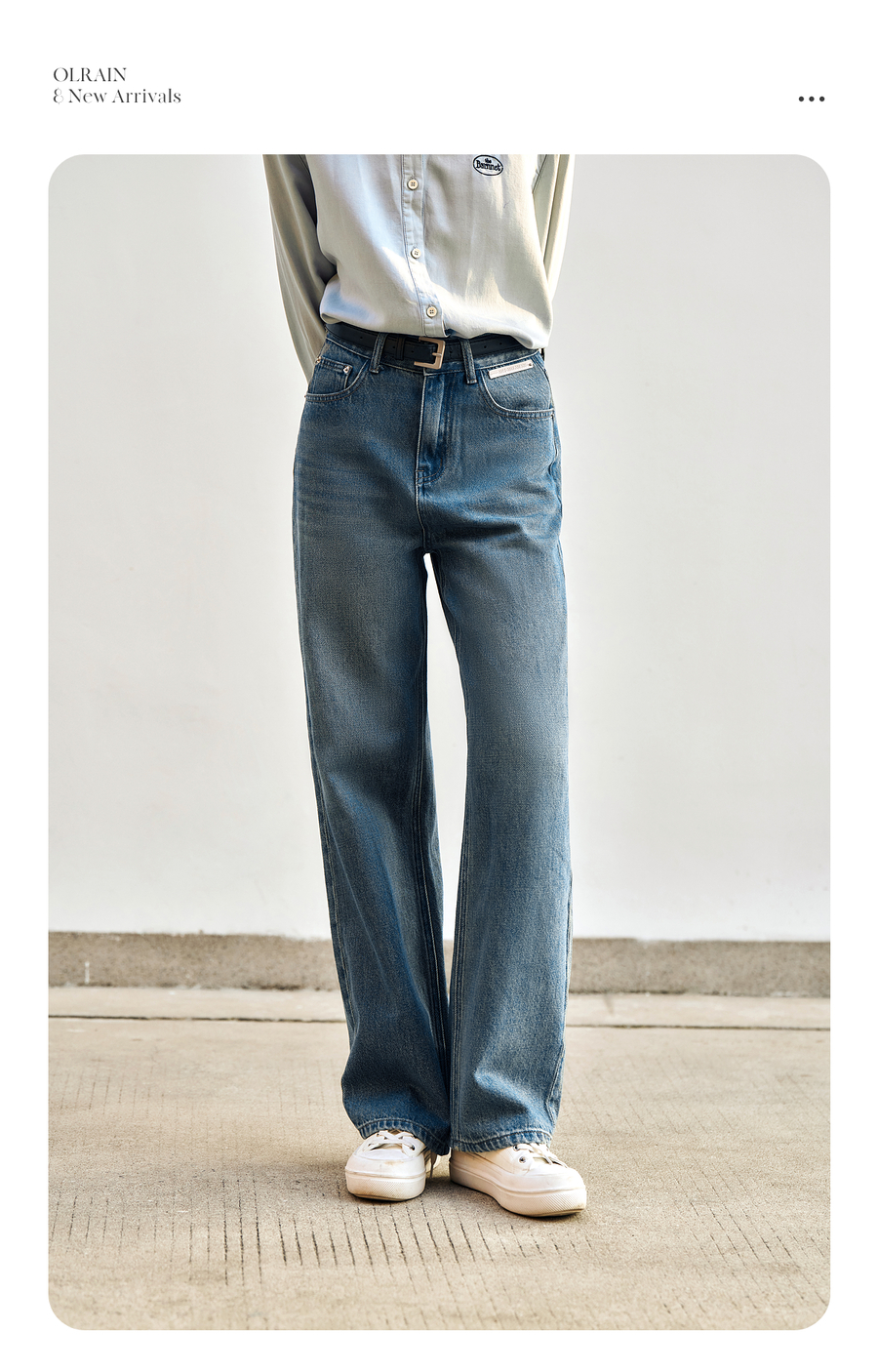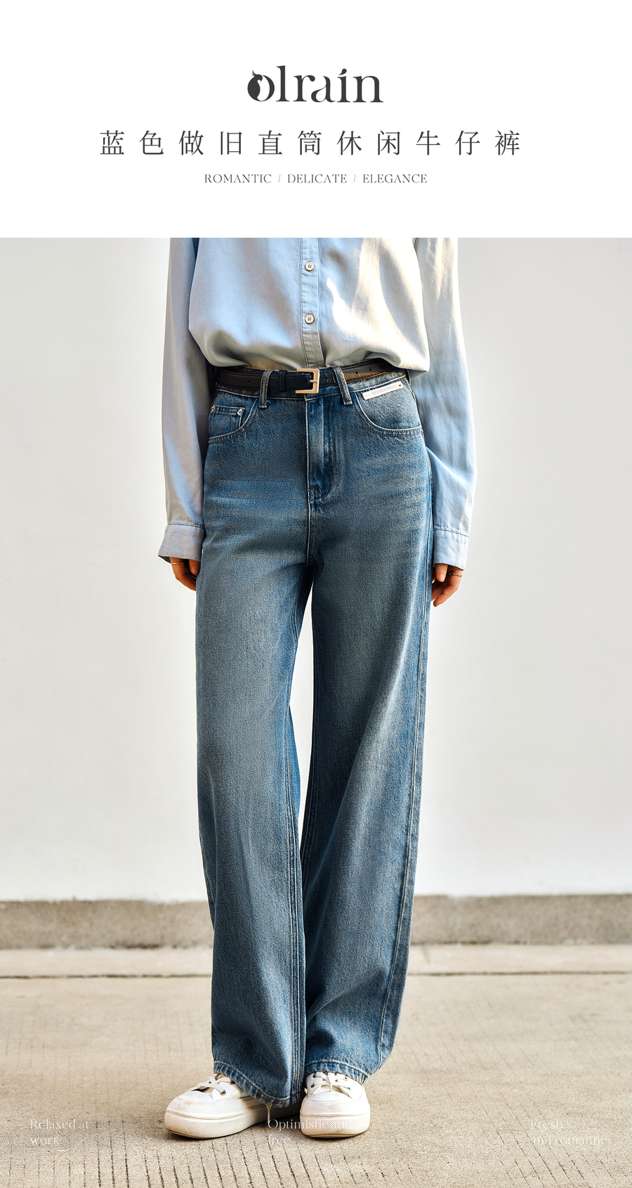 OLrain欧芮儿蓝色牛仔裤女春季2025年新款时尚百搭直筒休闲阔腿裤