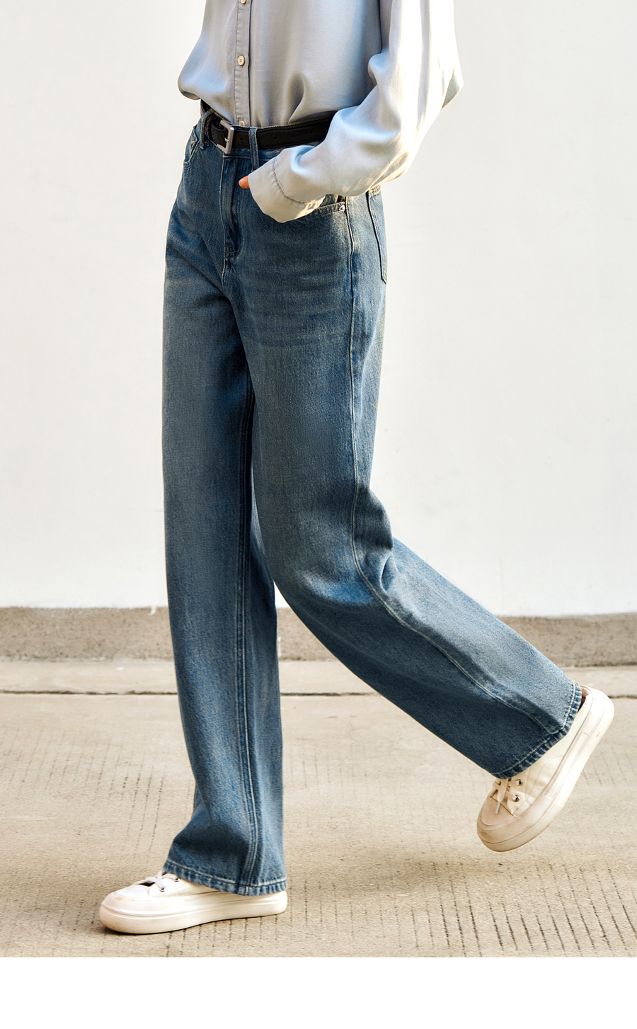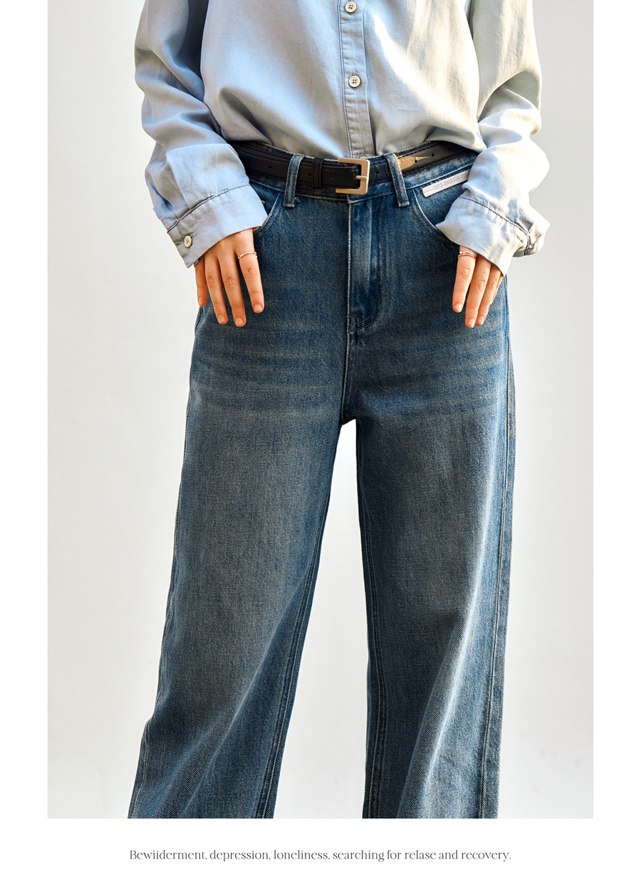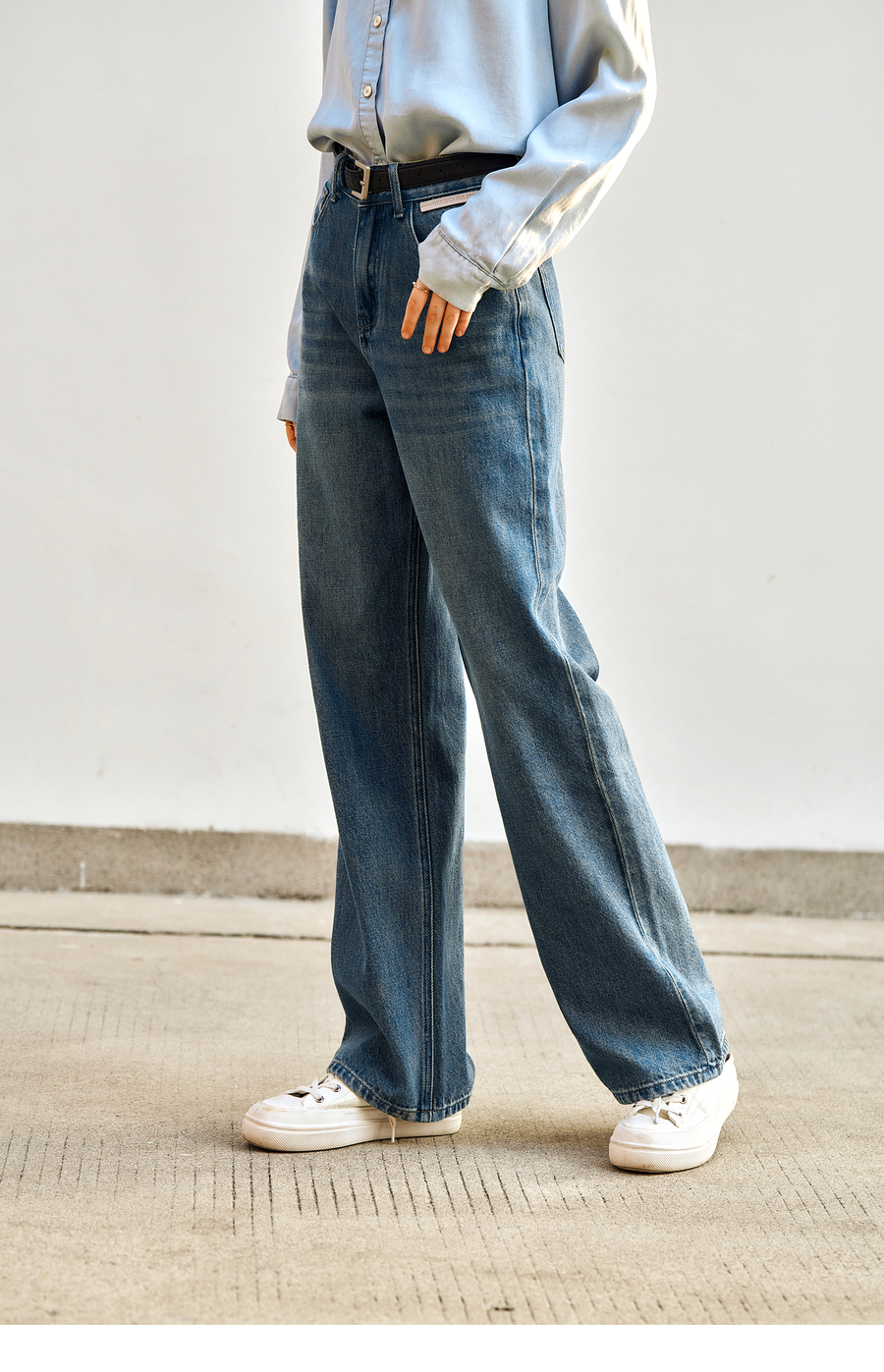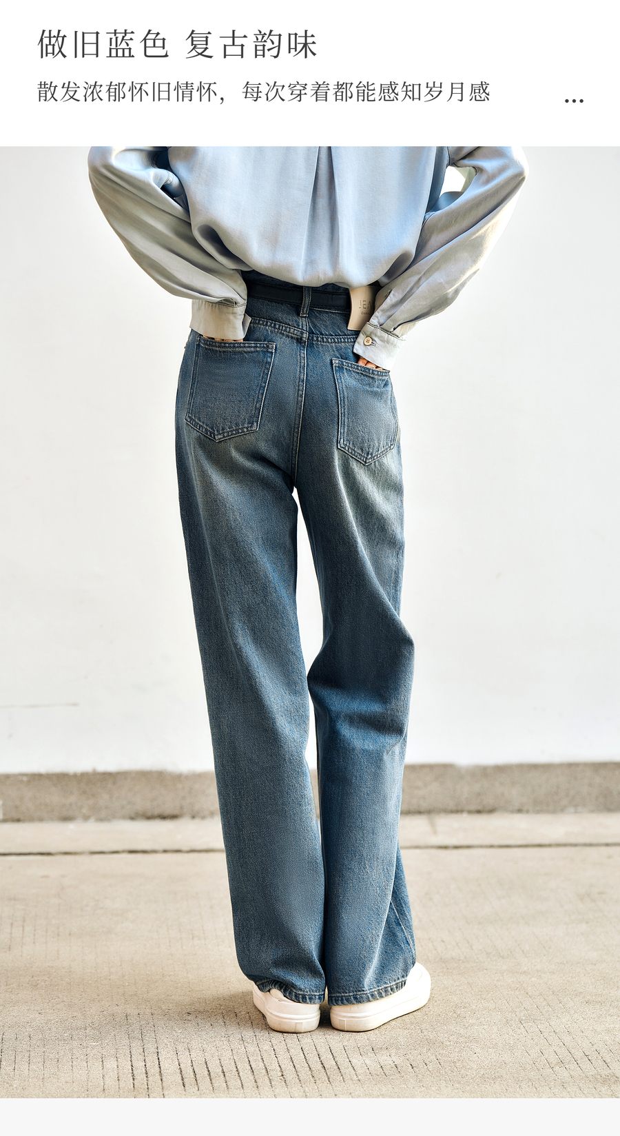 OLrain欧芮儿蓝色牛仔裤女春季2025年新款时尚百搭直筒休闲阔腿裤