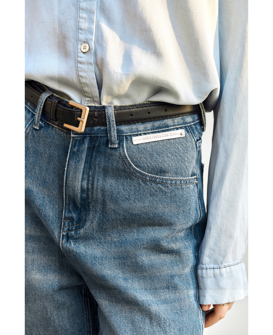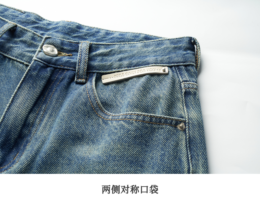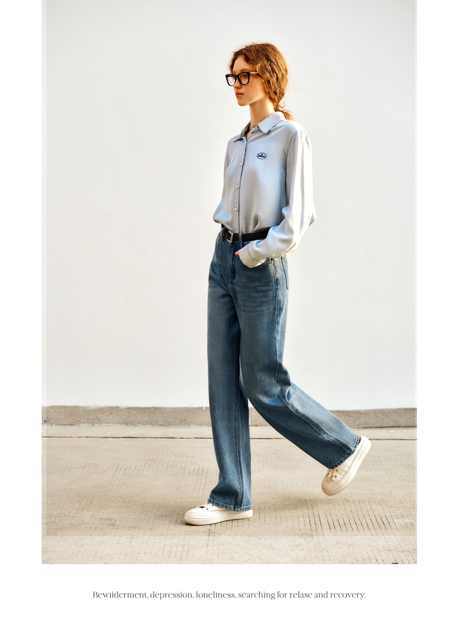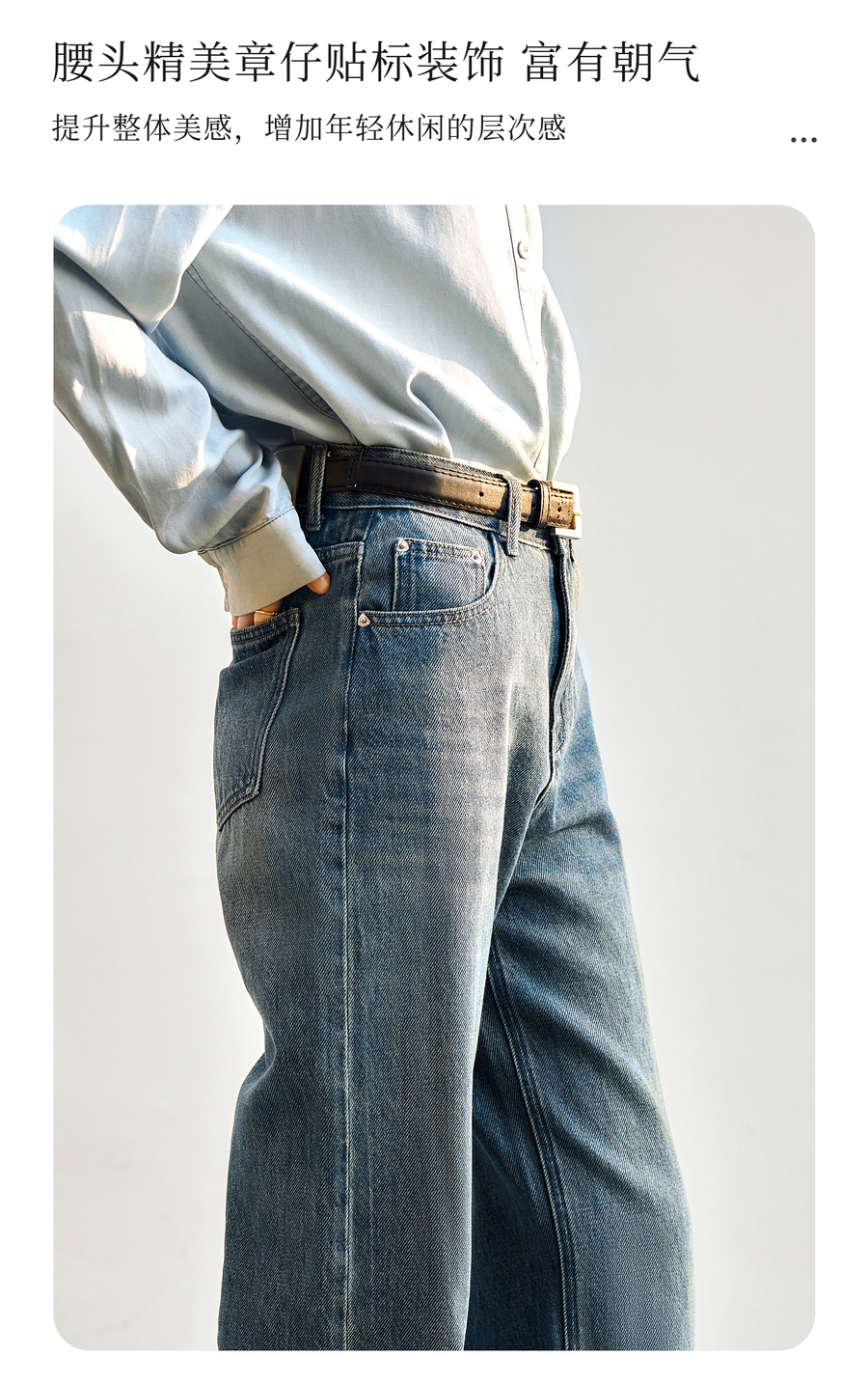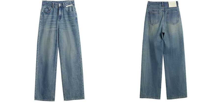 OLrain欧芮儿蓝色牛仔裤女春季2025年新款时尚百搭直筒休闲阔腿裤
