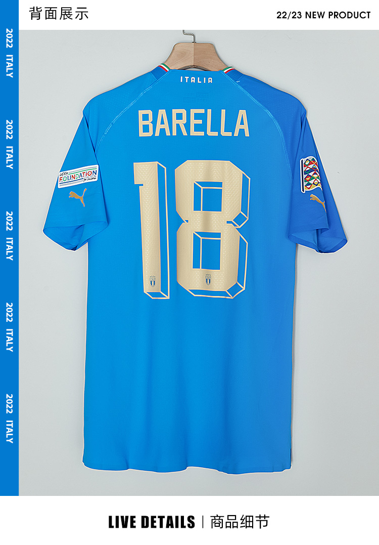 【送官方礼盒】SFS彪马正品2022欧国联意大利主场球员版球衣短袖足球服765671-01