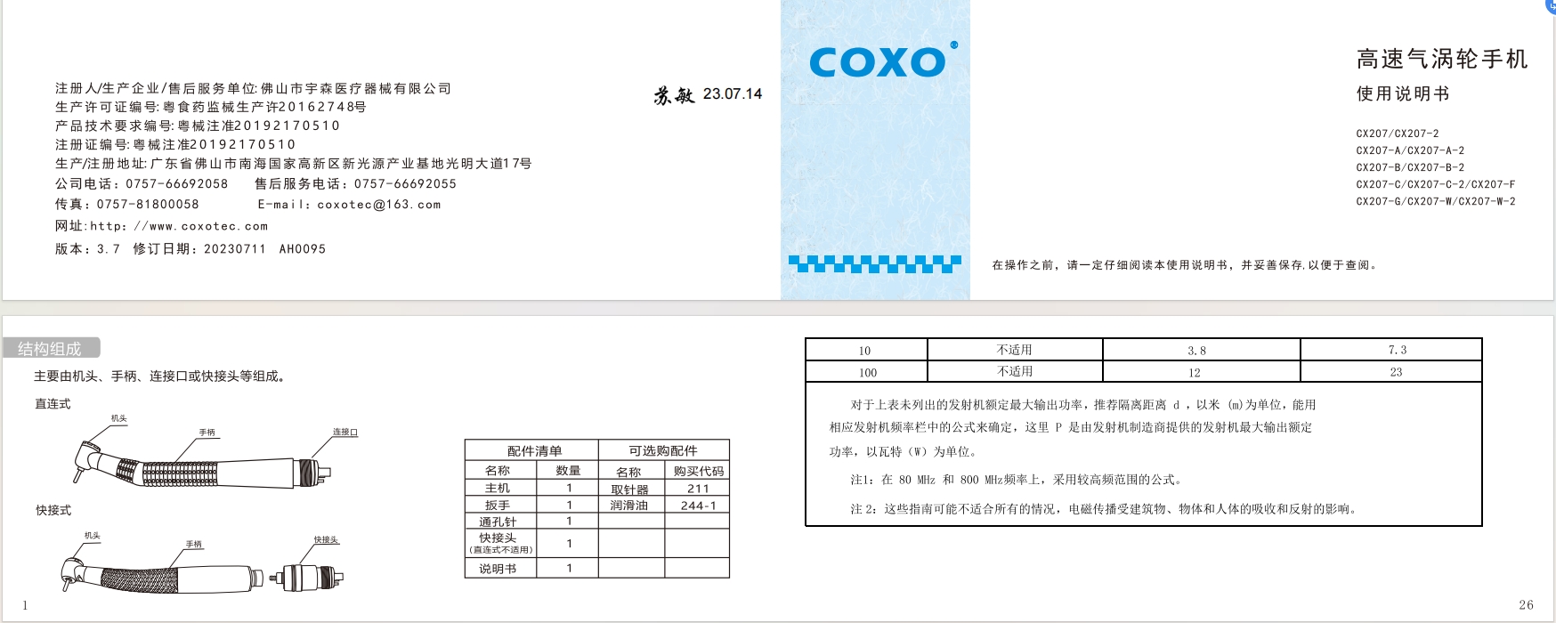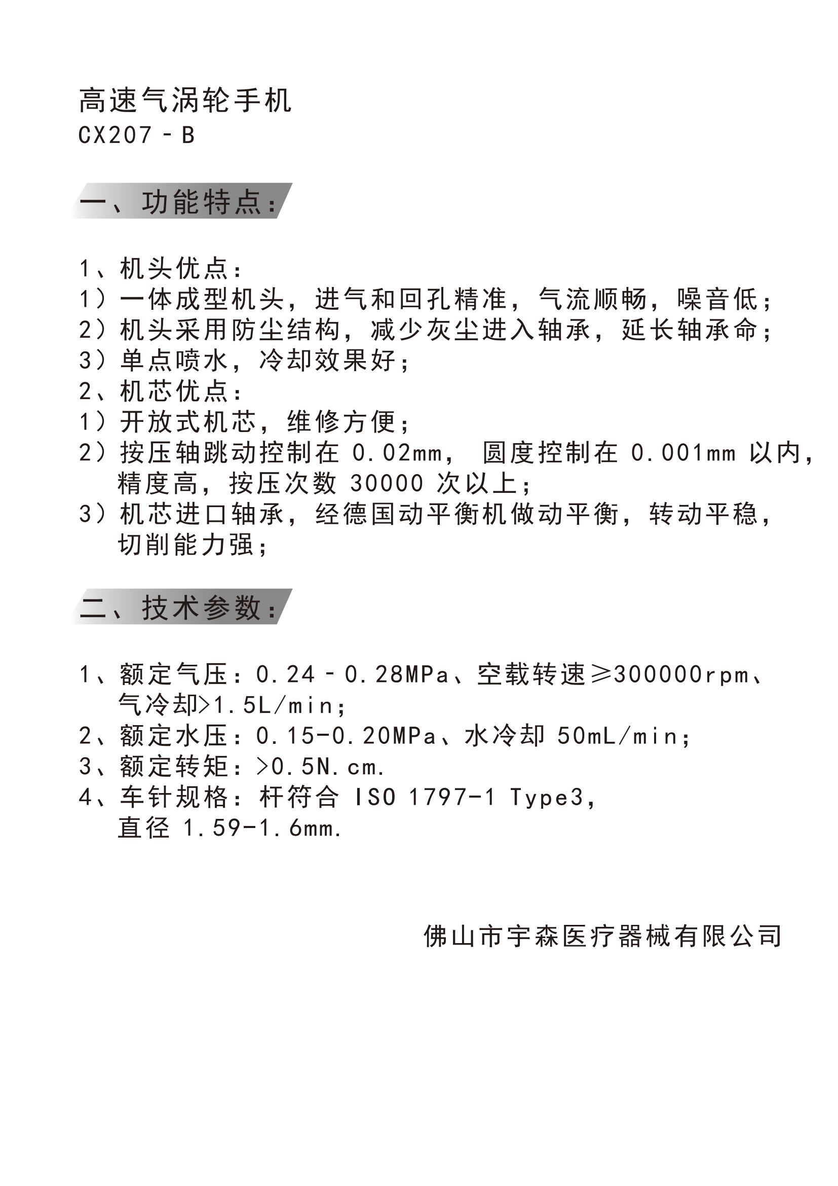 高速气涡轮手机【宇森 高速气涡轮手机(按压) CX207-B 赠送牙科冲洗针一盒(可议价并保修一年) bc】