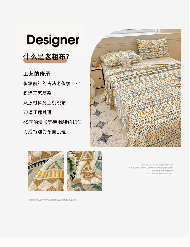【品牌直发】加倍生活 新款原棉老粗布床单三件套 传统织造工艺 72道工序处理 传统粗布凉席 耐磨耐用 贴身柔软