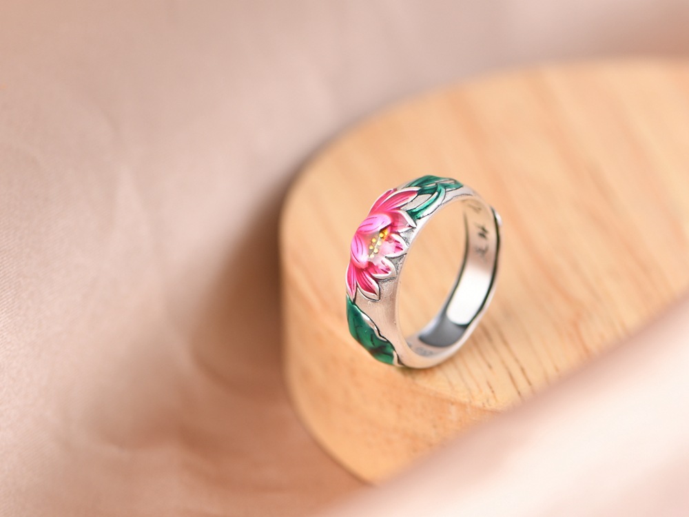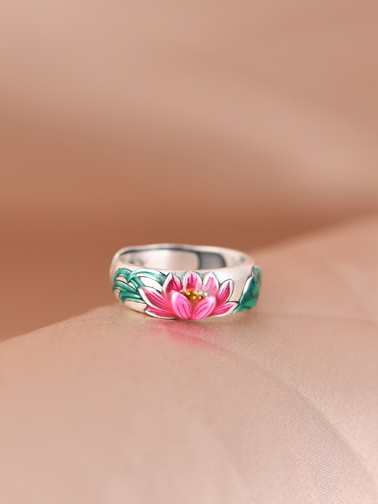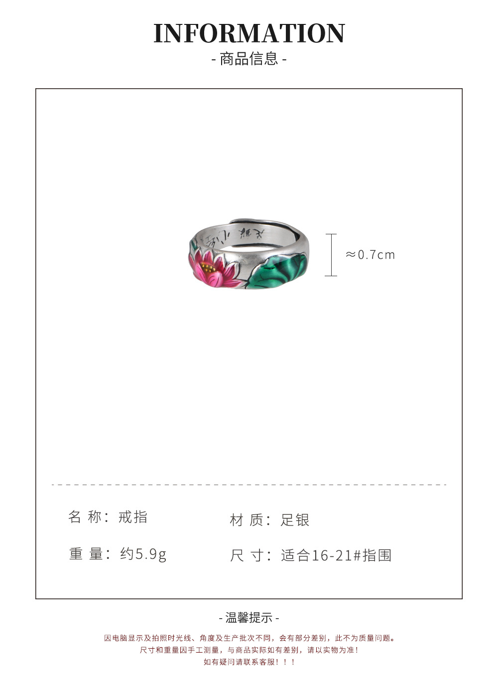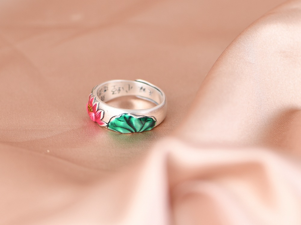 【连开好运】足银景泰蓝莲花荷叶心经可调节戒指【SCH-SY23559】