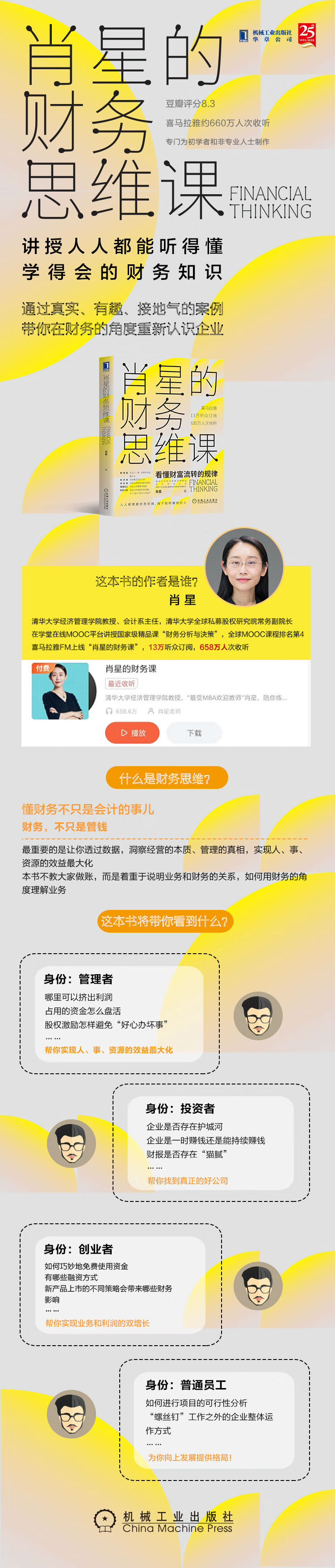 喜马拉雅13万订阅,630万次收听,全球MOOC排名第4的清华会计系主任肖星讲授人人都能学懂的财务知识,带你认识财富流转的规律,做个聪明赚钱的人