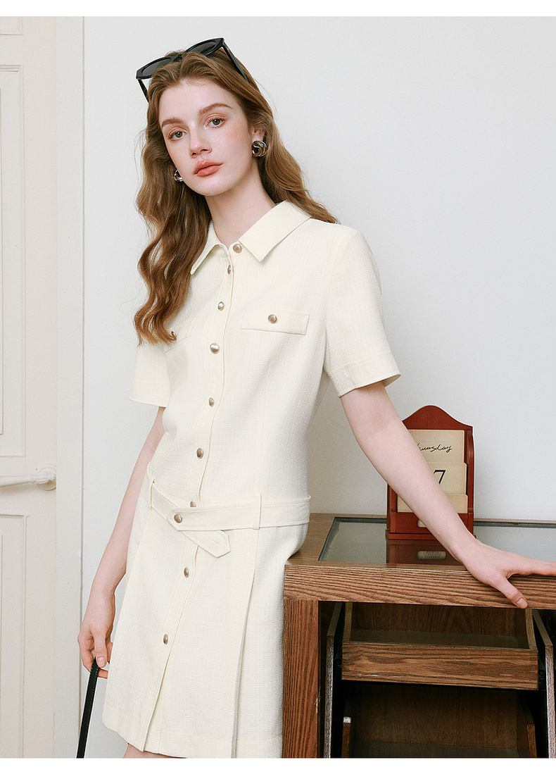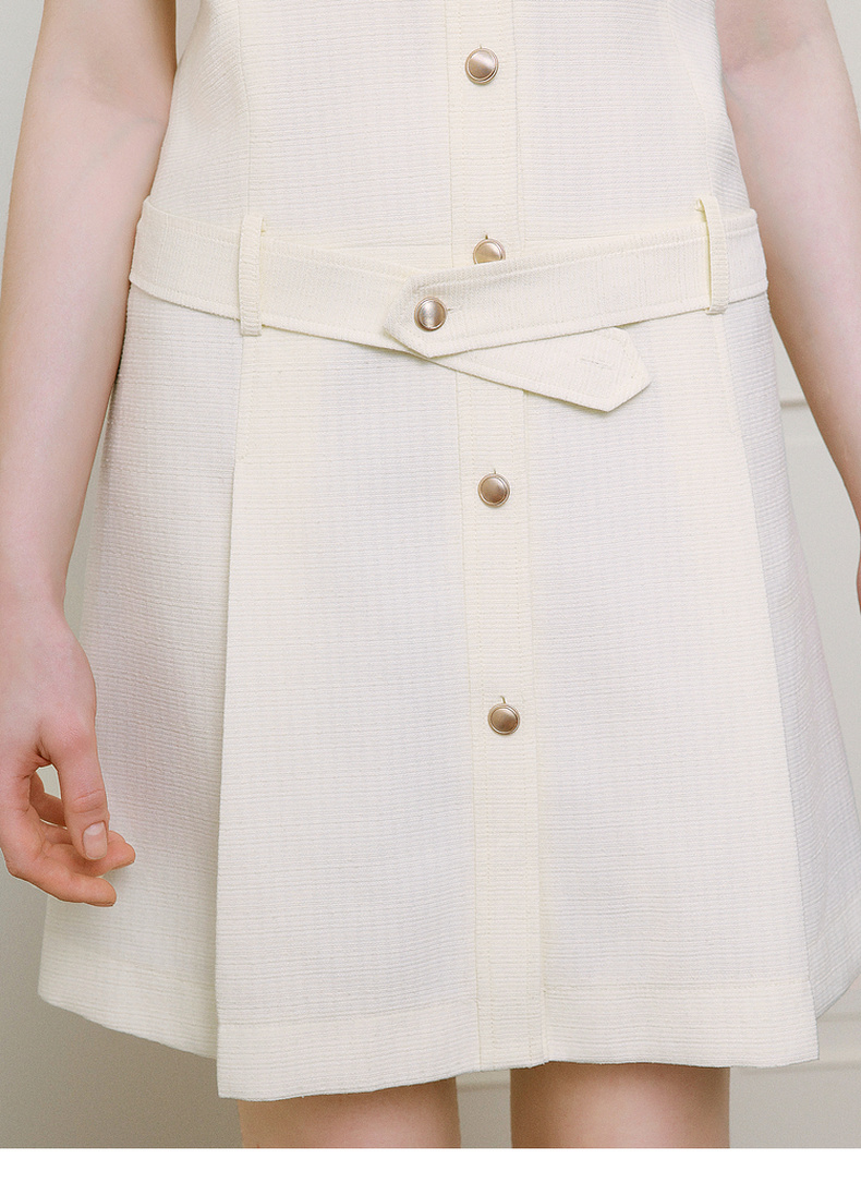【商场同款】诗凡黎米色针梭拼连衣裙2025夏新款中长裙3G4190111