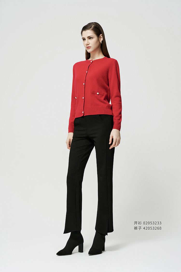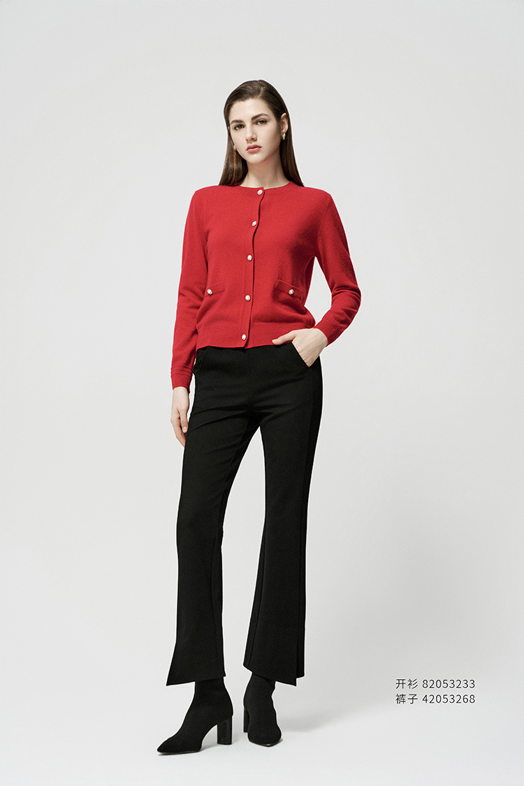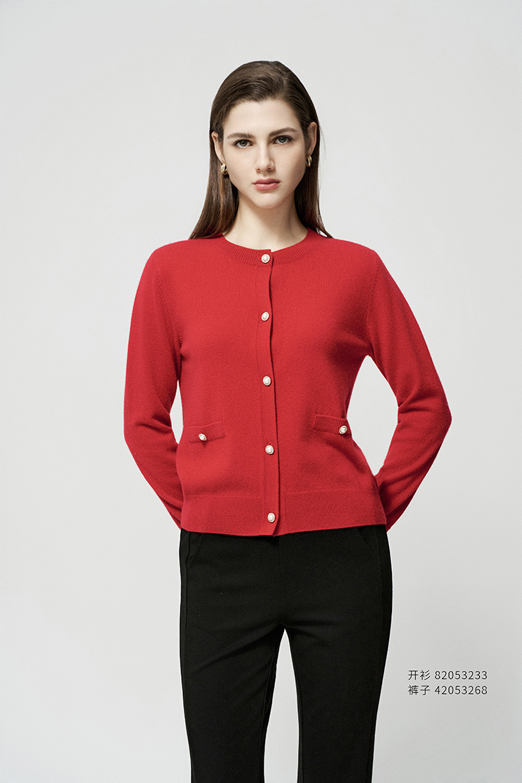 【半价款羊绒开衫】羊绒世家秋冬新品女士100%山羊绒纯色百搭红色外套