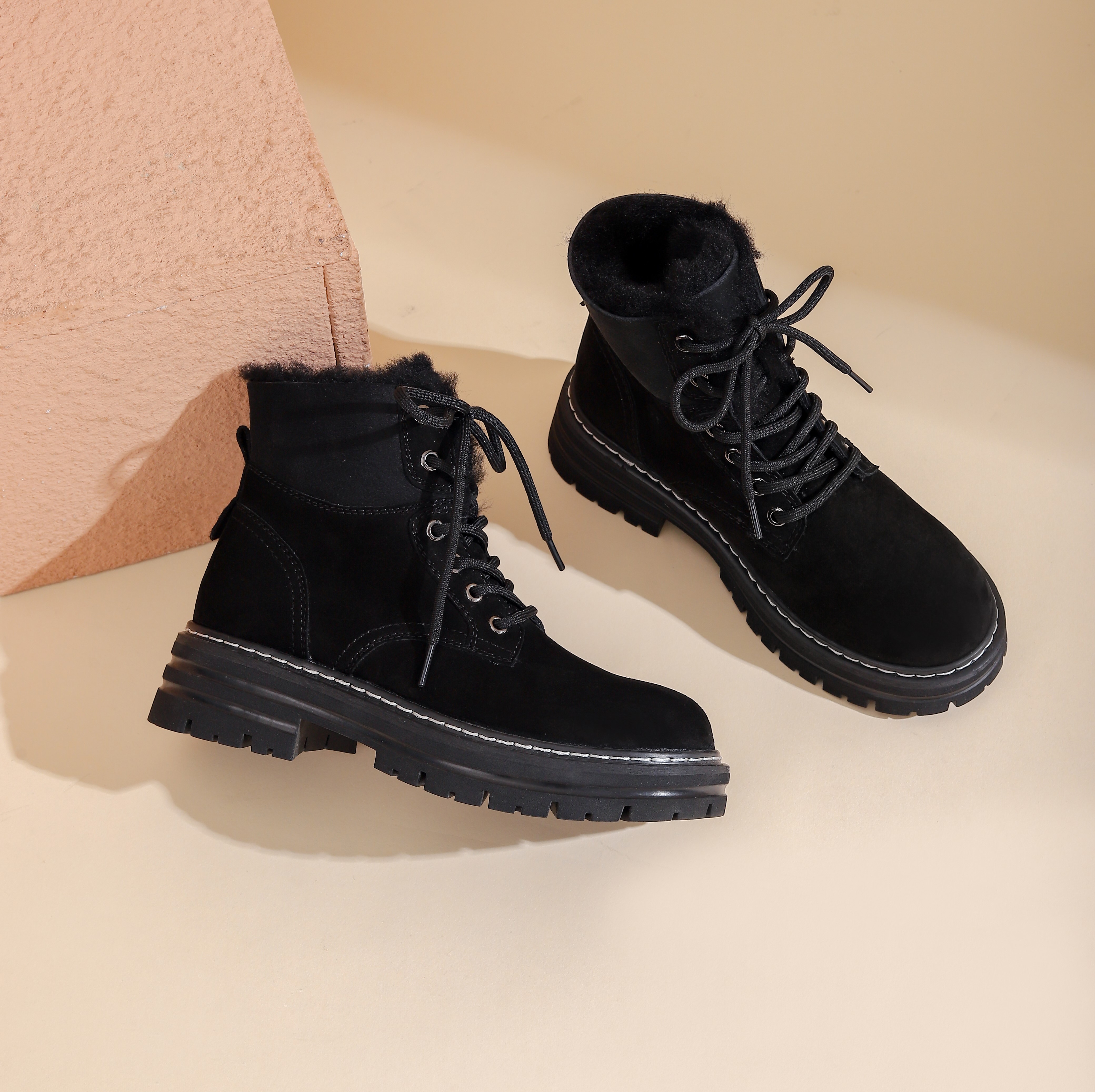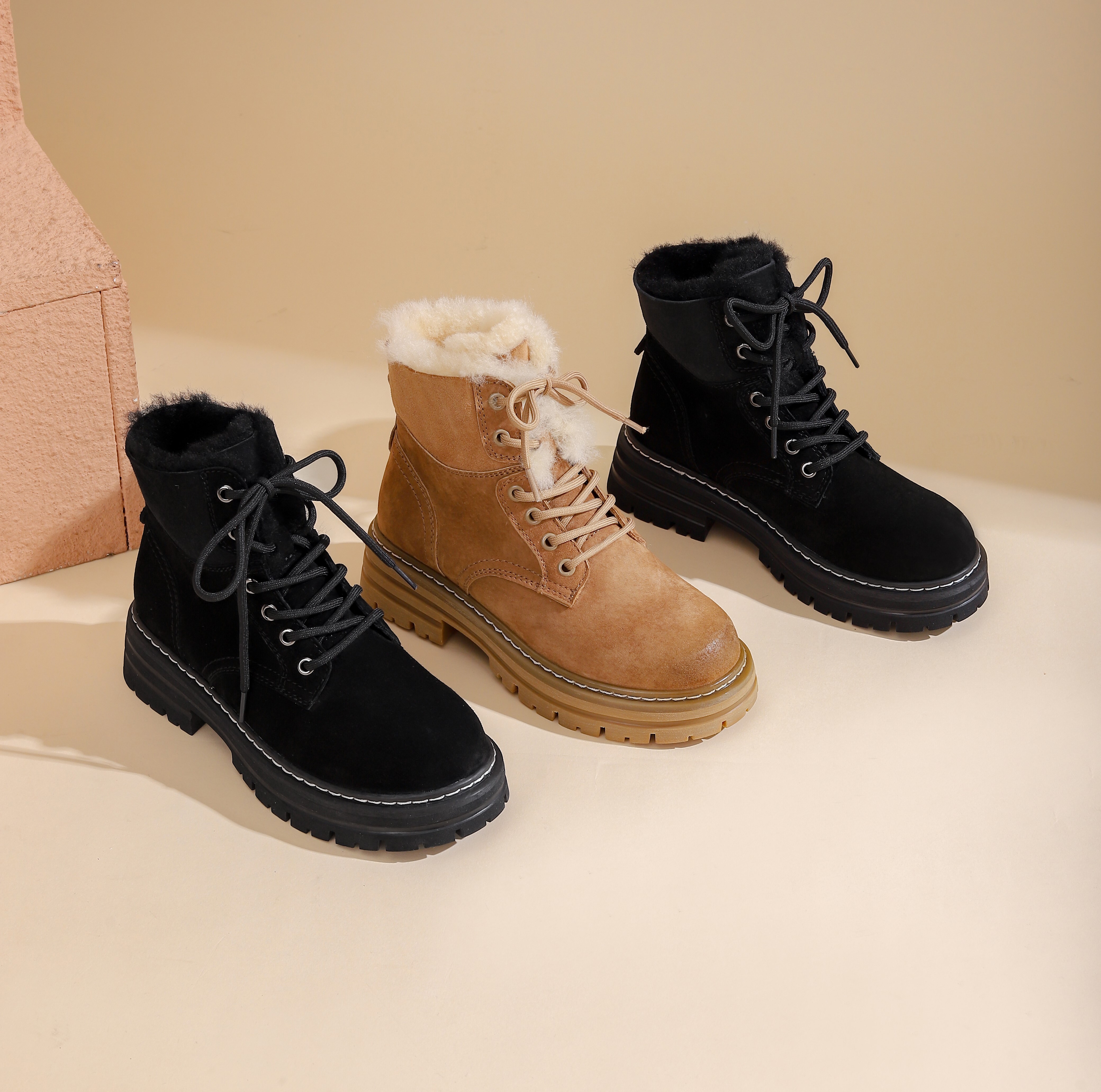 西村名物冬季新款厚底增高毛绒内里系带马丁靴T22DS45011