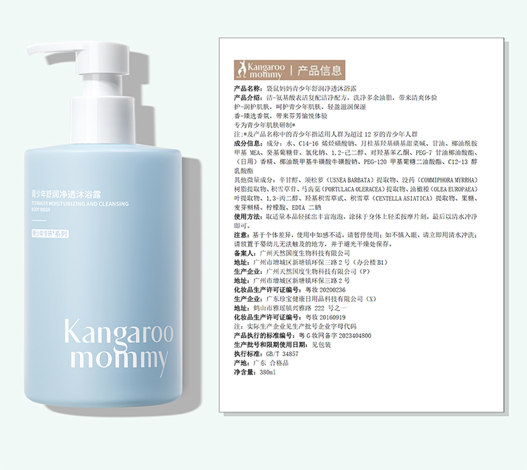 【TOP登陆少年组合同款】青少年专研沐浴露 净味保湿 袋鼠妈妈青少年舒润净透沐浴露380ml