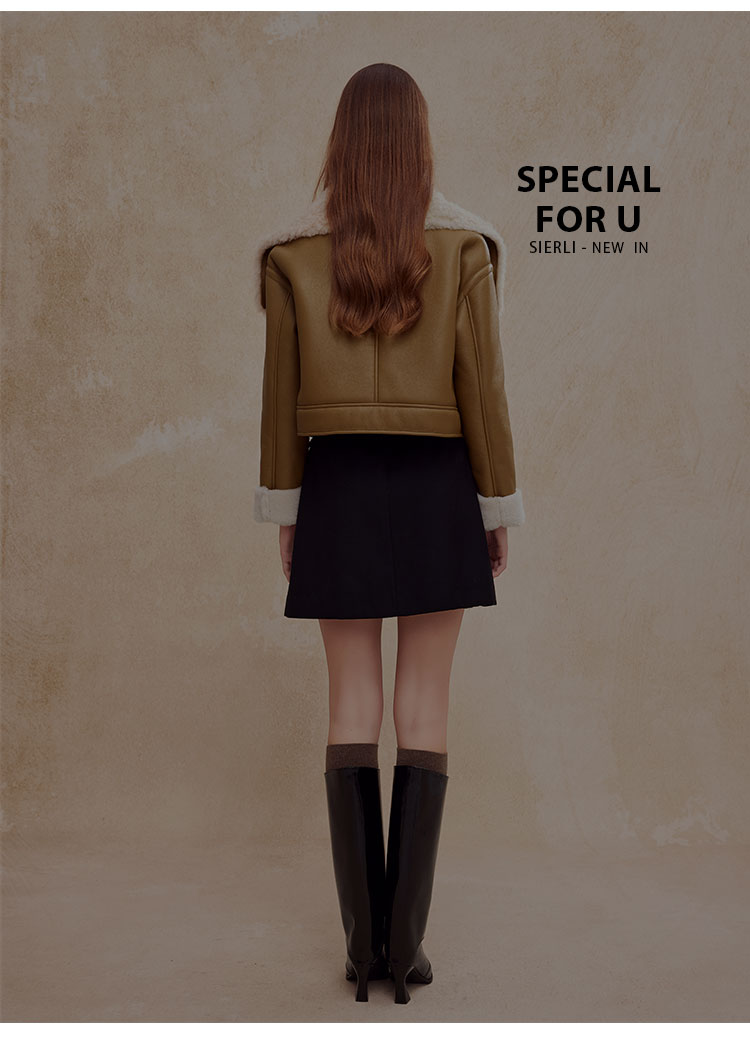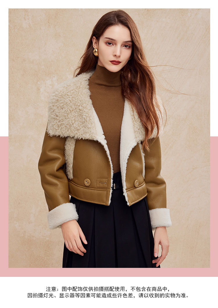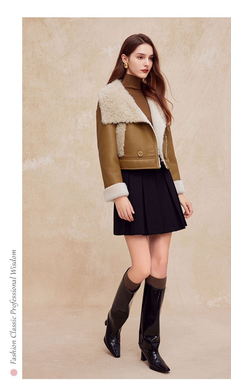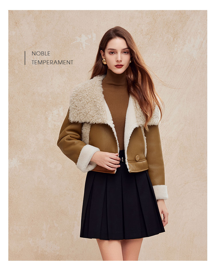 PP611斯尔丽2024冬季新款皮毛一体大翻领时尚减龄外套