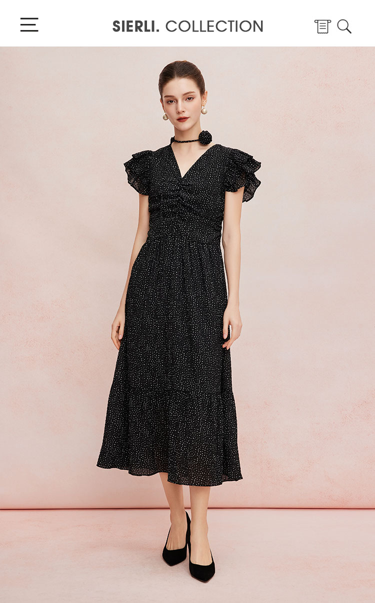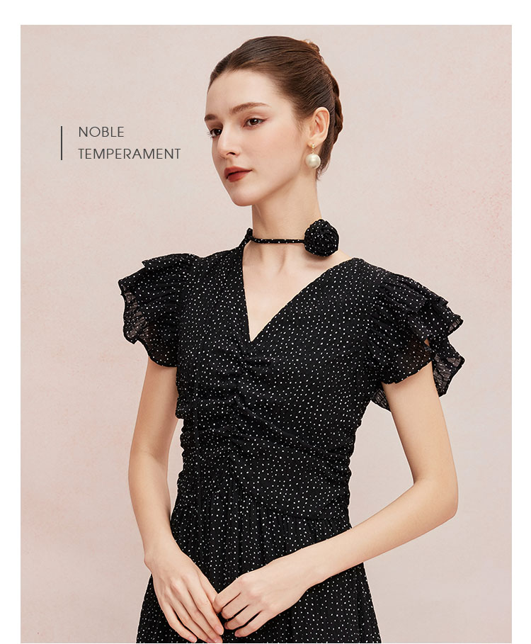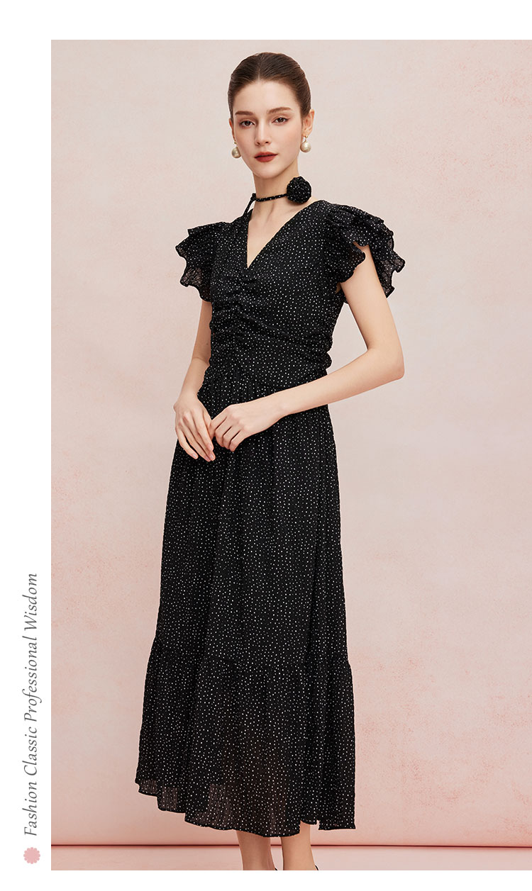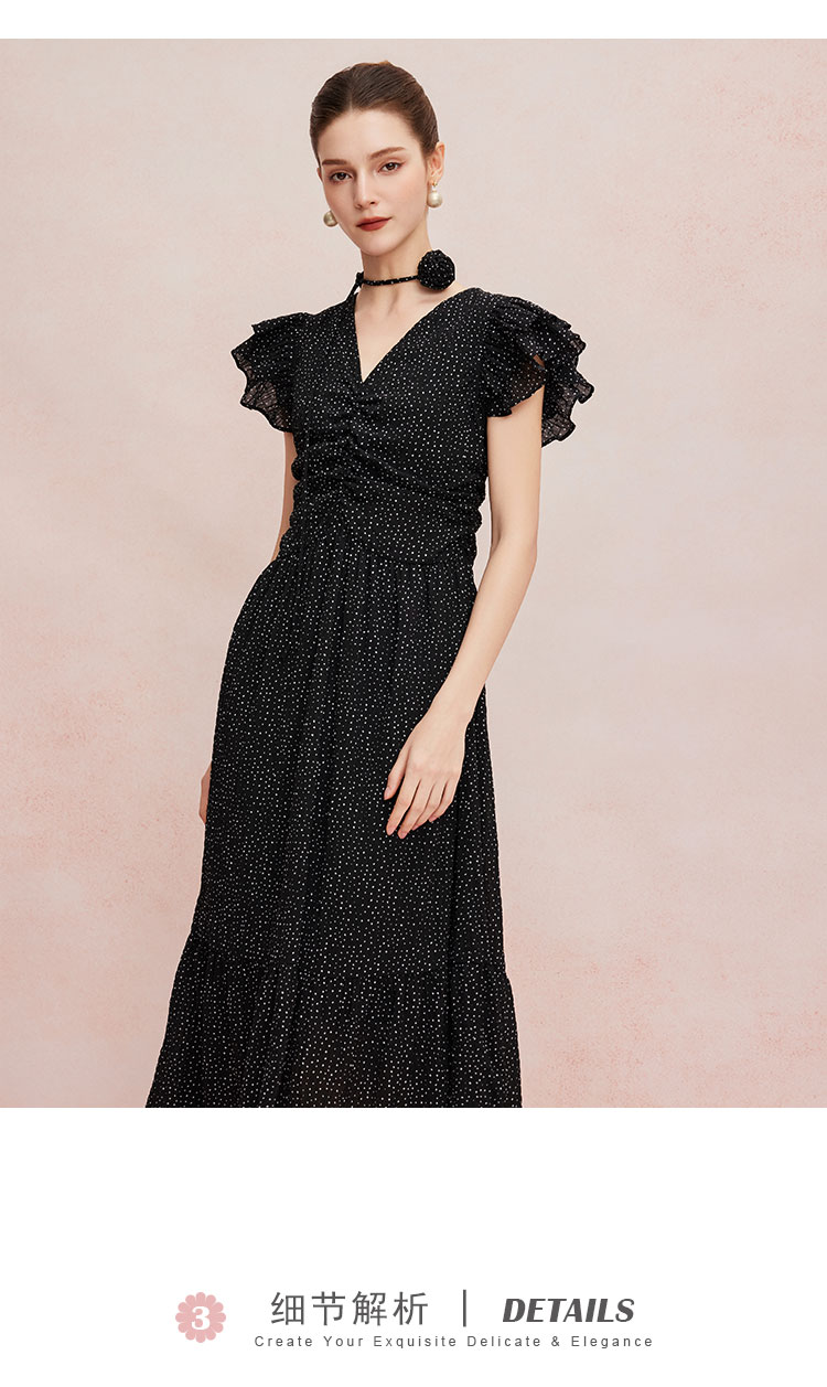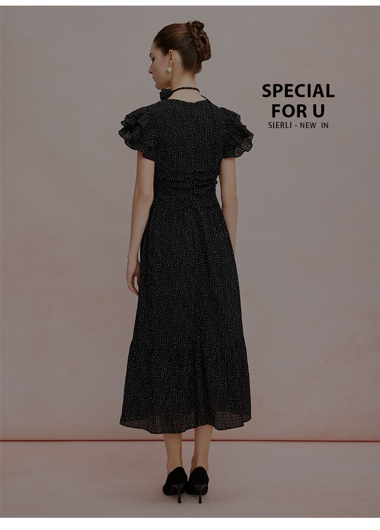 QF8B9斯尔丽25新款法式浪漫荷叶边立体手工盘花可腰带可领度假连衣裙