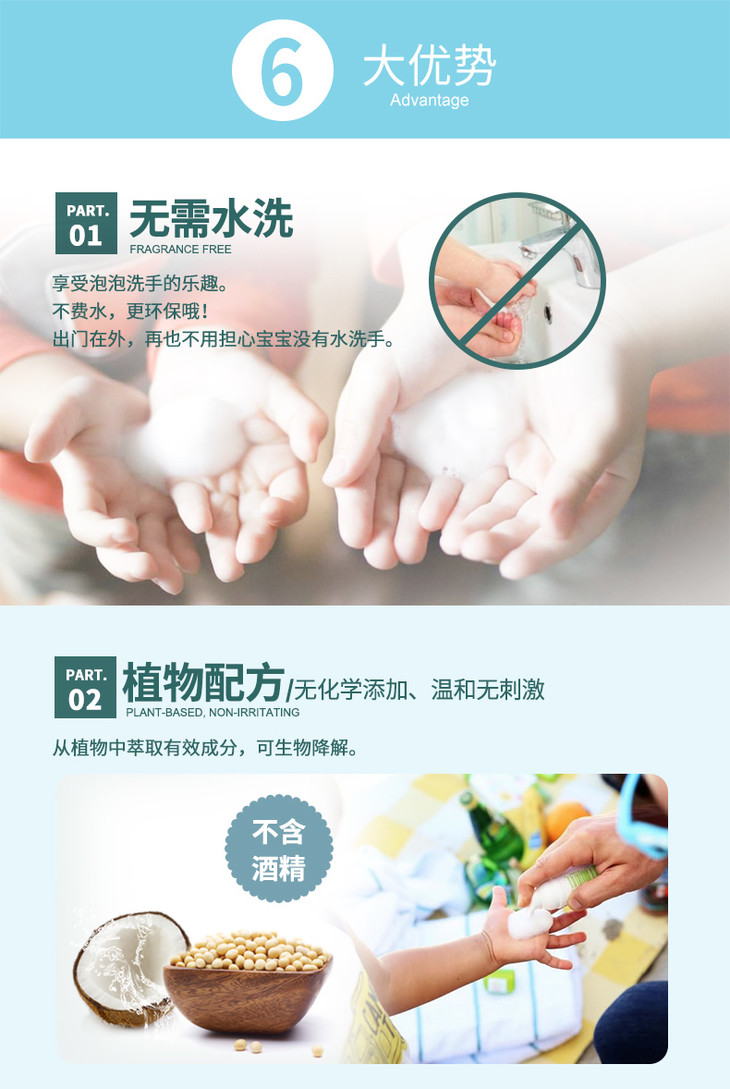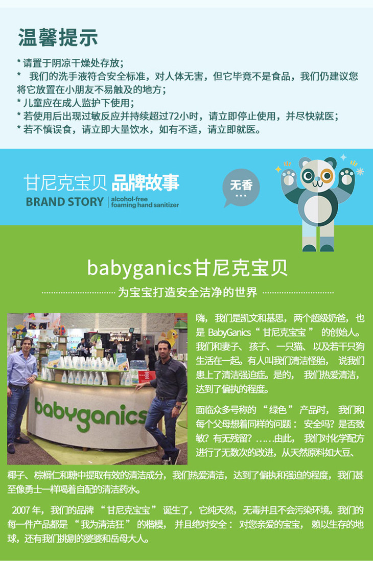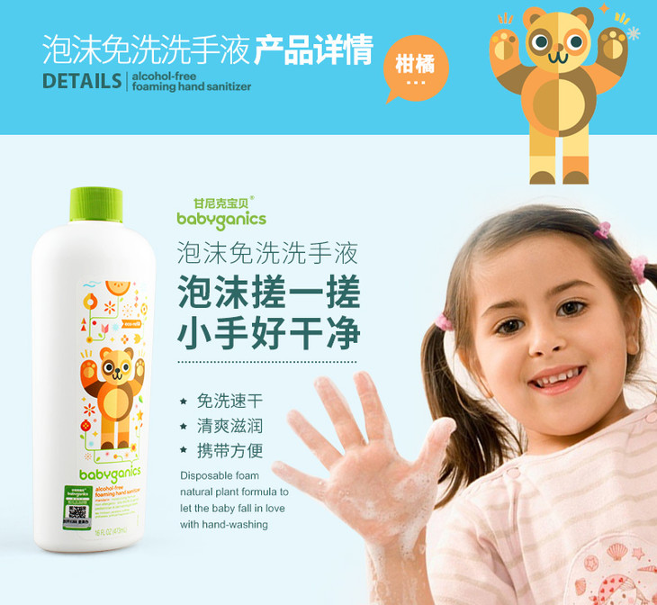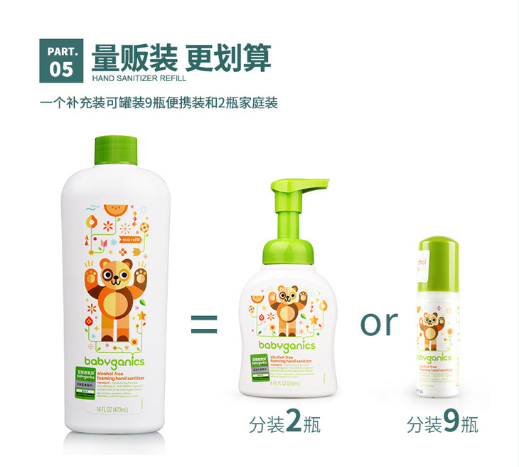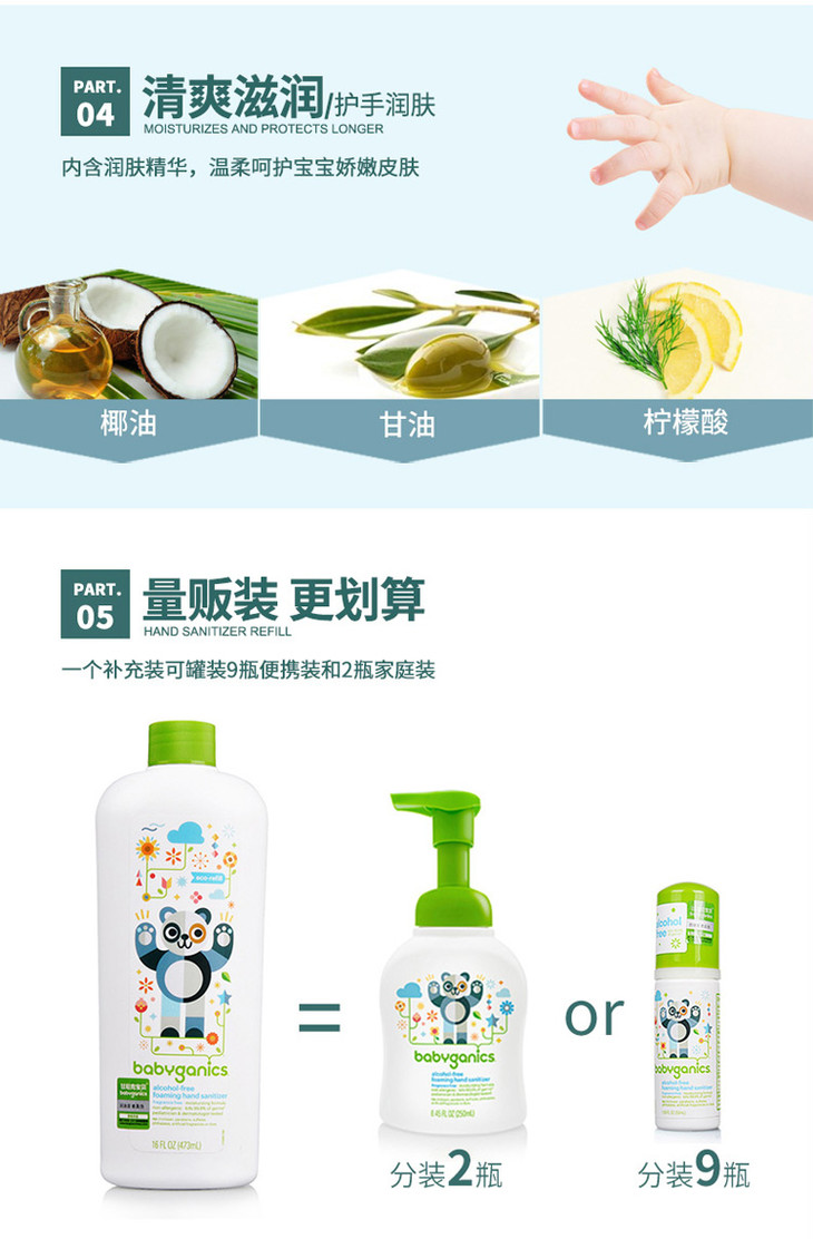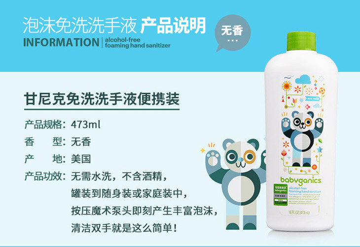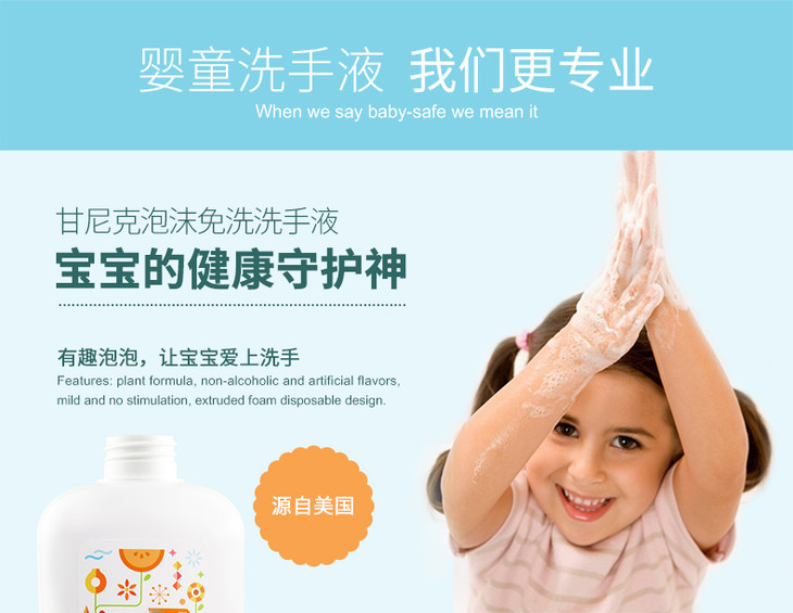 美国进口甘尼克宝贝BabyGanics宝宝免洗洗手液补充装