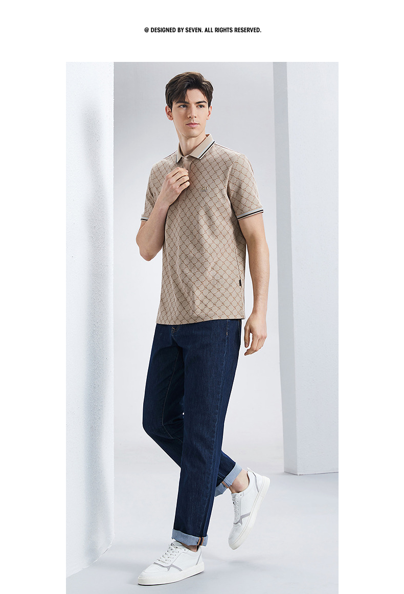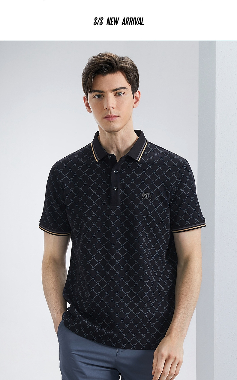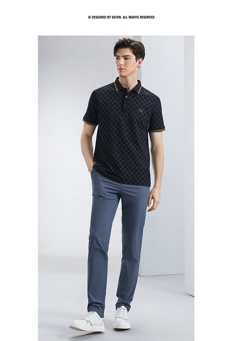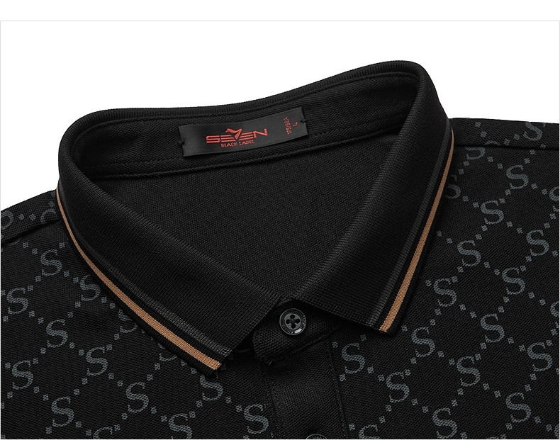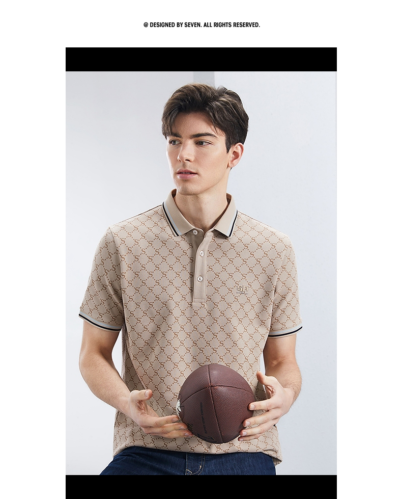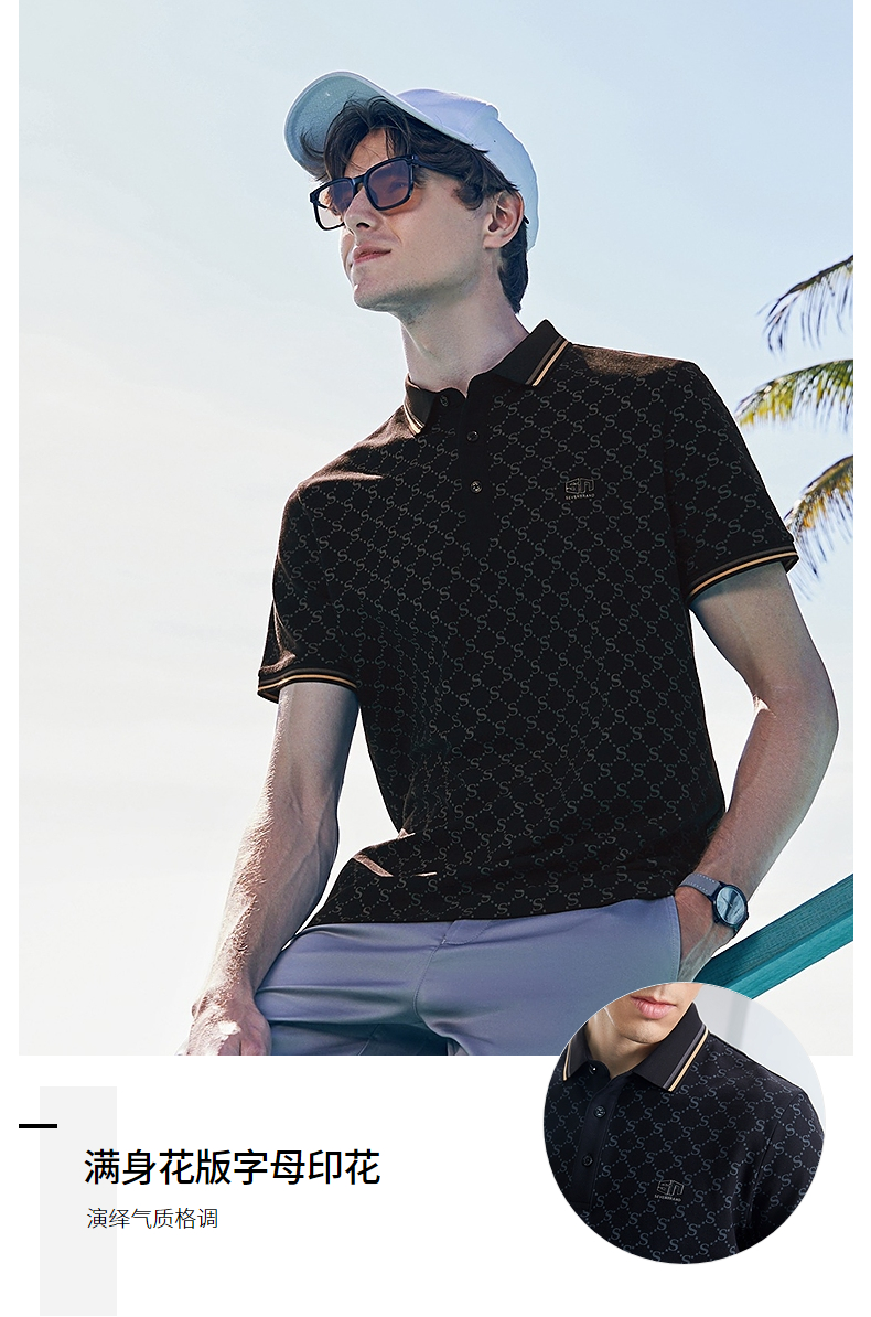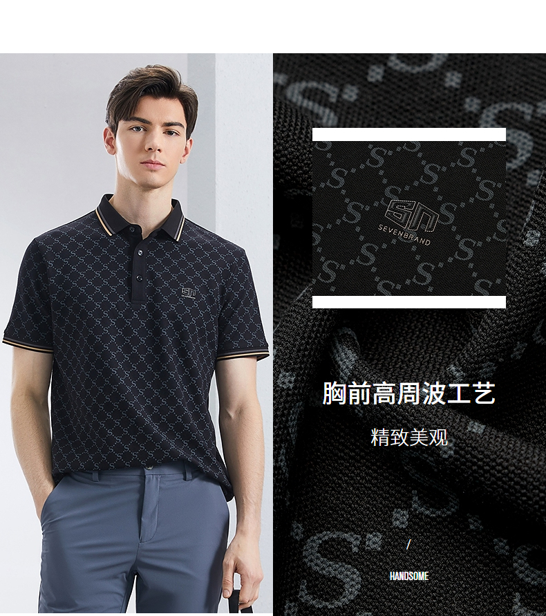 【不变形领】【不变形领】柒牌短袖polo衫男夏季新款商务百搭字母满印翻领上衣 126T70760