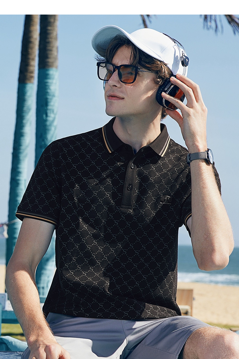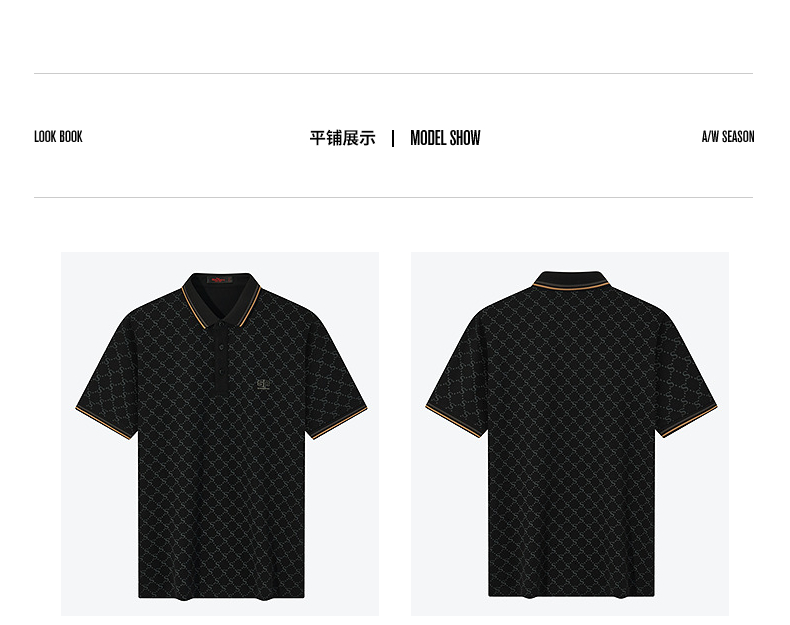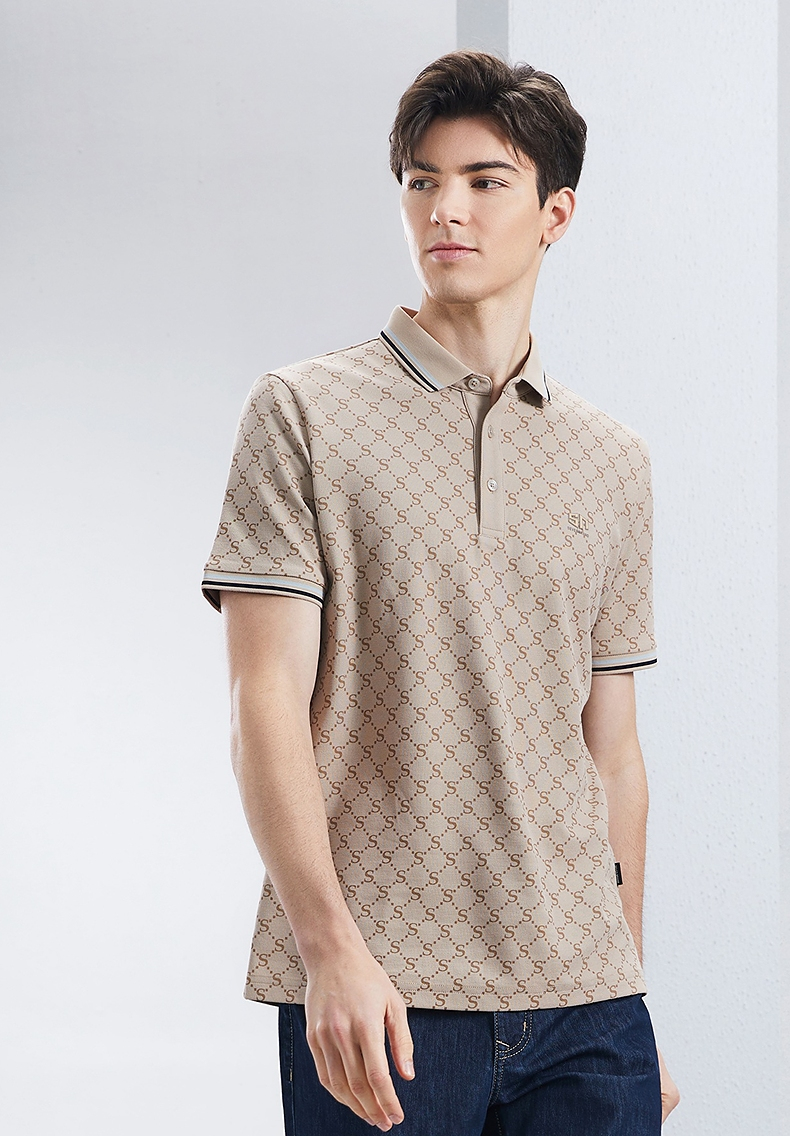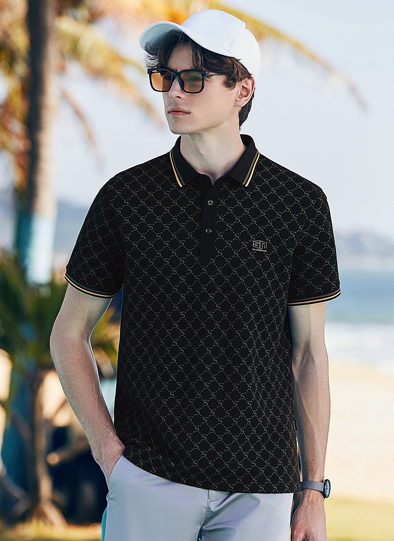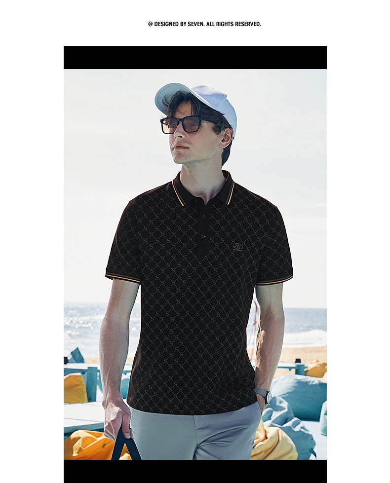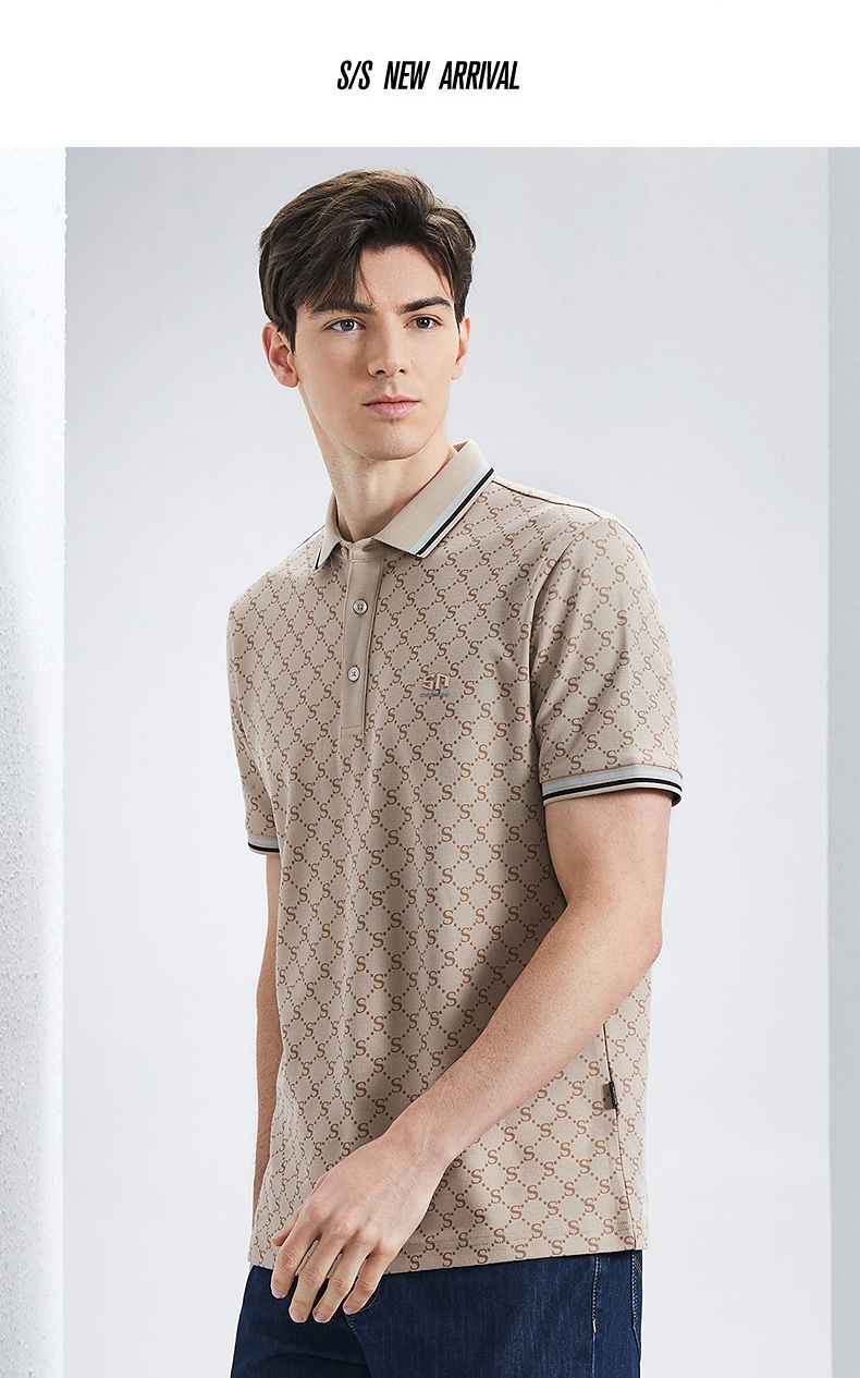 【不变形领】【不变形领】柒牌短袖polo衫男夏季新款商务百搭字母满印翻领上衣 126T70760