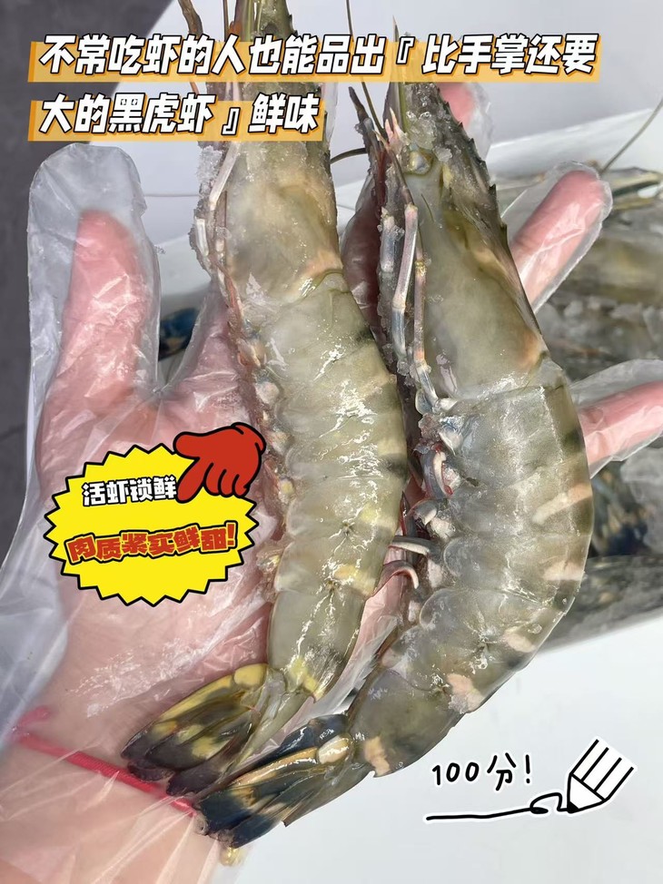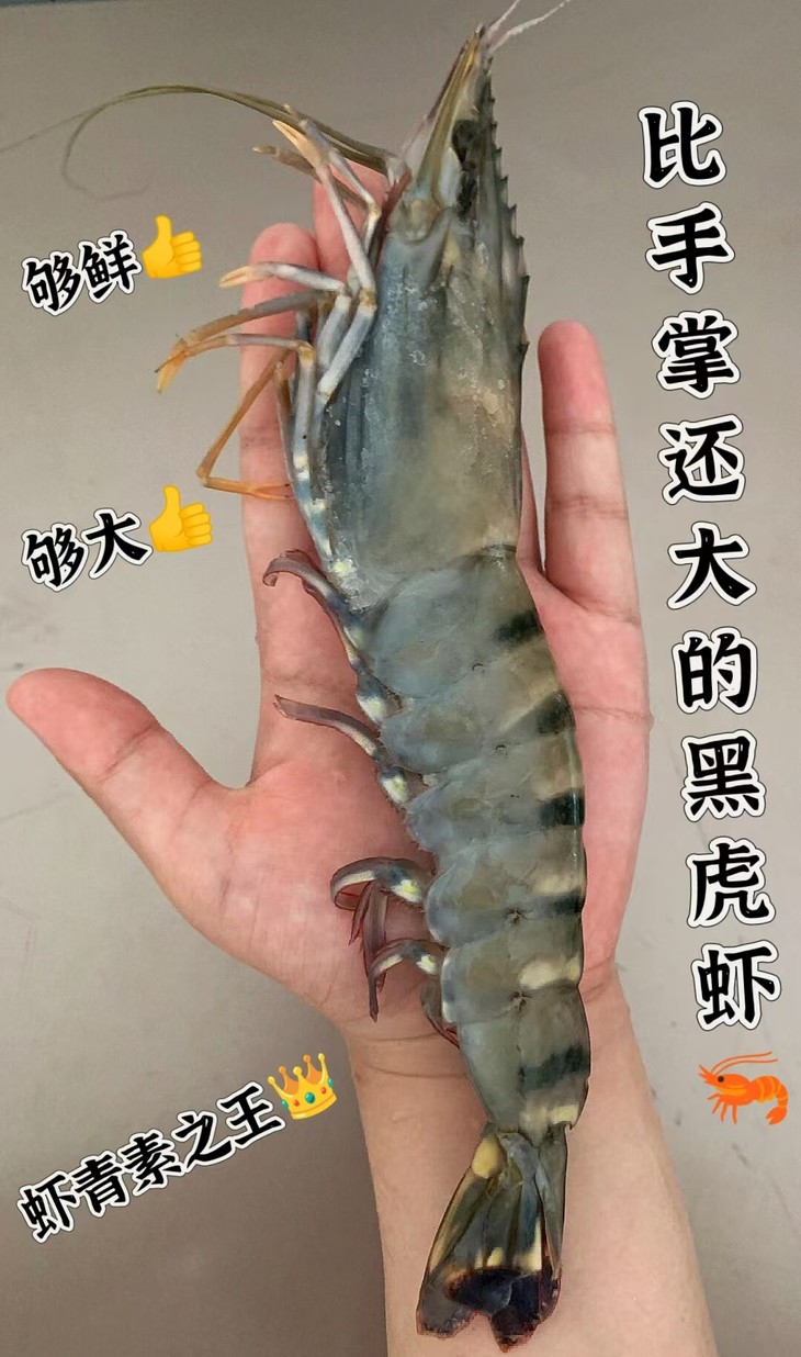 【比手掌还要大的黑虎虾】虾界 ◎劳斯莱斯 买到就是赚到!!活虾20min内船上急冻保留的原汁原味,吃到嘴里QQ弹弹,鲜香无比。肉质紧实鲜甜,分量十足,精选壳薄肉大。