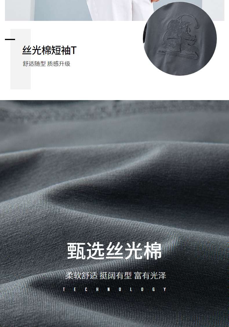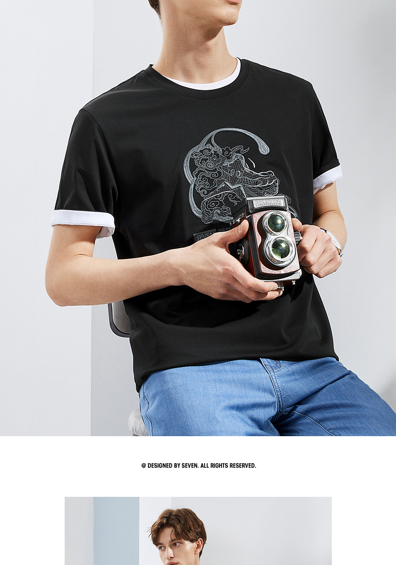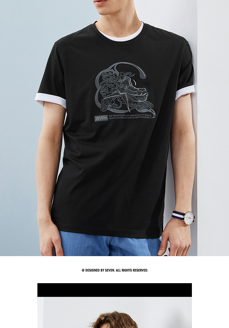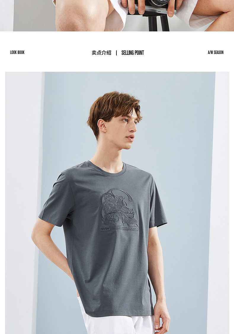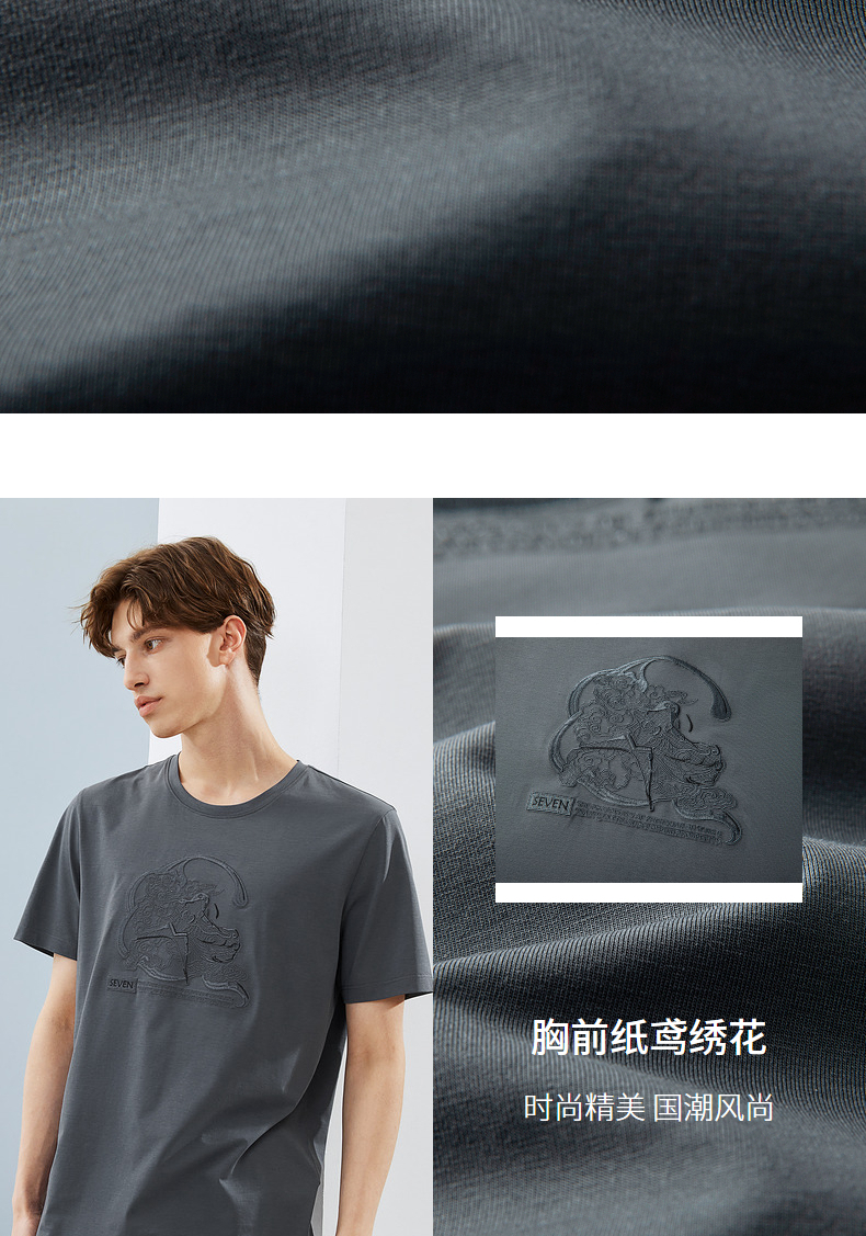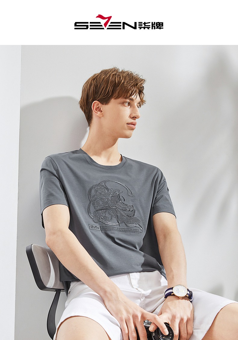 柒牌男装短袖T恤男夏季新款时尚纸鸢绣花国潮休闲圆领体恤衫 124T73020