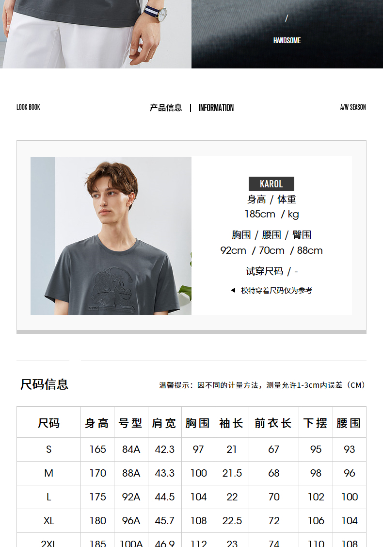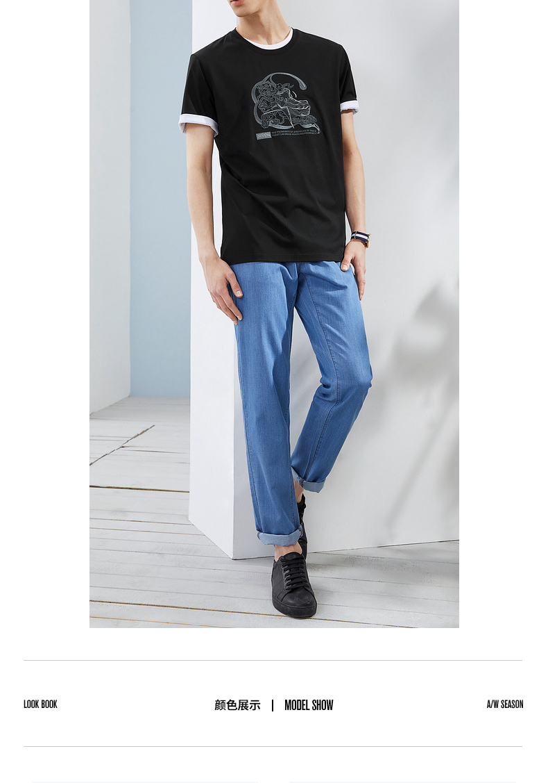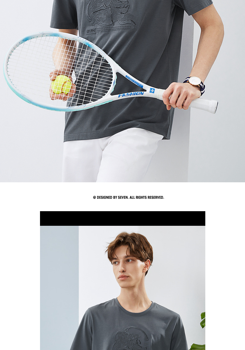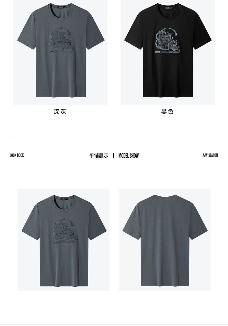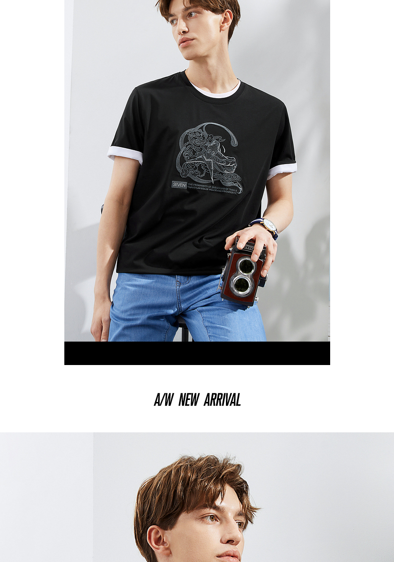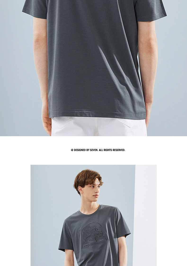 柒牌男装短袖T恤男夏季新款时尚纸鸢绣花国潮休闲圆领体恤衫 124T73020