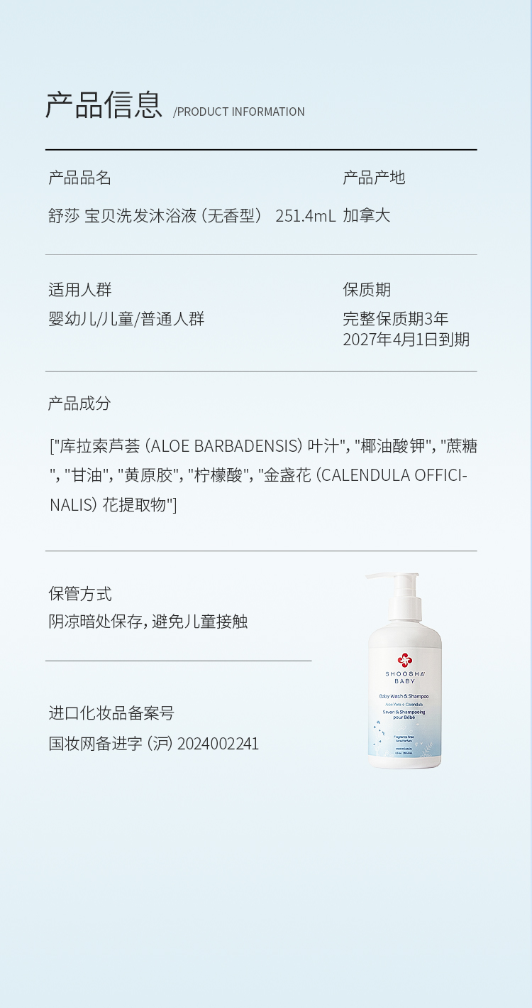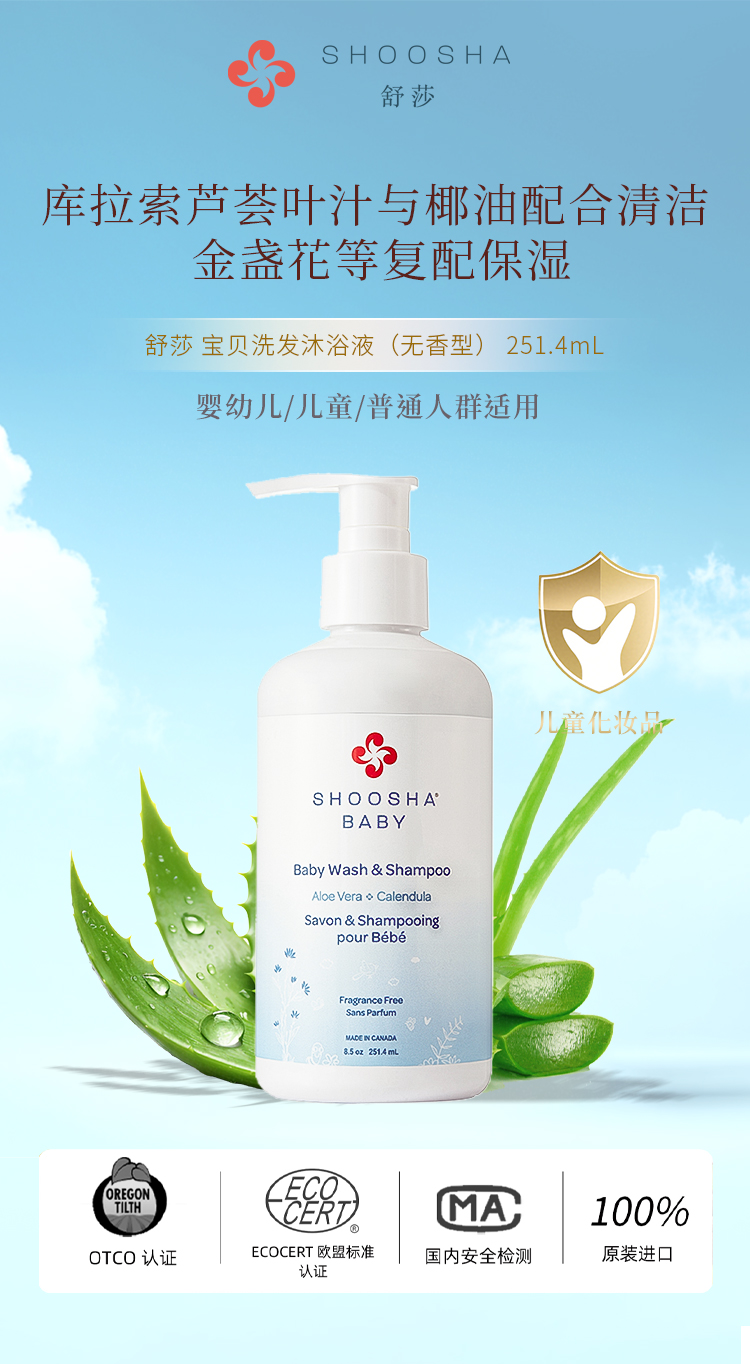 舒莎 宝贝洗发沐浴液(无香型) 251.4mL 加拿大进口 保湿清洁肌肤