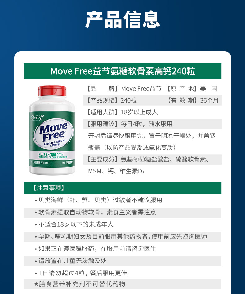 Move Free维骨力氨糖软骨素 高钙氨糖240粒