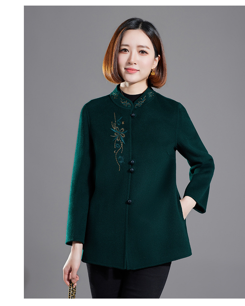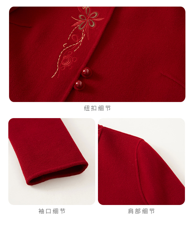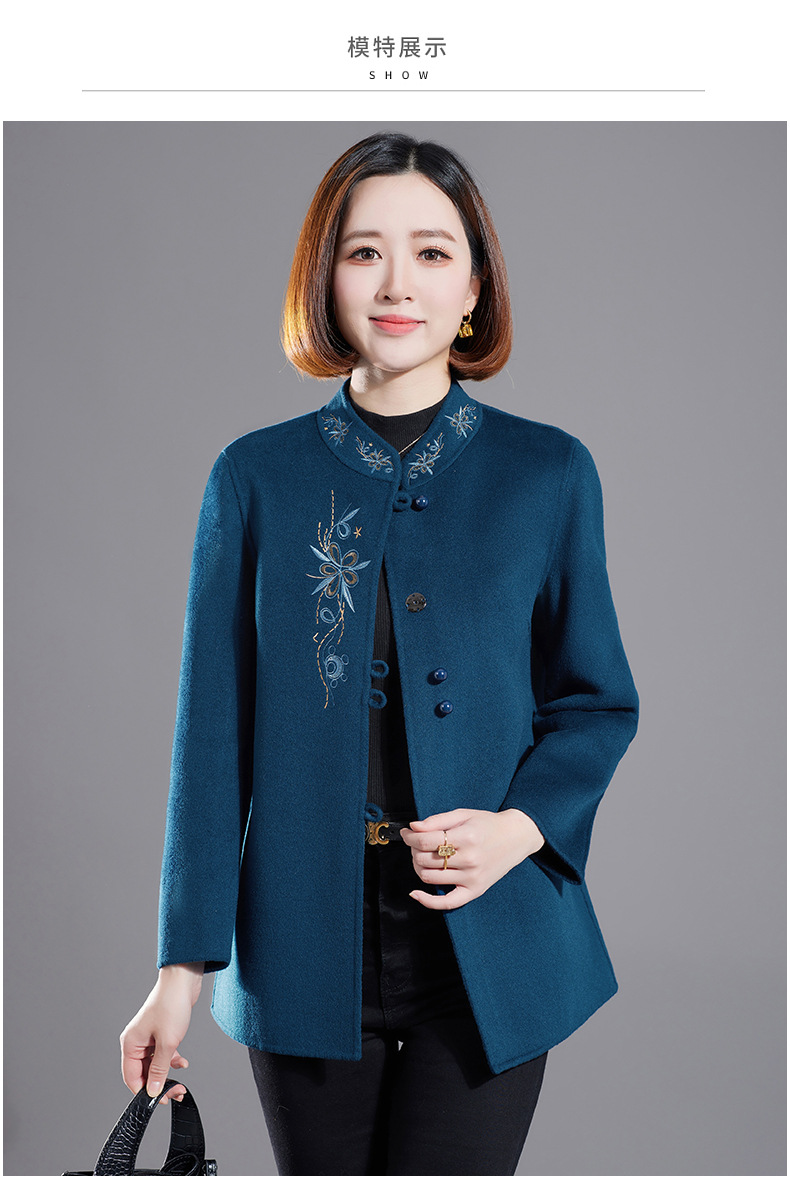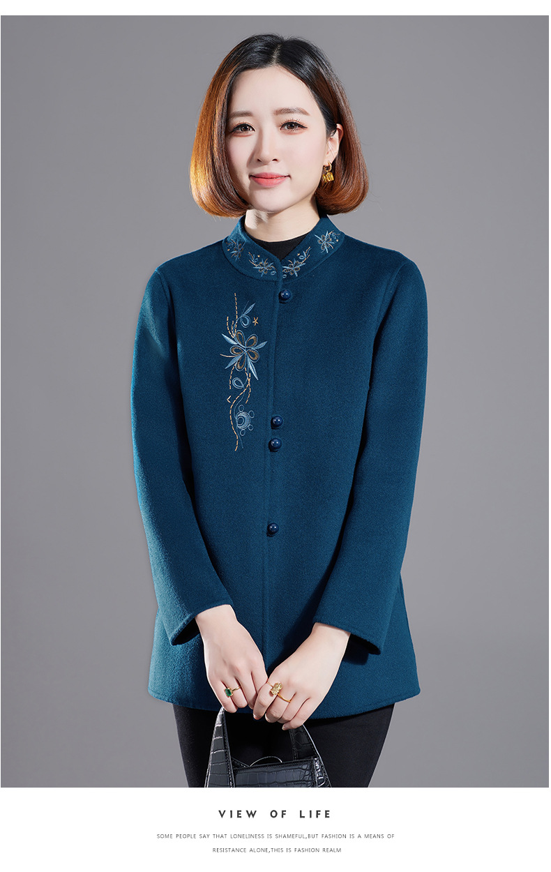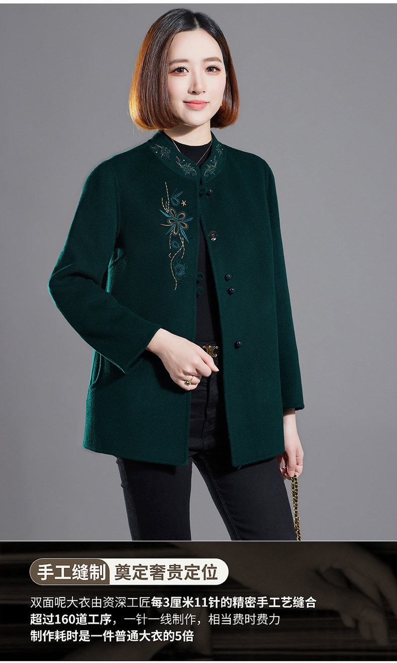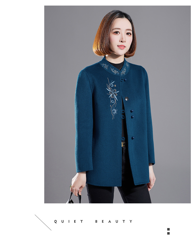 秋冬新款双面羊绒大衣女中长款绣花羊毛呢子外套KQ-215281