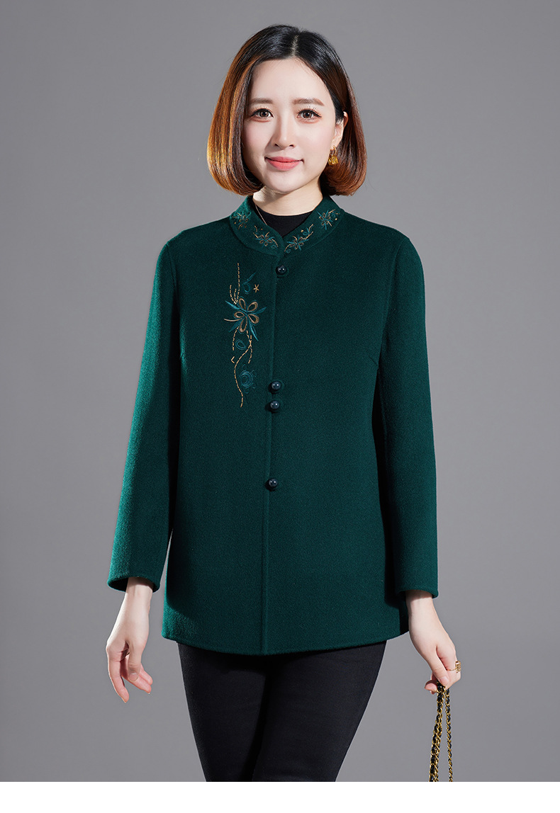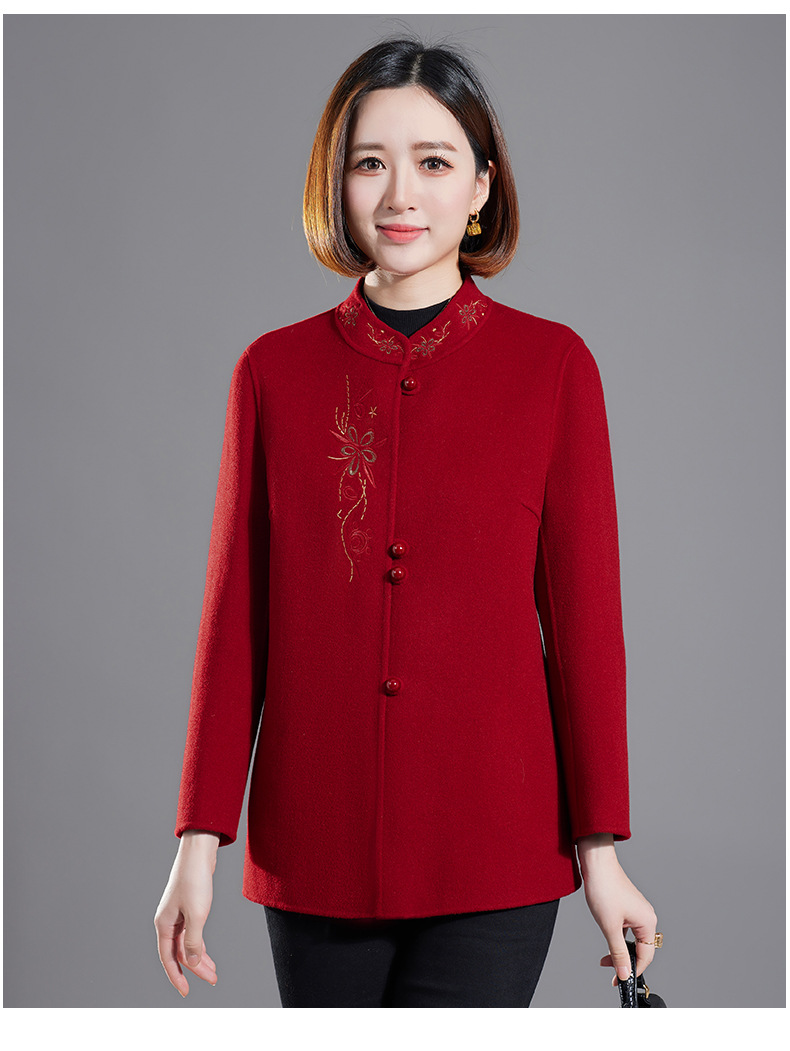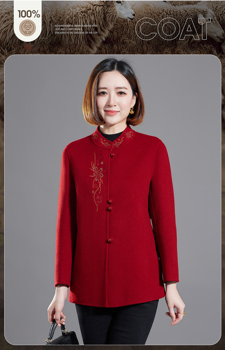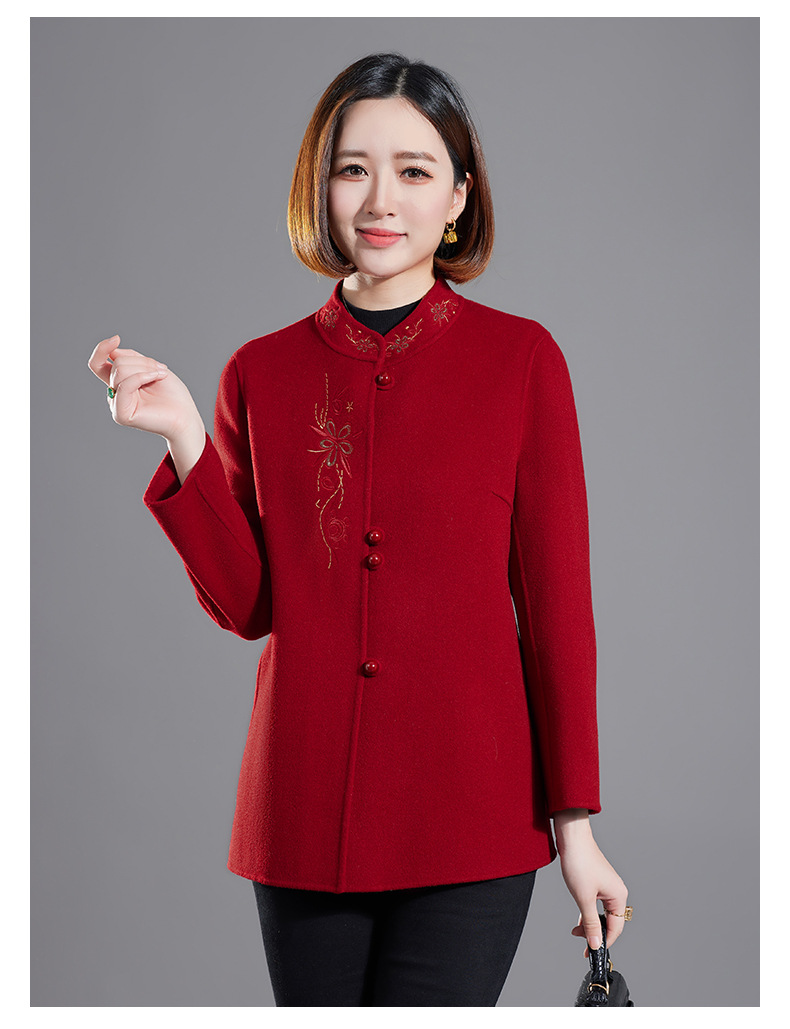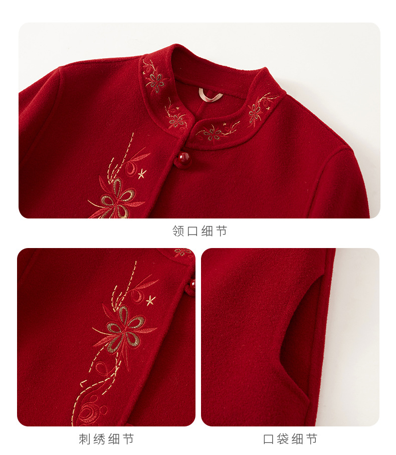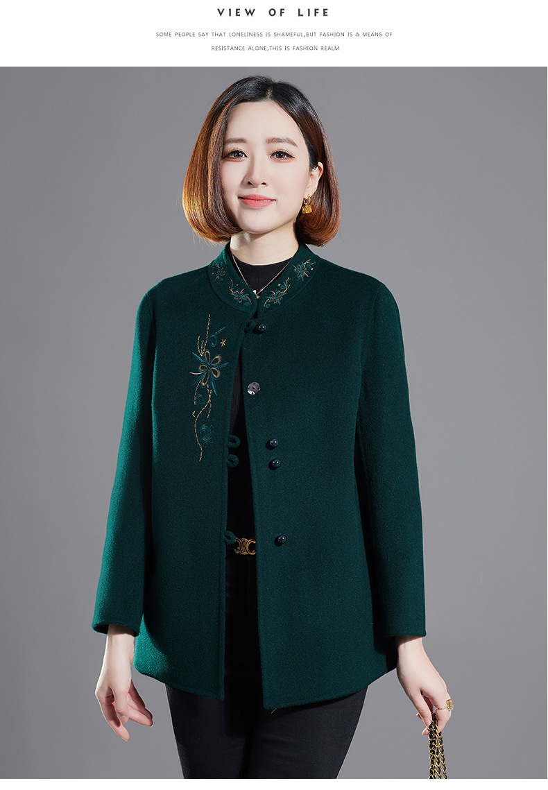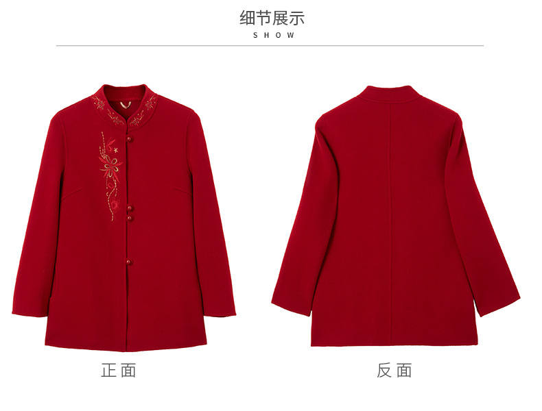 秋冬新款双面羊绒大衣女中长款绣花羊毛呢子外套KQ-215281