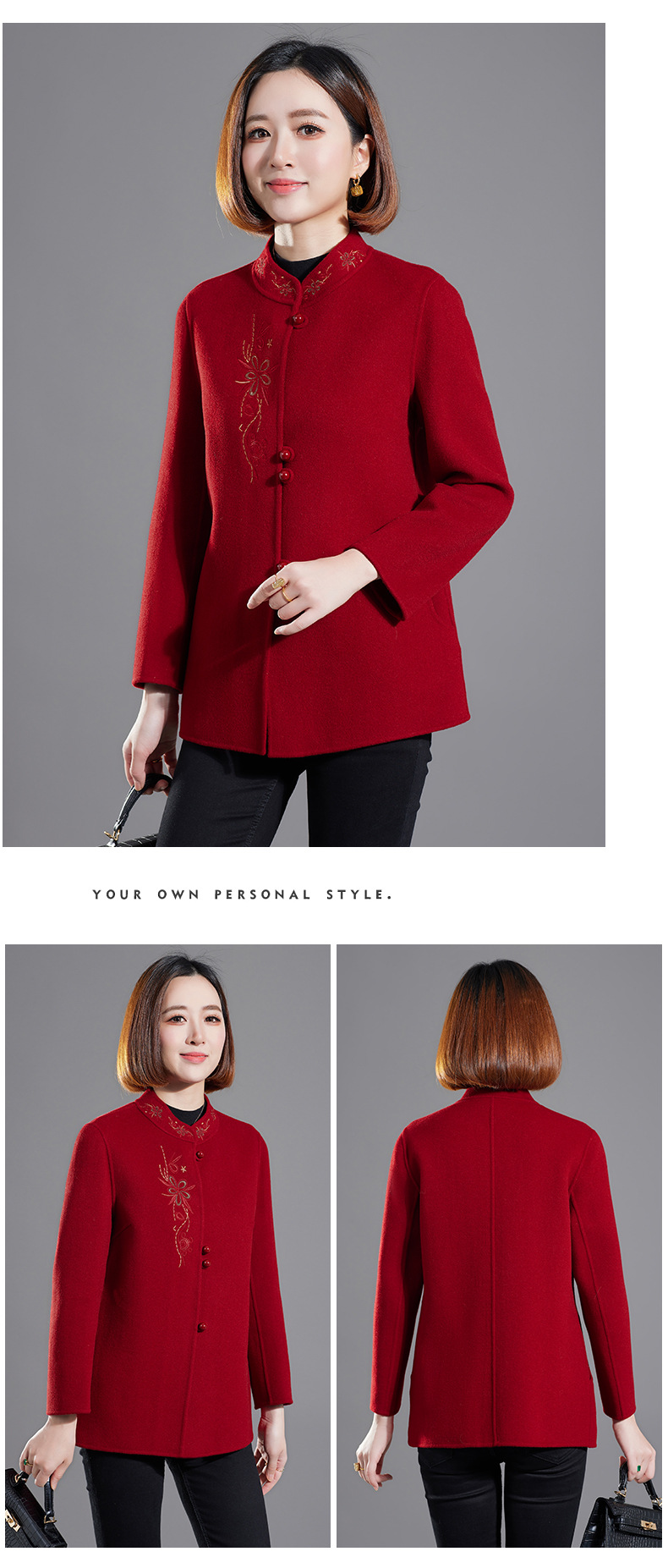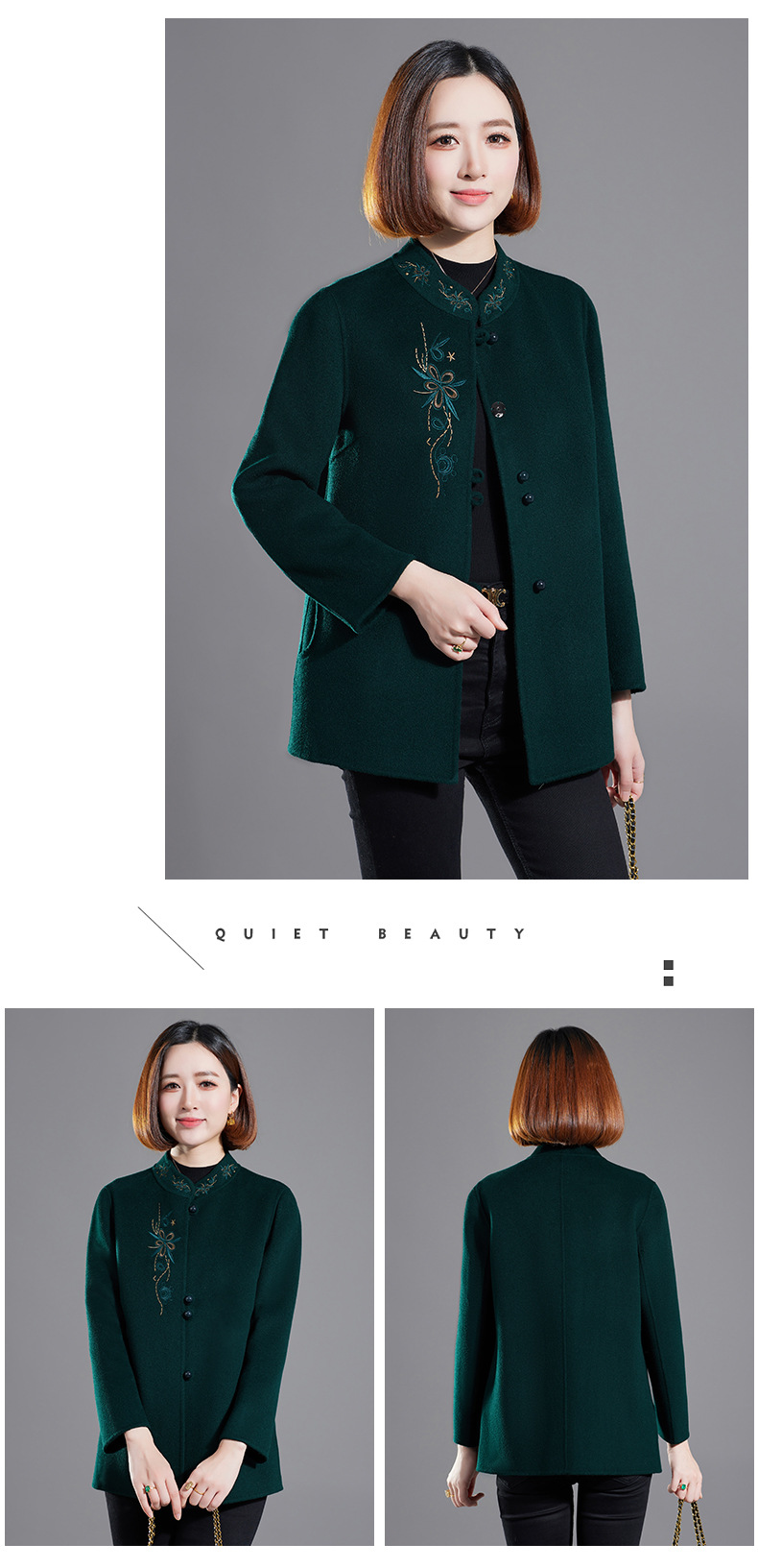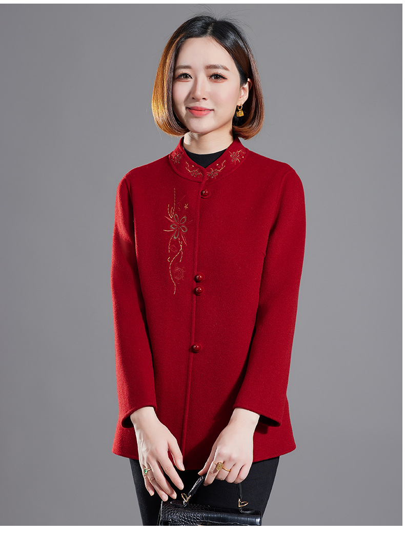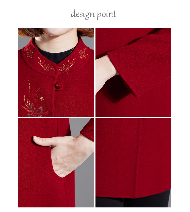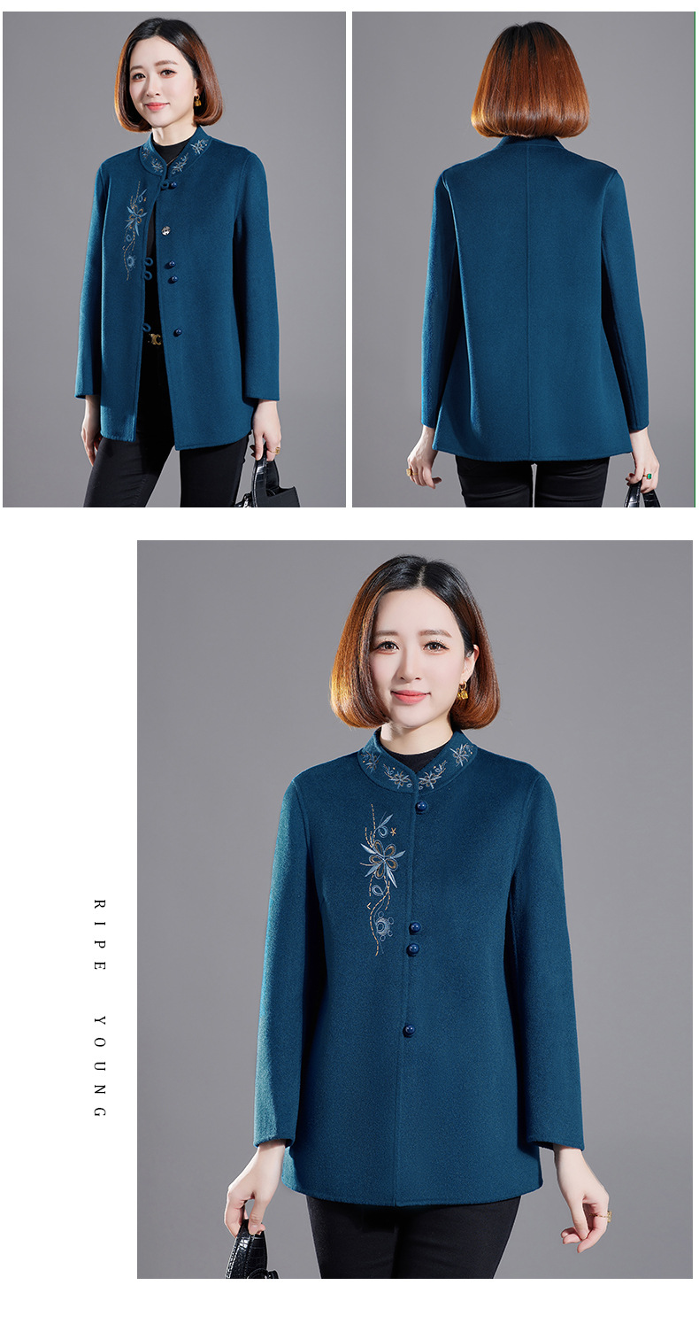 秋冬新款双面羊绒大衣女中长款绣花羊毛呢子外套KQ-215281
