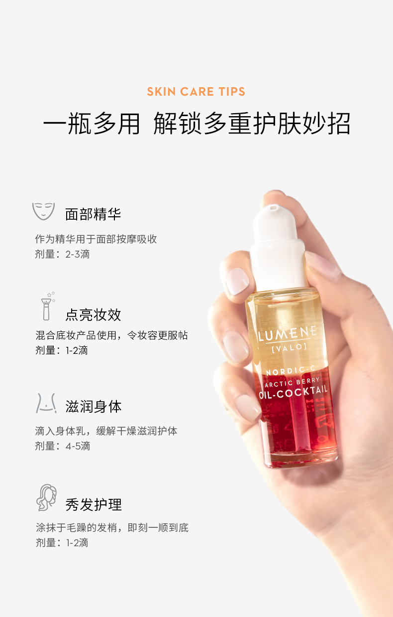 温馨提示:绽放紧致V脸精华30ml含A醇,在备孕,孕期,哺乳期的女性不能用,如果白天用请做好防晒!