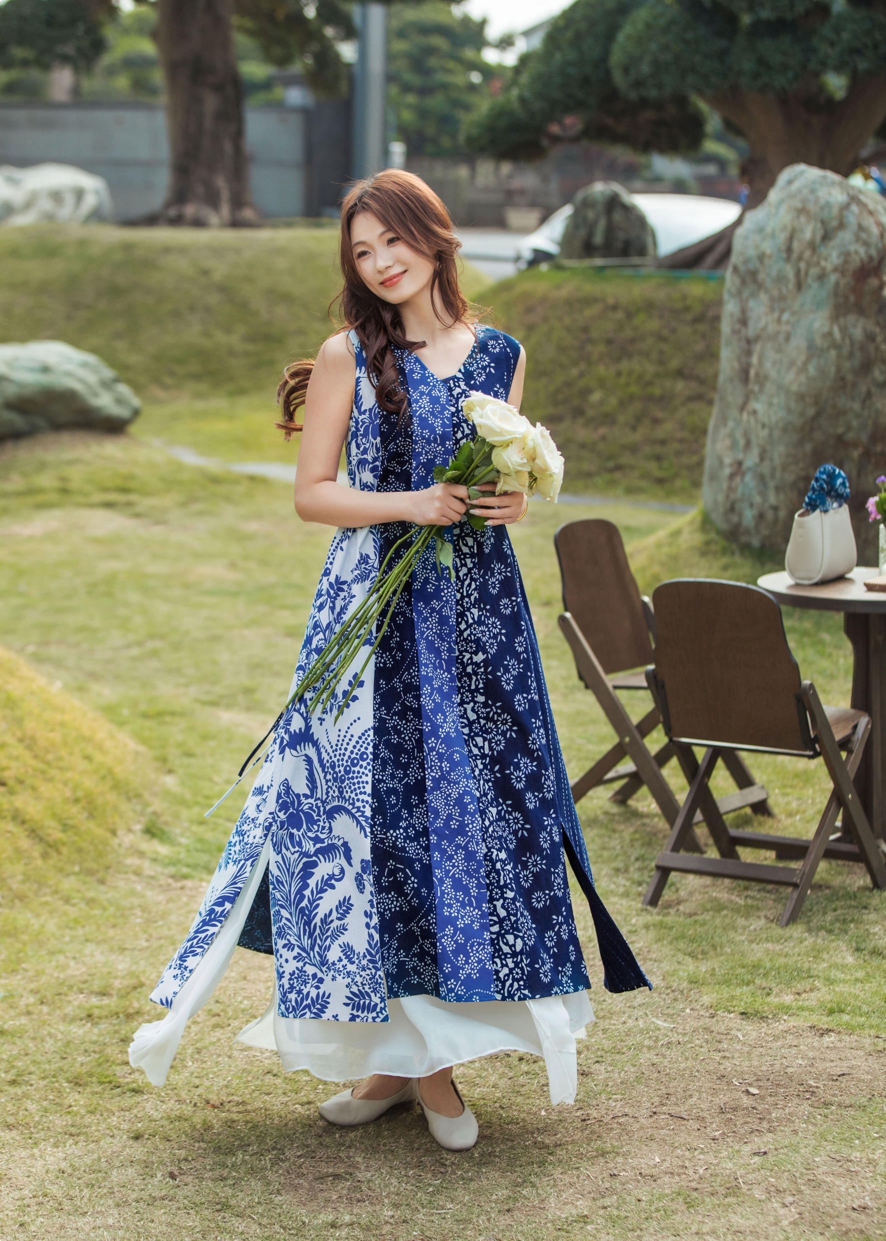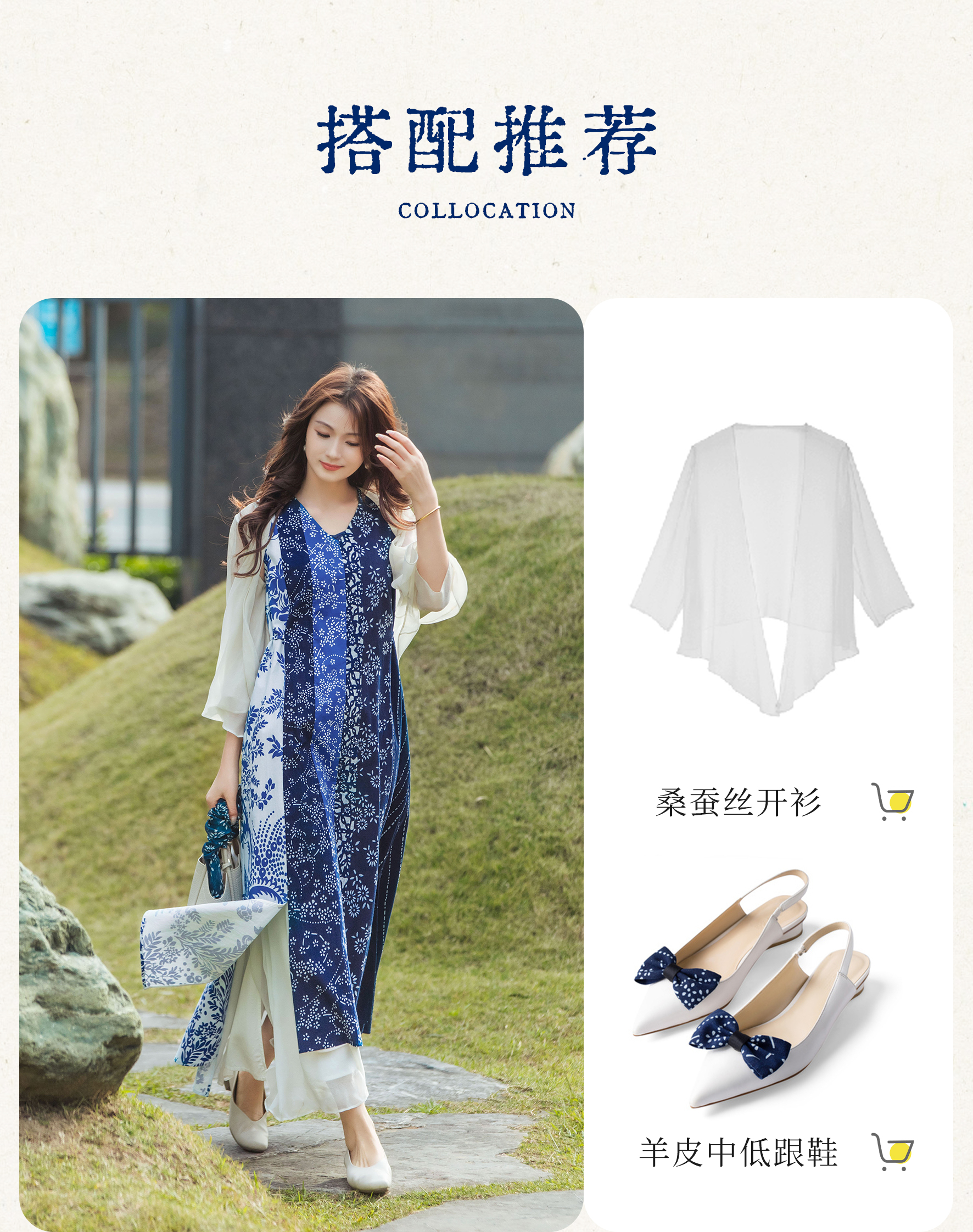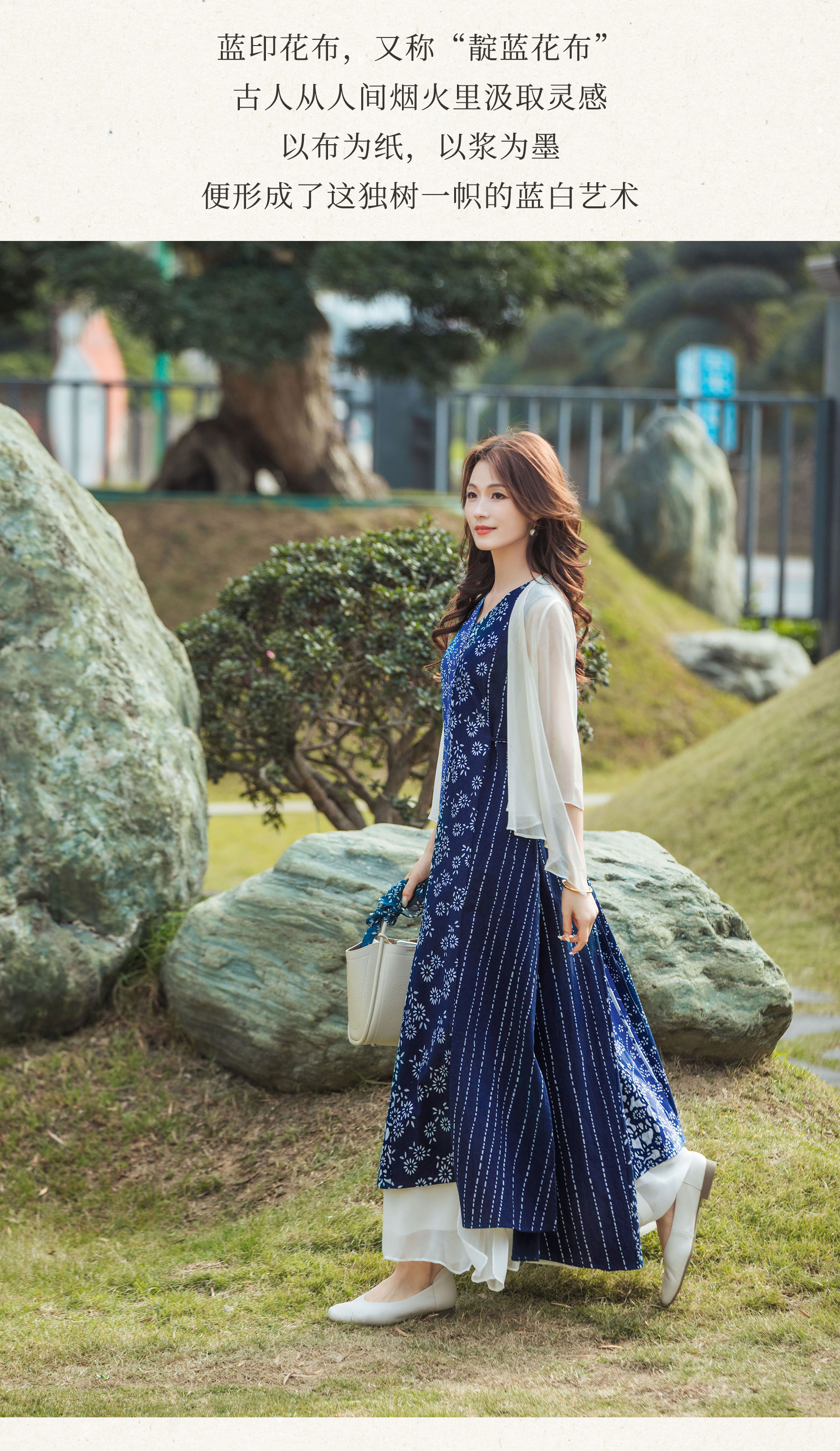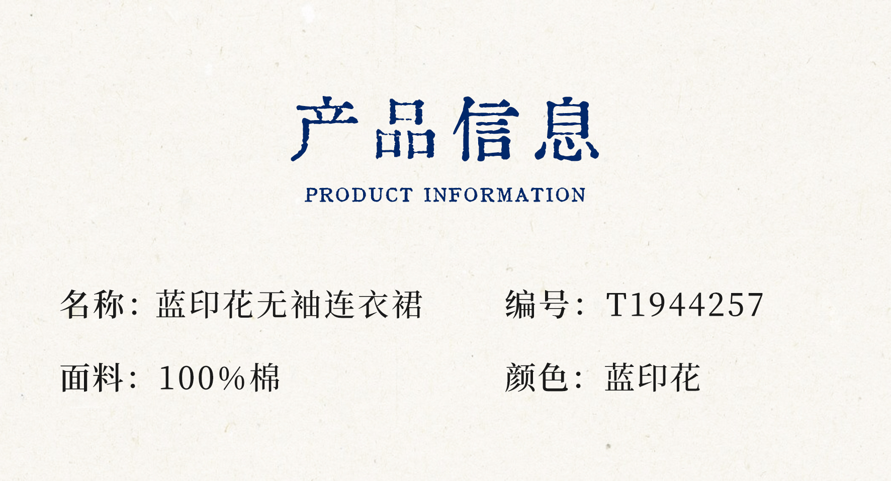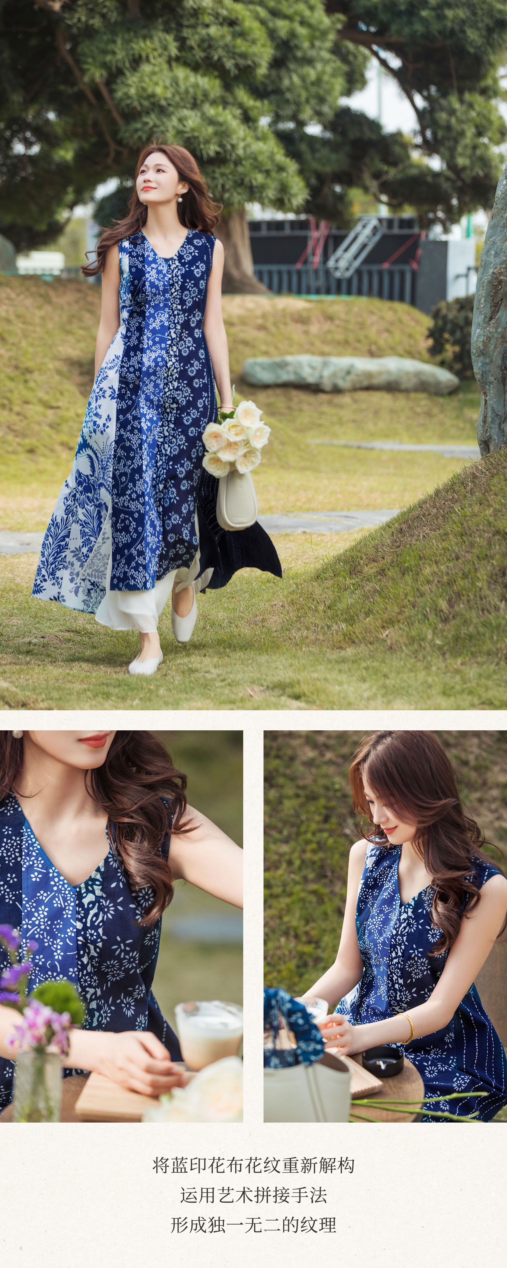 【林栖设计小店】【林栖推荐】纯棉连衣裙传统蓝印花纹2025春夏新品无袖复古长裙女T1944257