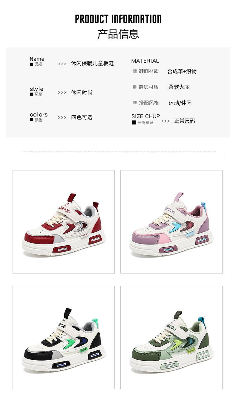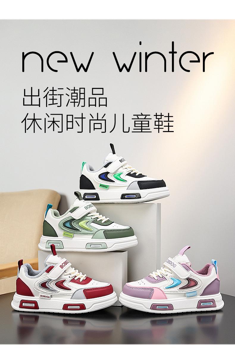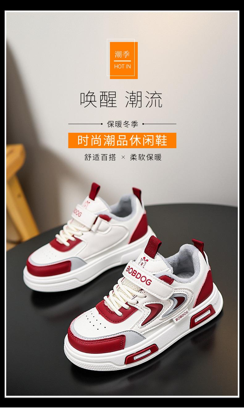 巴布豆童鞋儿童低帮板鞋2025新款冬季加绒保暖棉鞋男童休闲运动鞋
