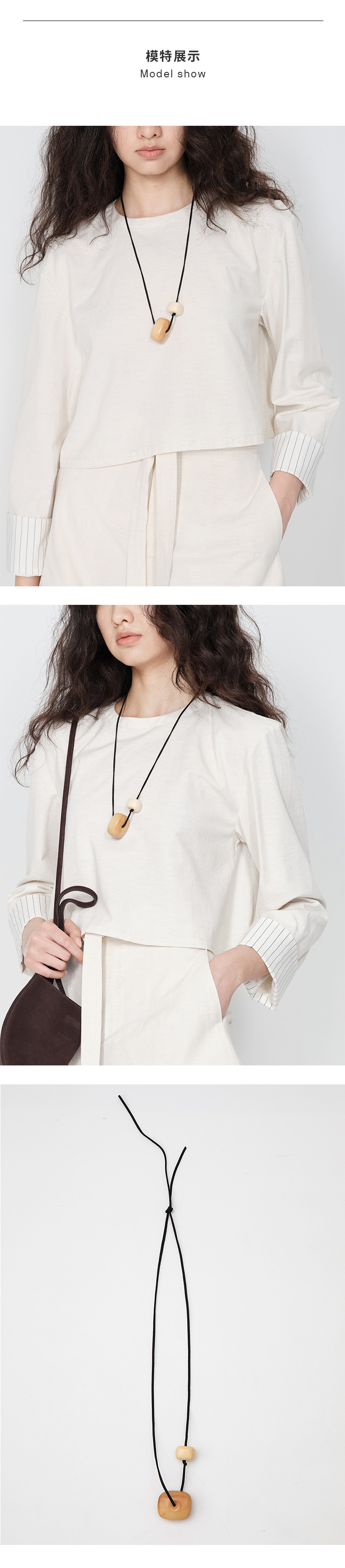 HIDEMI 昨日我是月亮系列双体象牙果实设计感皮绳项链