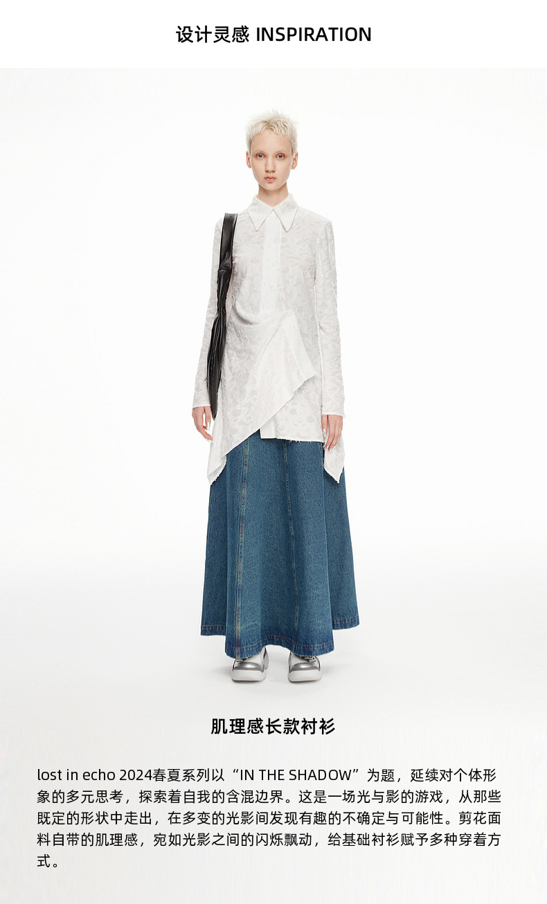 lost in echo2024春夏新品设计师品牌肌理感不对称设计长款衬衫