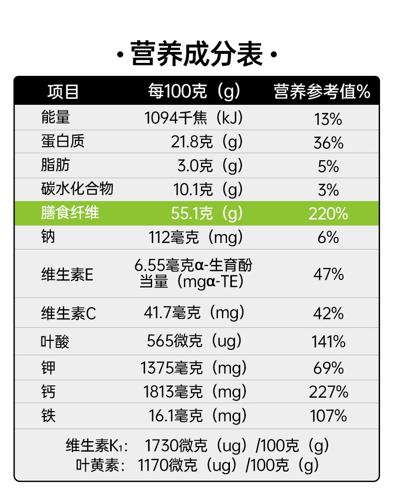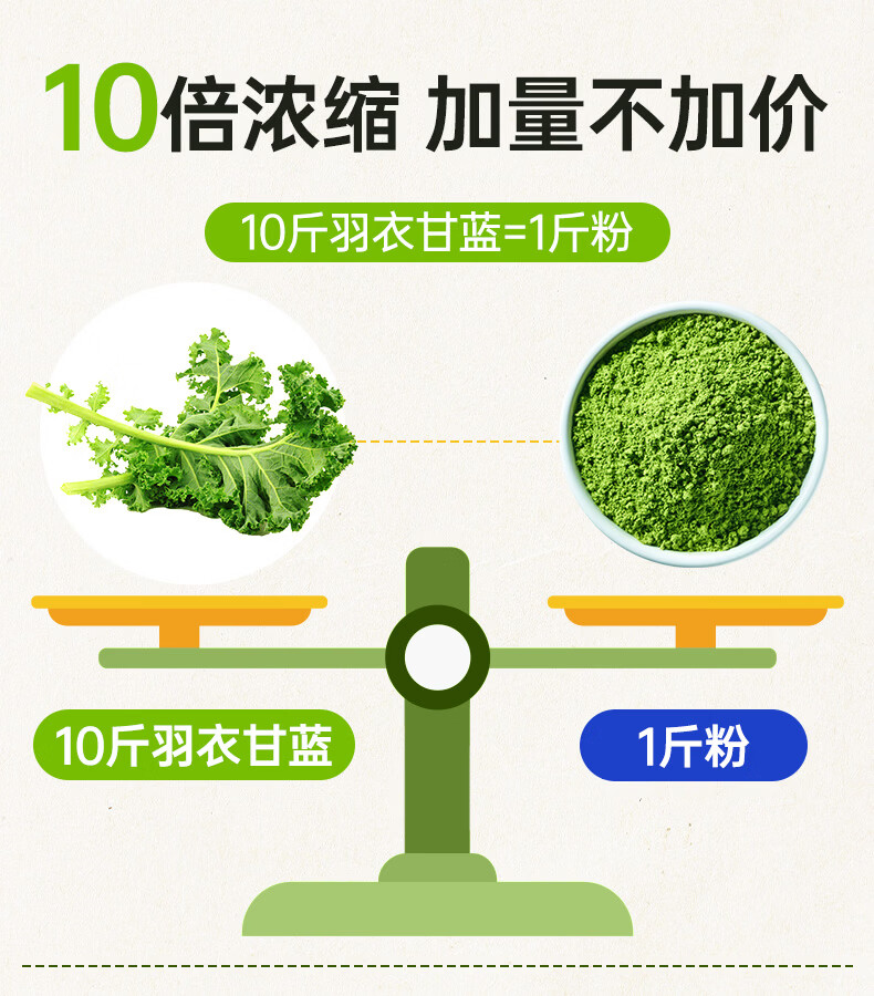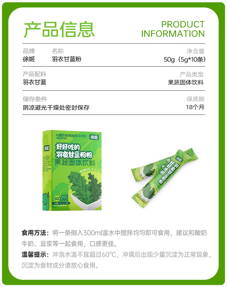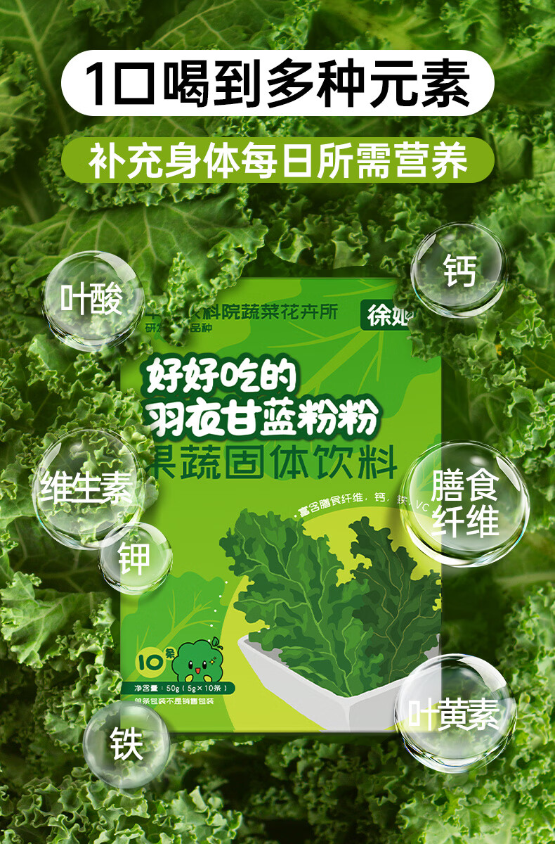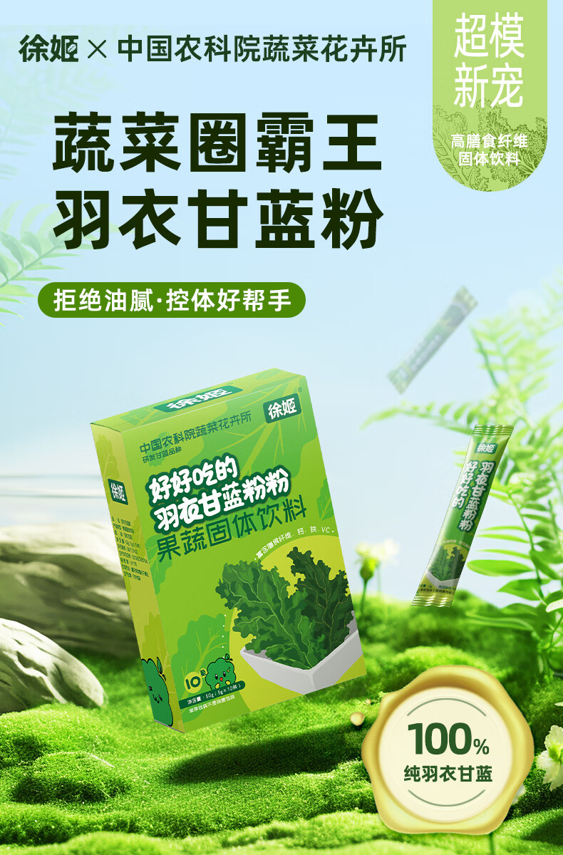 徐姬中国农科院纯羽衣甘蓝粉高纤维果蔬粉蔬菜健身冲饮代餐粉一盒装5g*10条