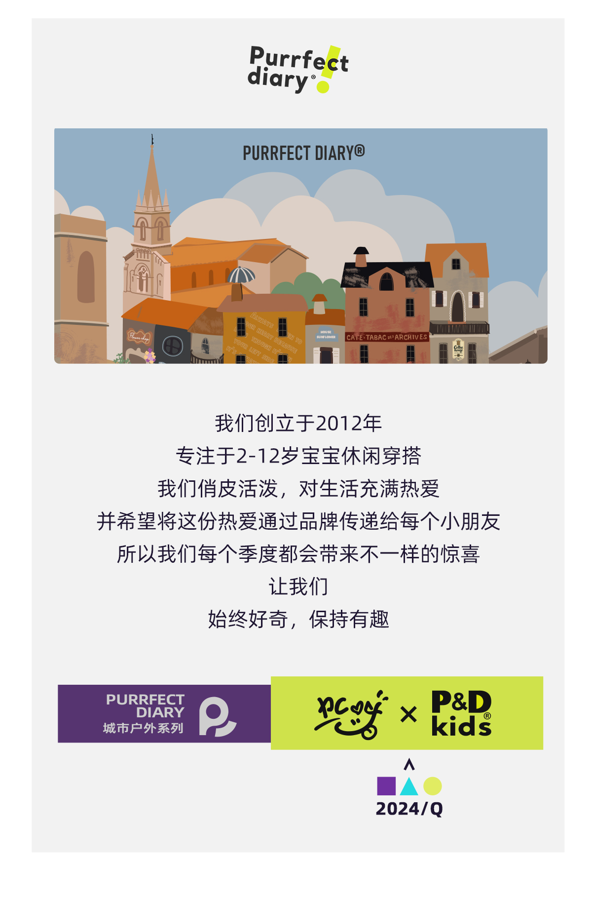 Purrfect-Diary专注于贴近自然随性的穿着概念,轻奢平价的童装文化传播,在产品设计上更加注重婴童穿着的舒适性、安全性、更出众的国际化品牌,将欧美的育婴文化在中国进行深入的传播与推广。