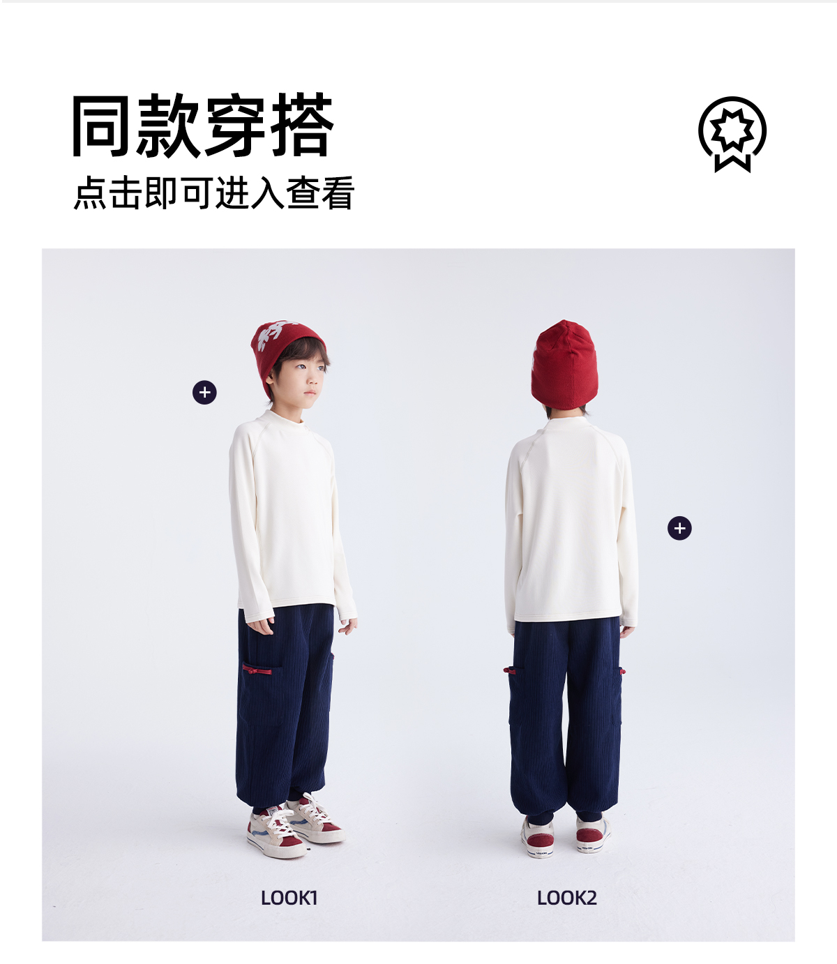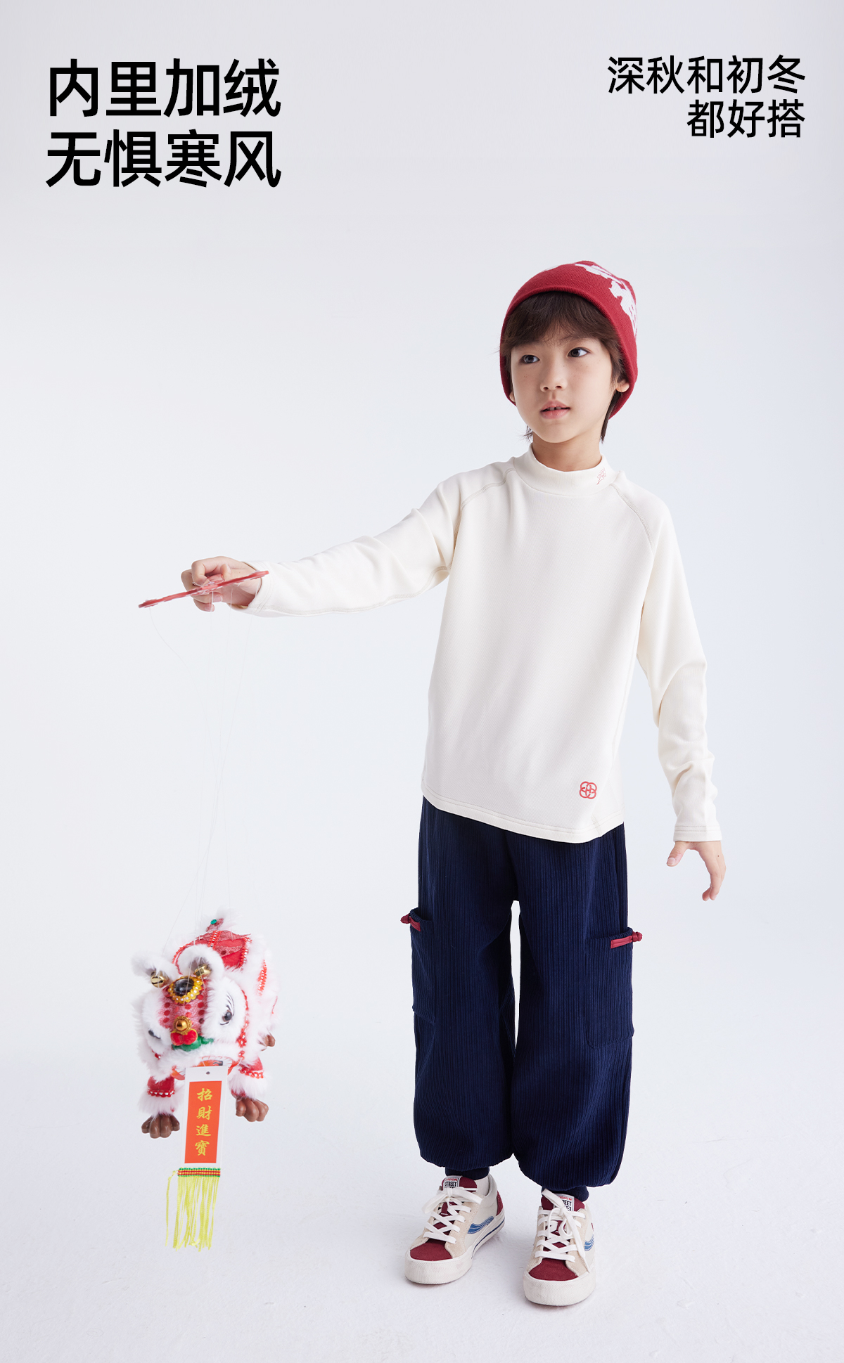 fx-【暖暖不倒绒】儿童徽标休闲卫裤PQK2338