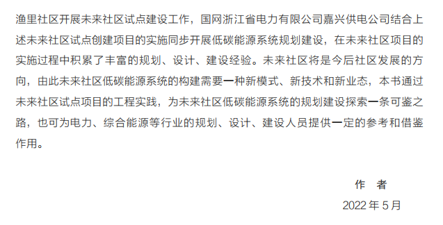 本书可供未来社区低碳能源系统的规划、设计、建设人员参考,也可作为大中专院校相关专业师生的参考资料。