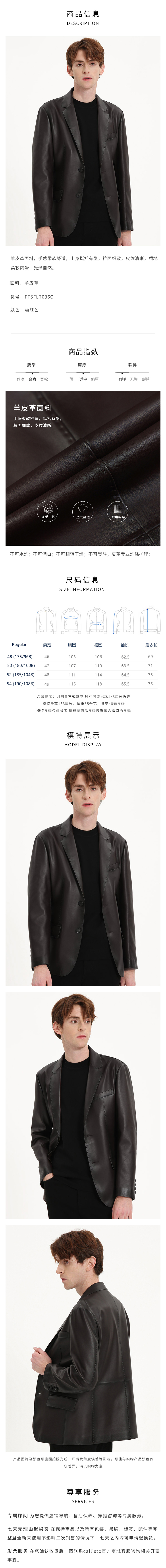 callisto酒红色羊皮革修身皮夹克 FSFLT036C WI