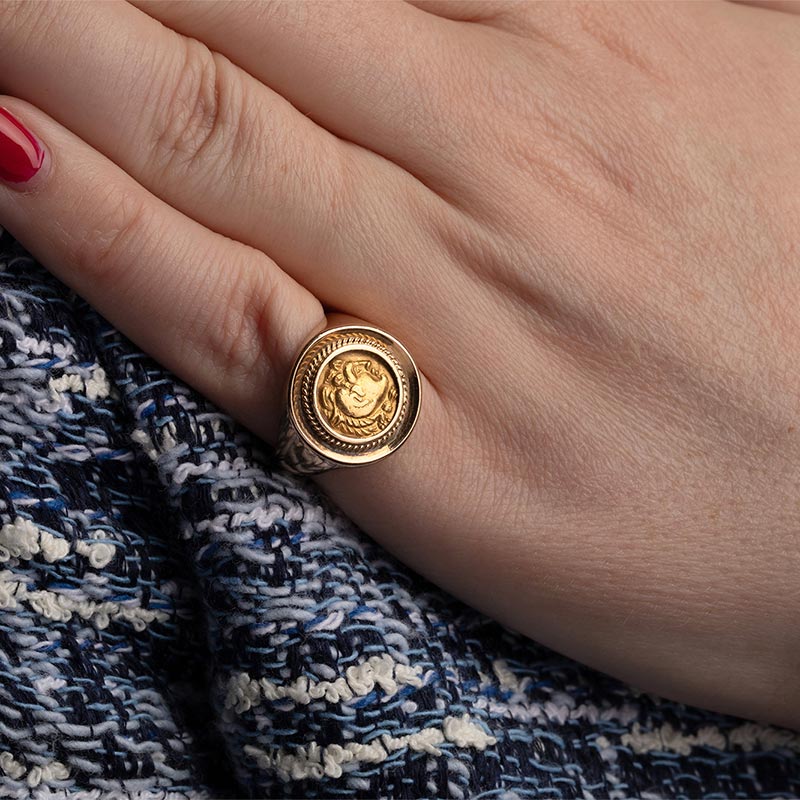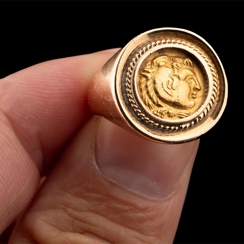 公元前297-281年18K黄金戒托镶嵌古希腊出品亚历山大大帝古金币戒指