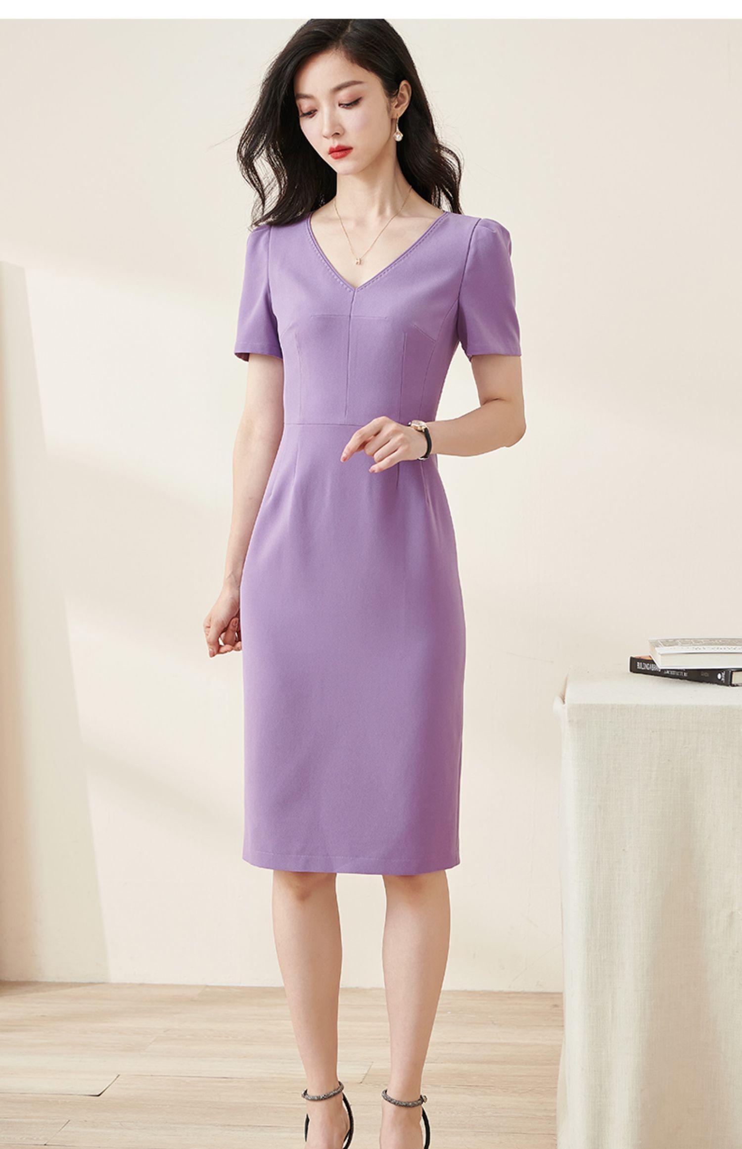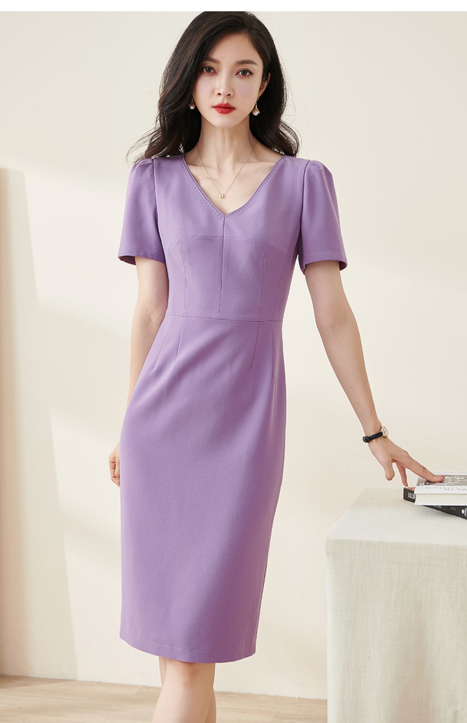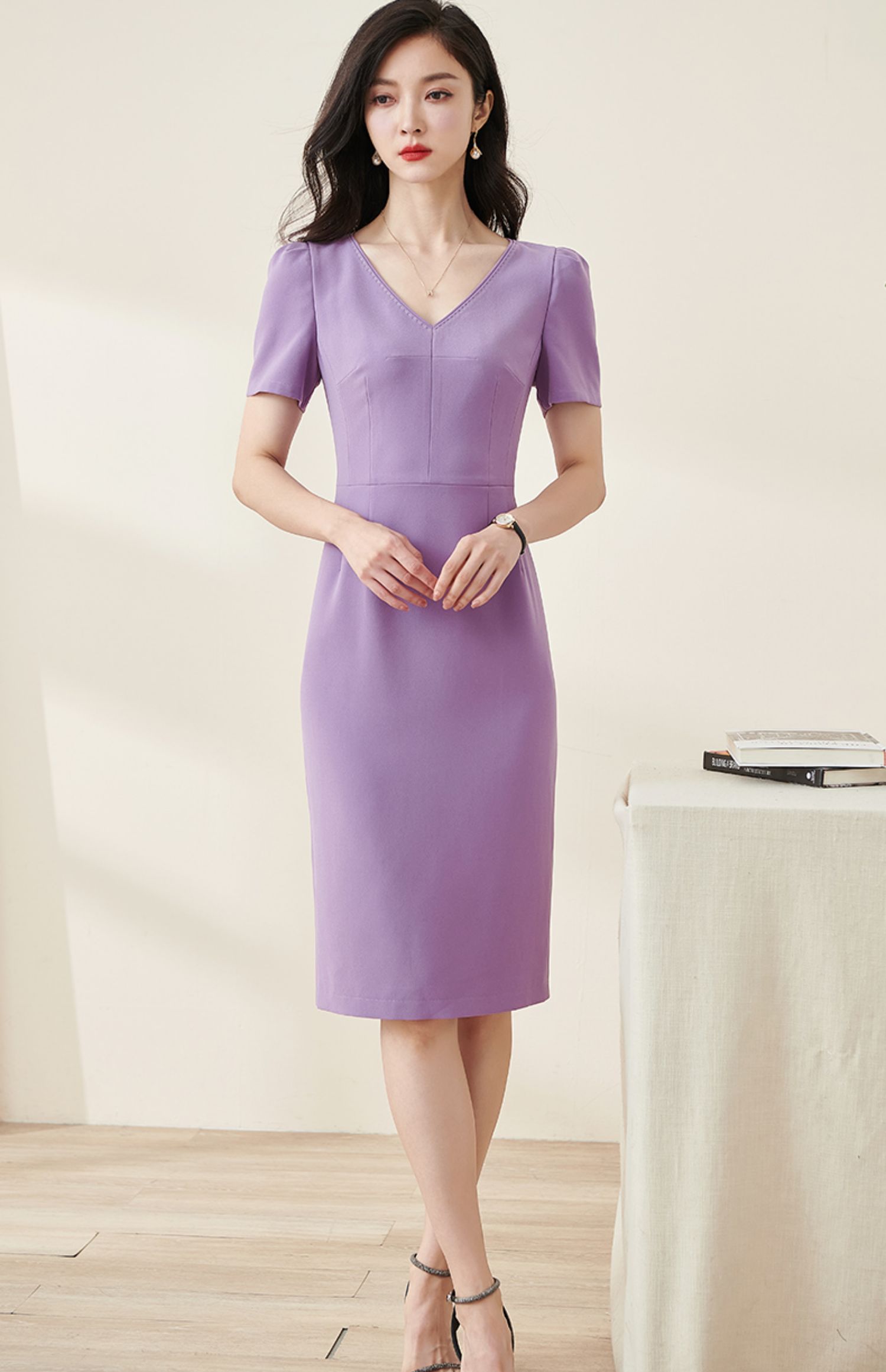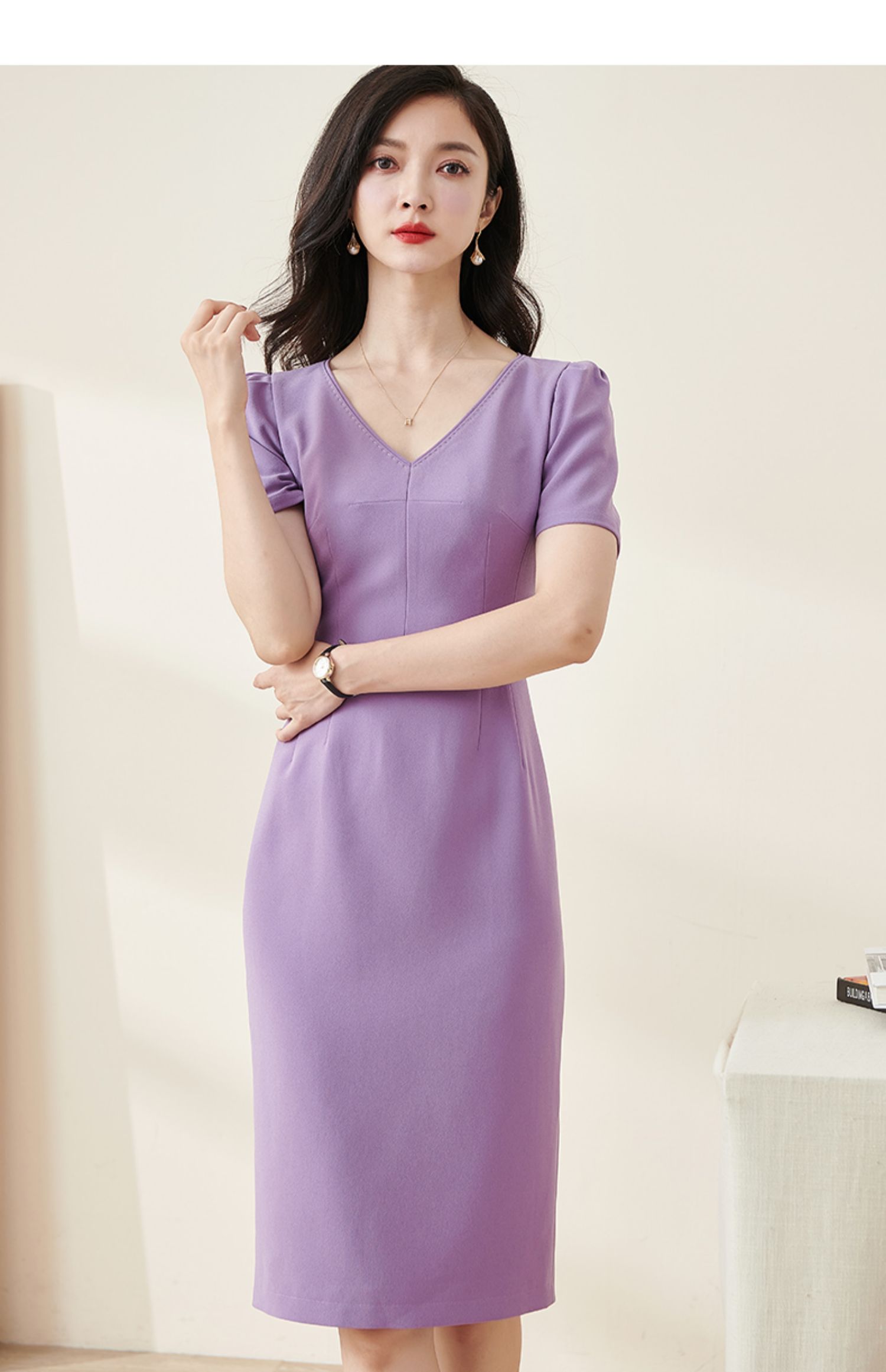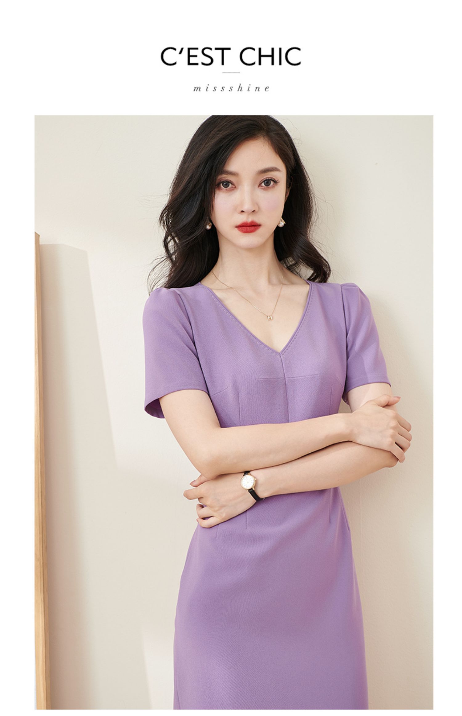 剩S/XL 米思阳2024秋季新款气质优雅淑女修身连衣裙泡泡袖V领直筒裙2252