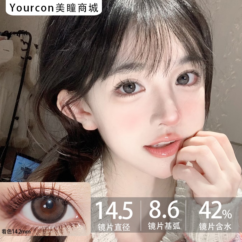 Kikicon月抛·迷雾白茶/杏色奶糕·14.5mm超大着色·2片可不同度数