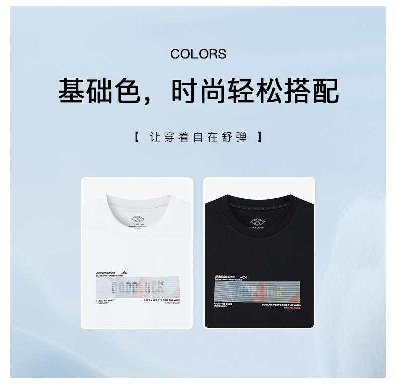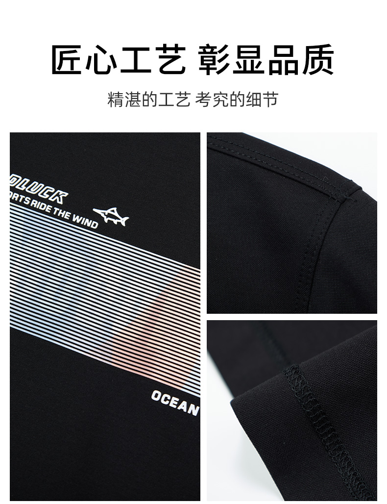 GOOD LUCK/德鲨100%棉海洋风撞色领边时尚休闲T领长袖T恤FY22102-818