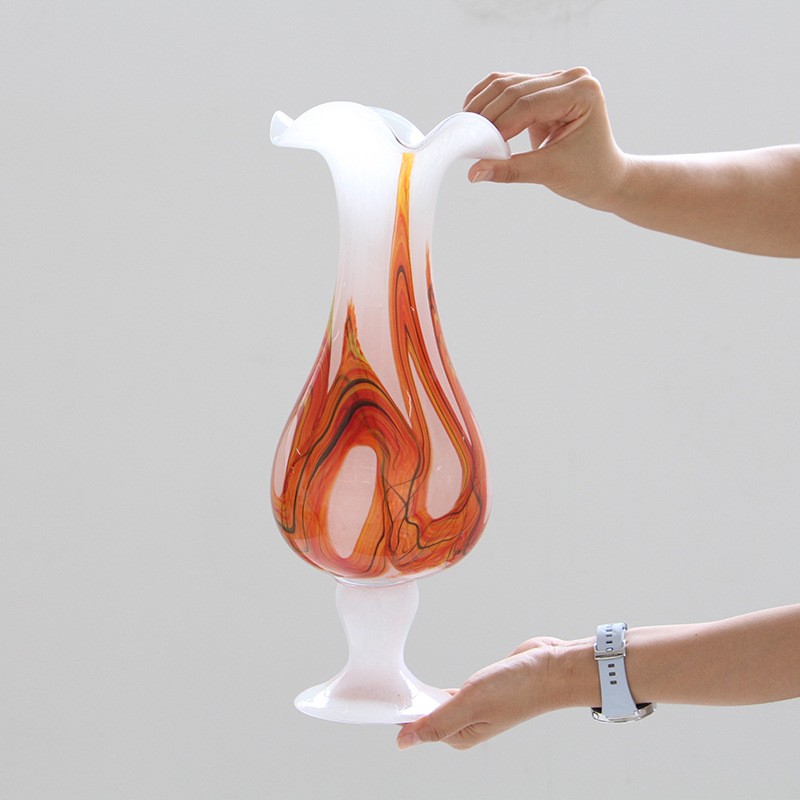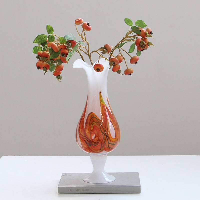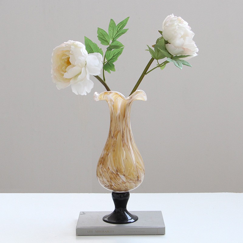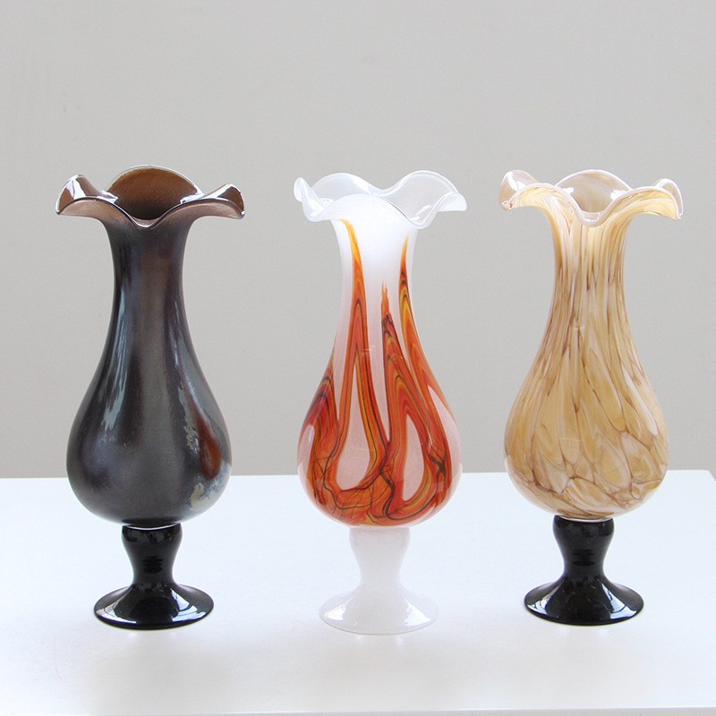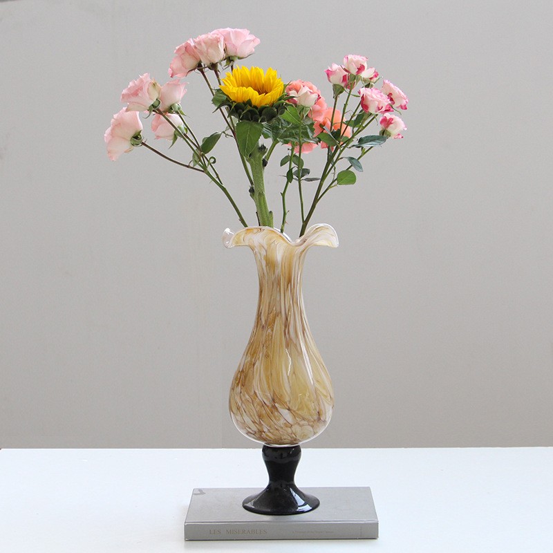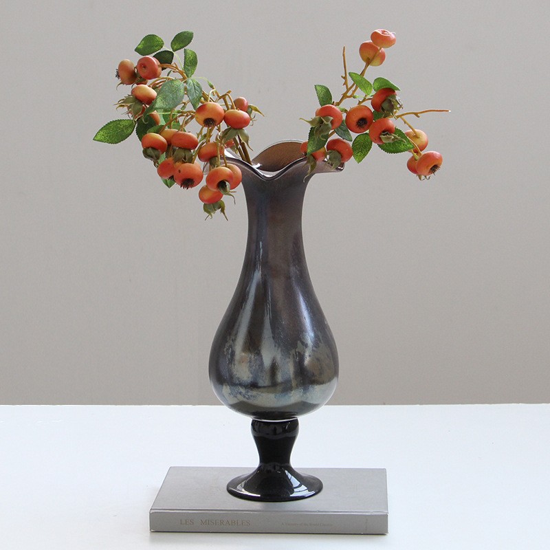 碧轩复古高脚风灯花边口水养花器家用花瓶轻奢高级感客厅装饰品