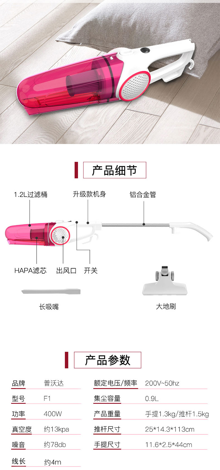 普沃达pooda 大吸力有线吸尘器 F1