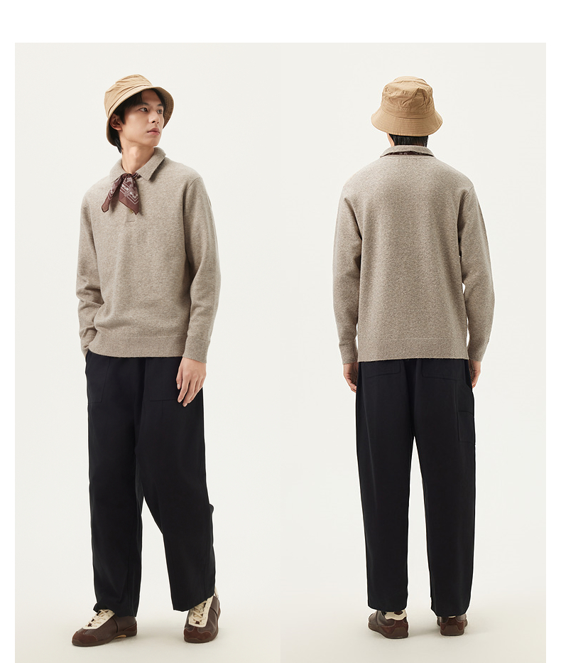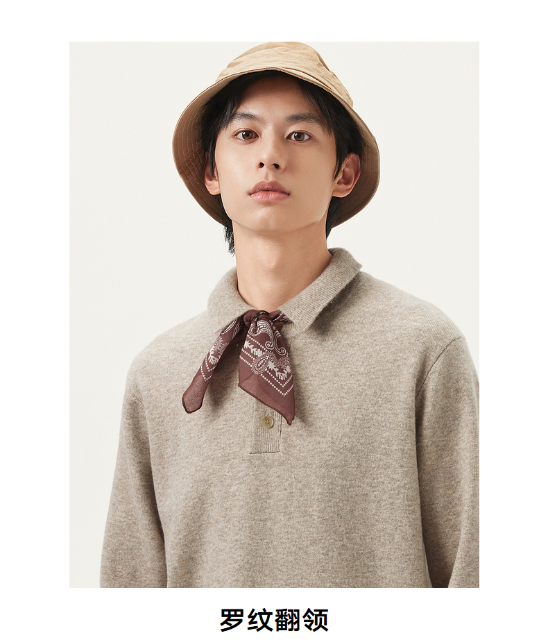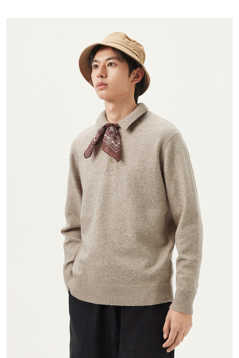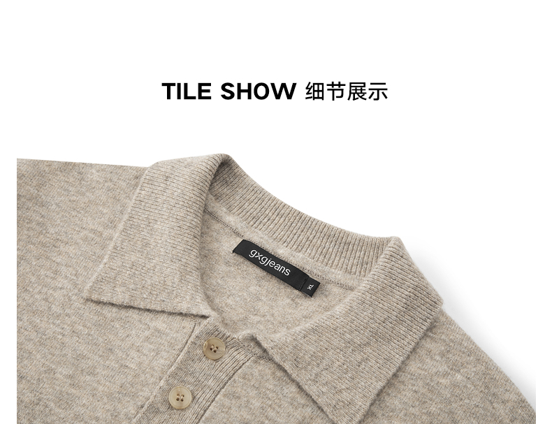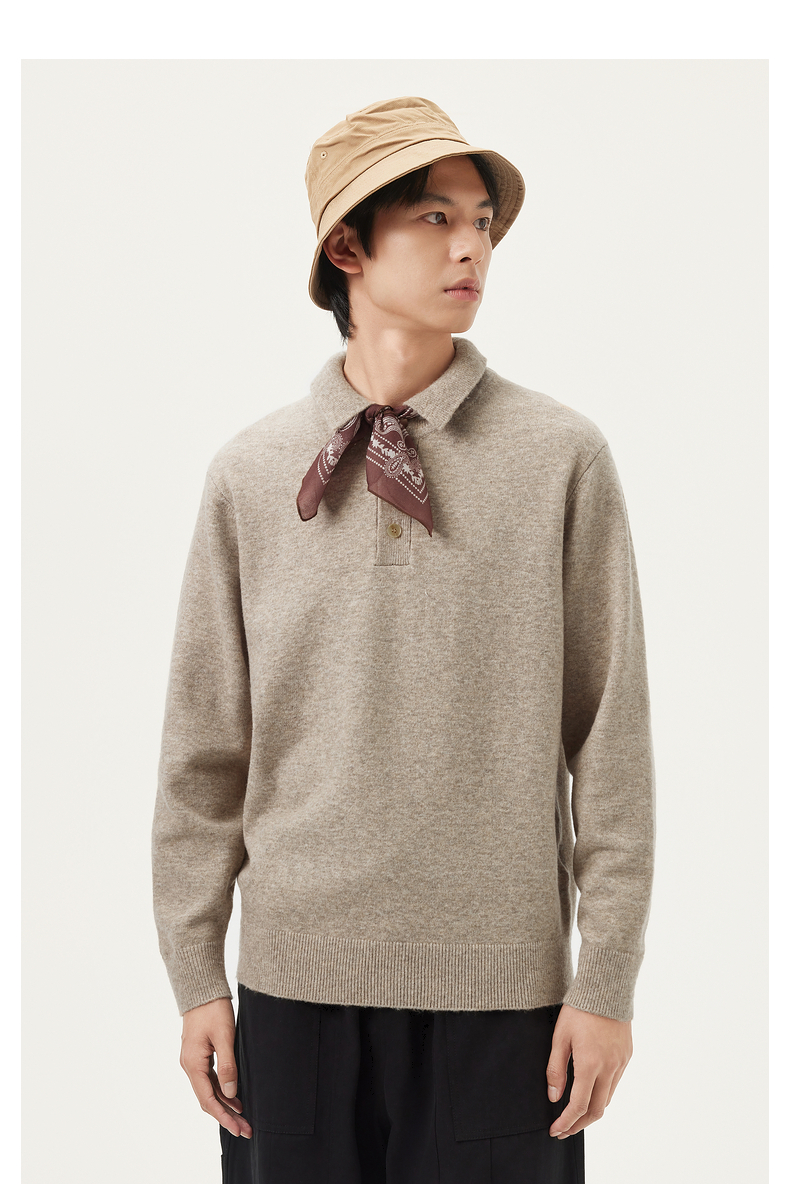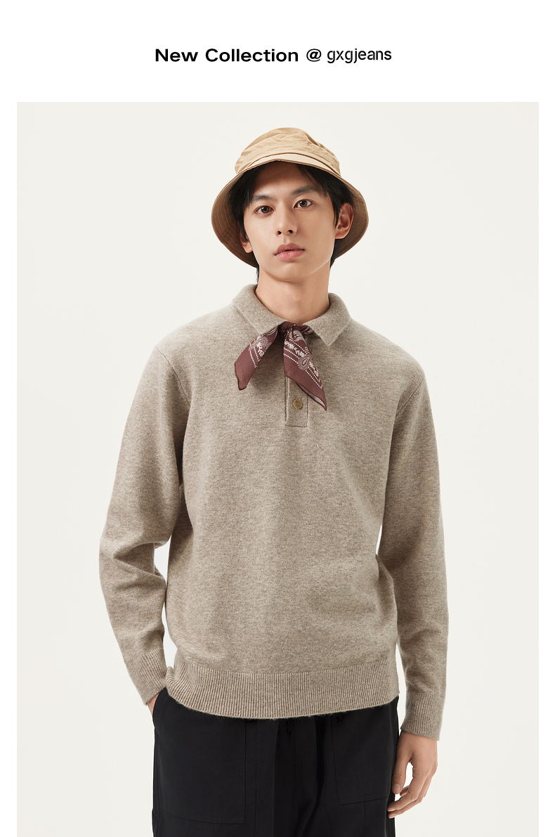 gxg.jeans男装 卡其色花纱简约POLO领线衫毛衣针织衫男 25春热卖